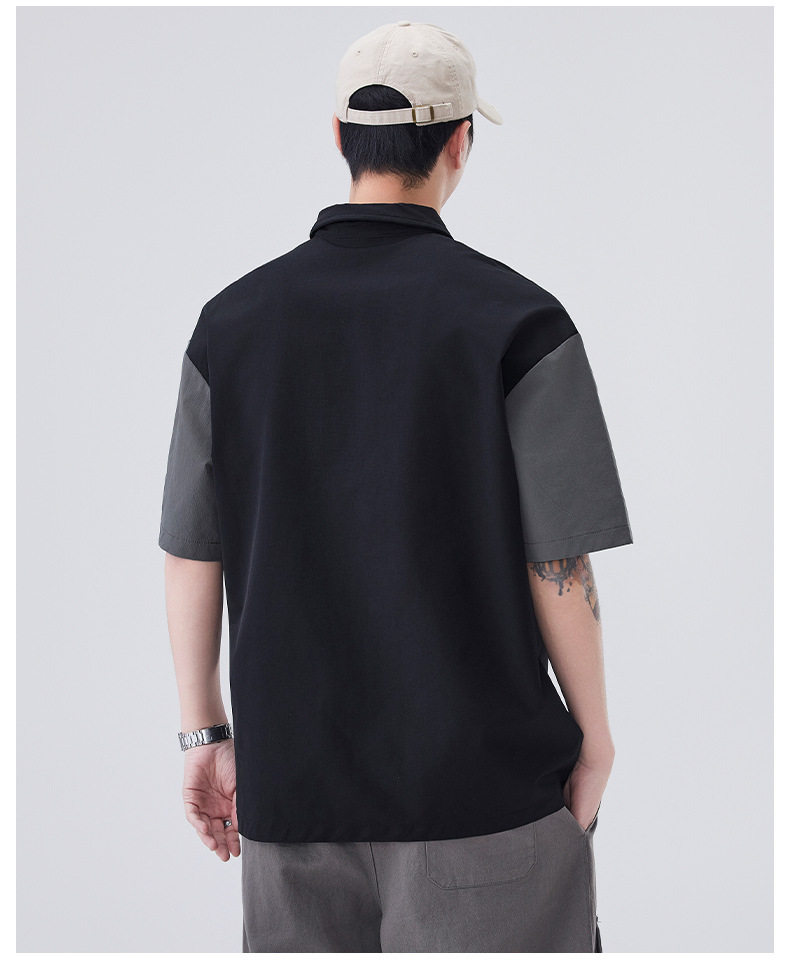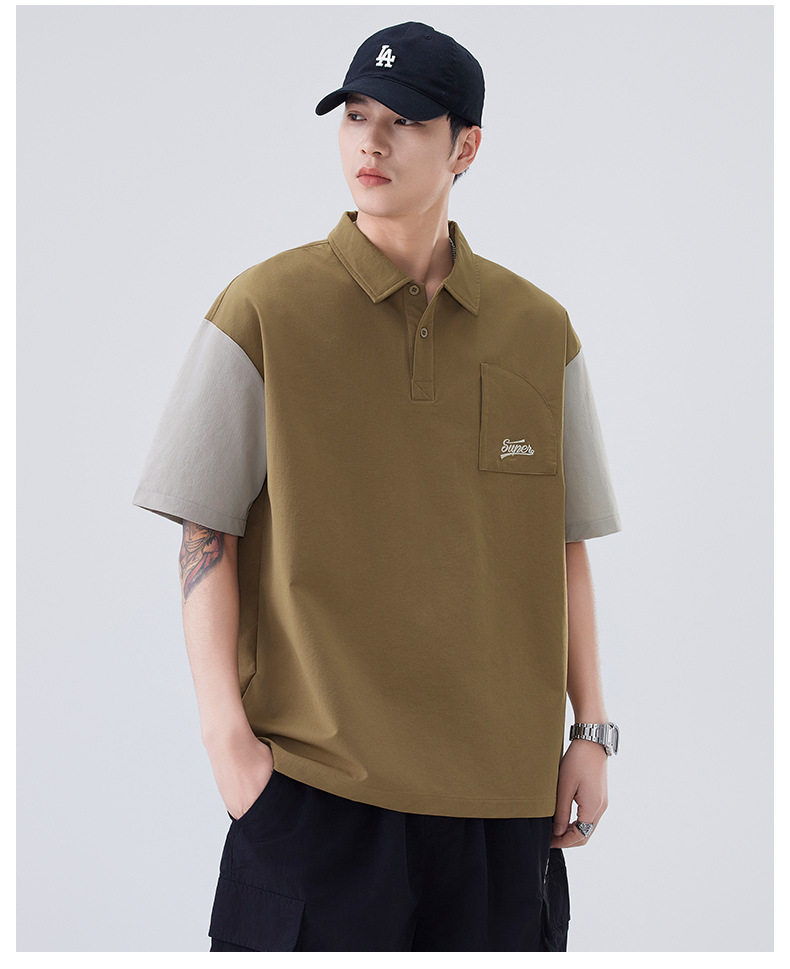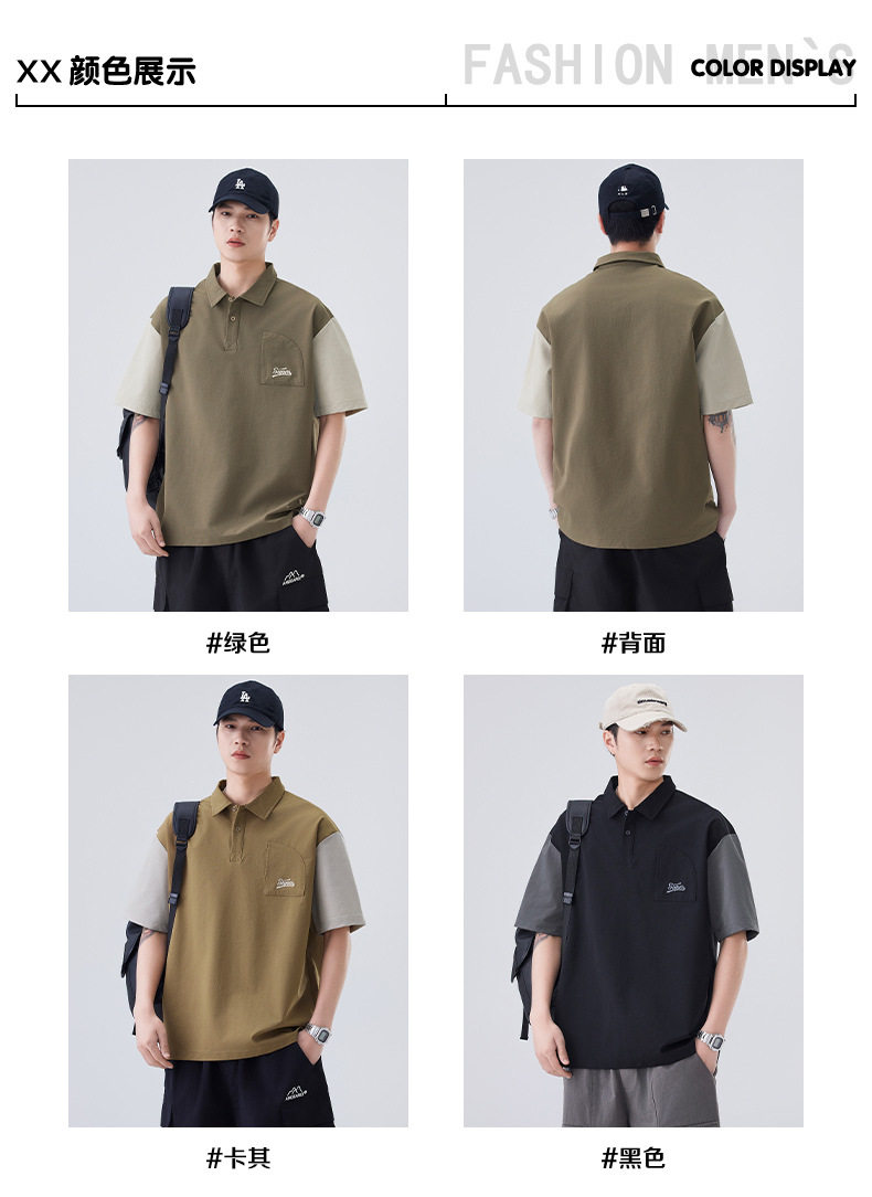 夏季新款POLO衫日系复古假口袋设计感撞色翻领短袖男    AY-D3607【AY-3607】 商品图4