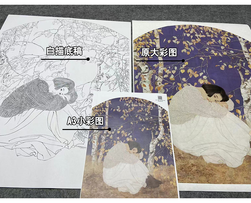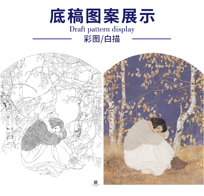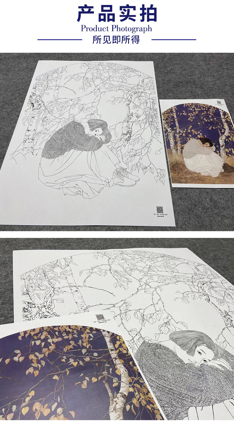 【大彩图】何家英工笔画白描底稿《秋冥》高清打印稿人物线稿ZV16