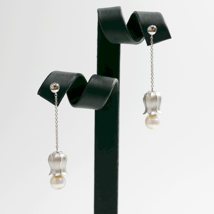 「铃兰」Akoya珍珠18K白金镶钻耳坠