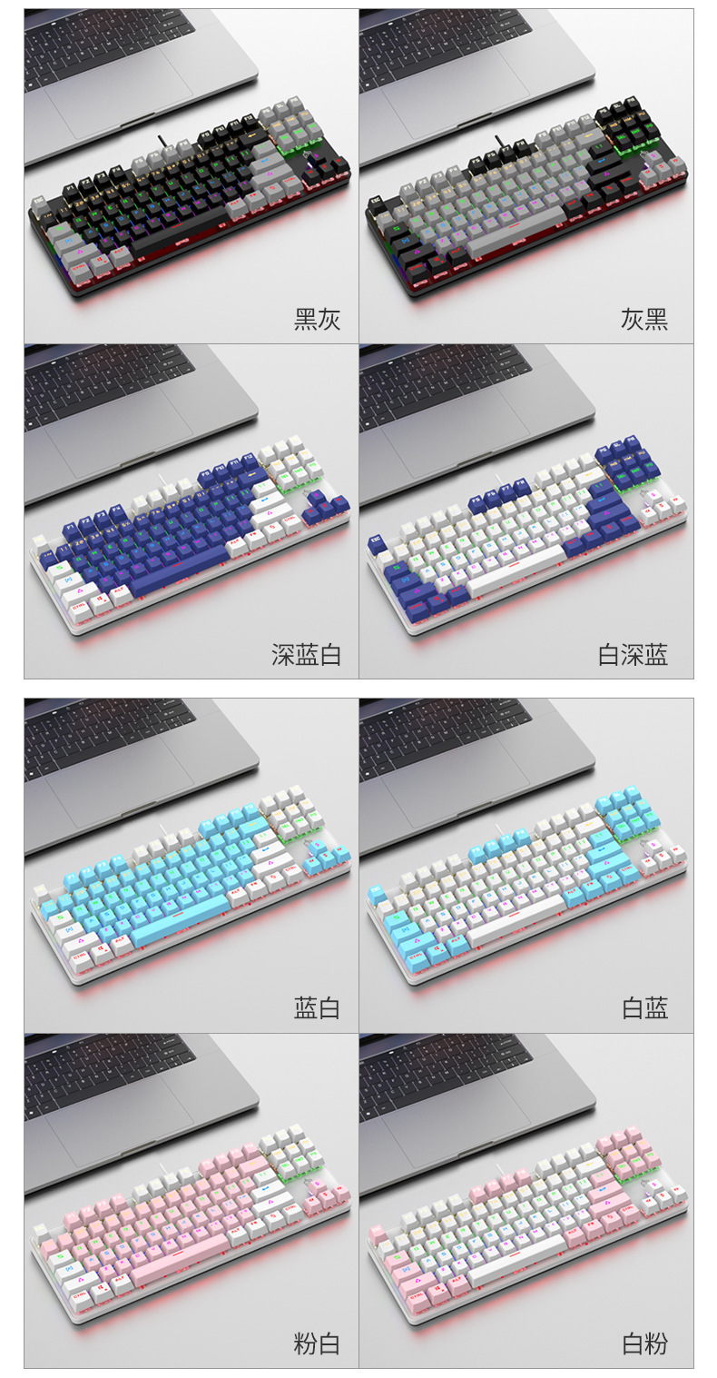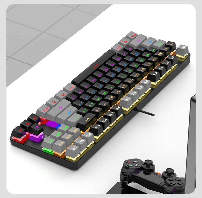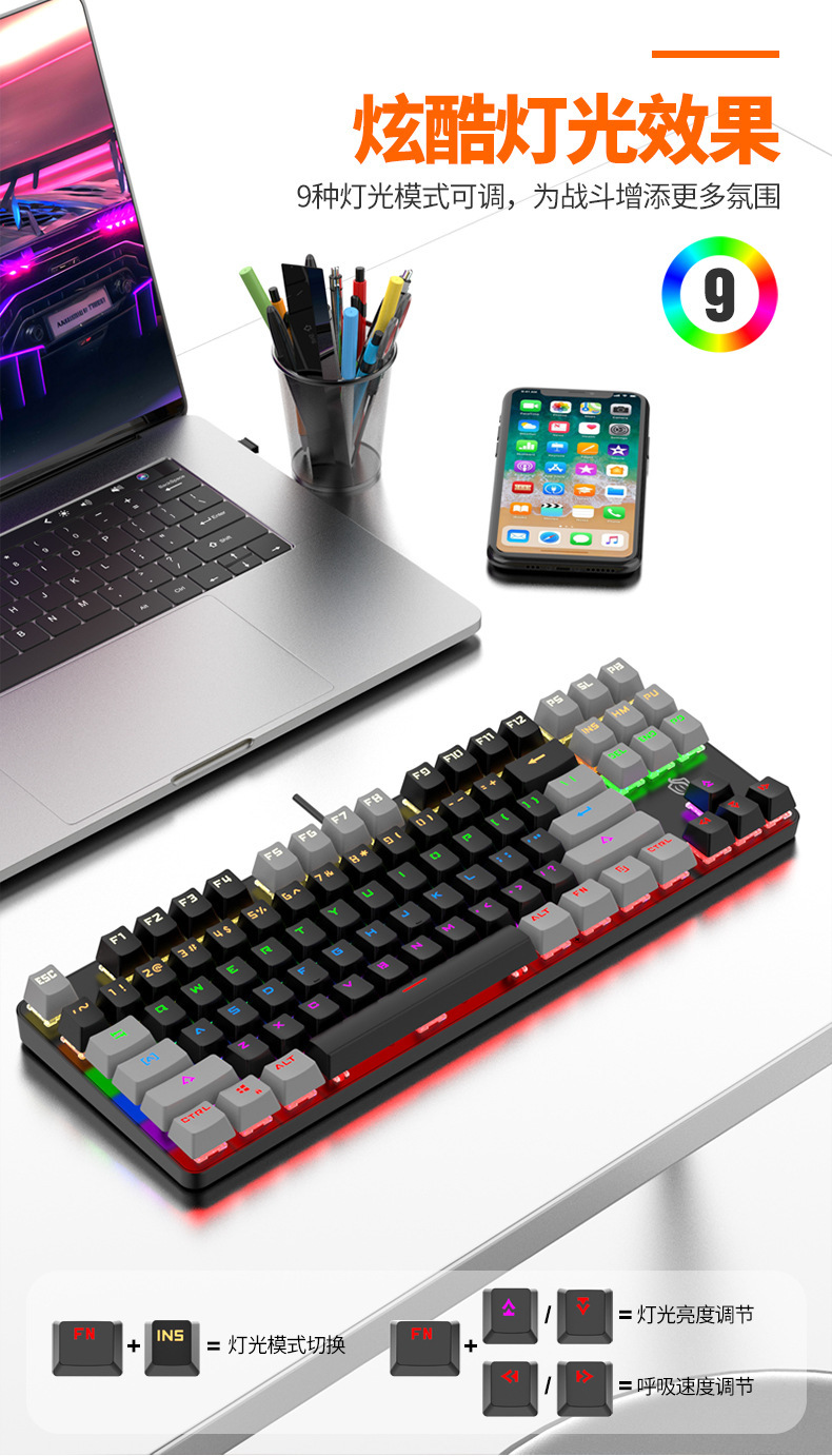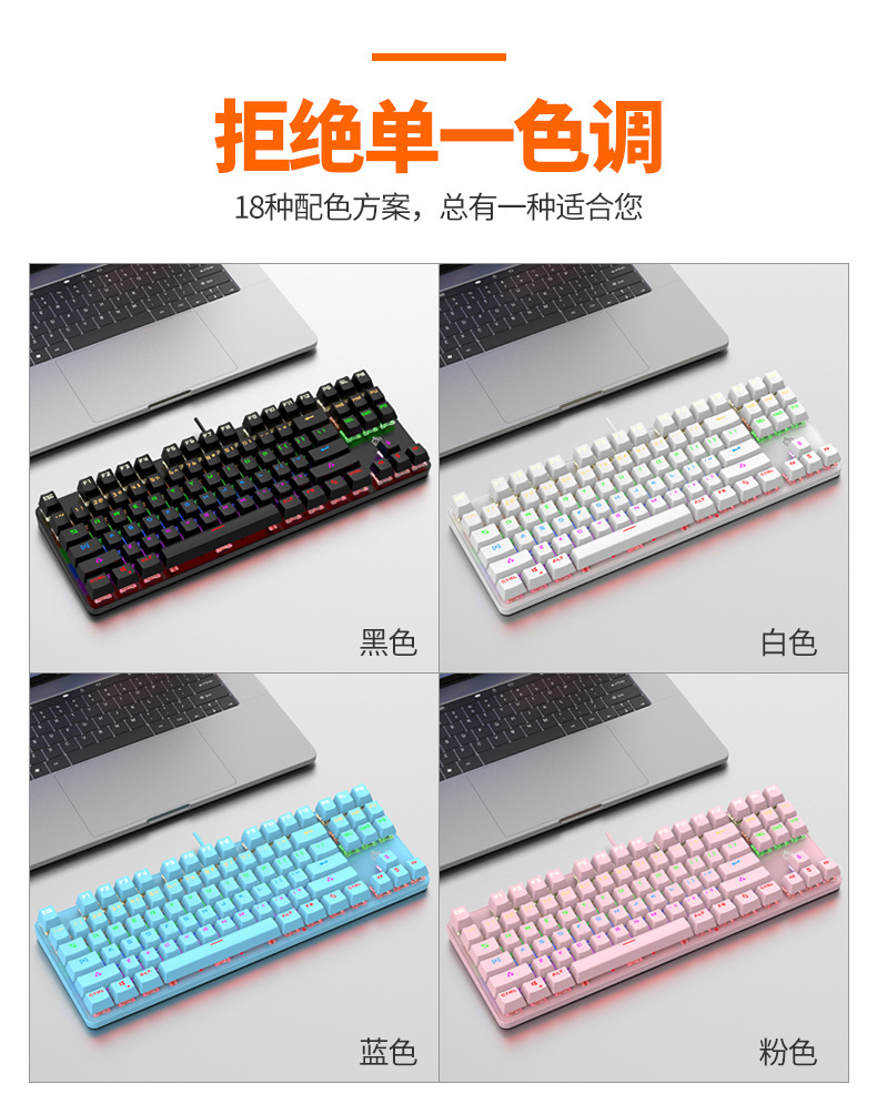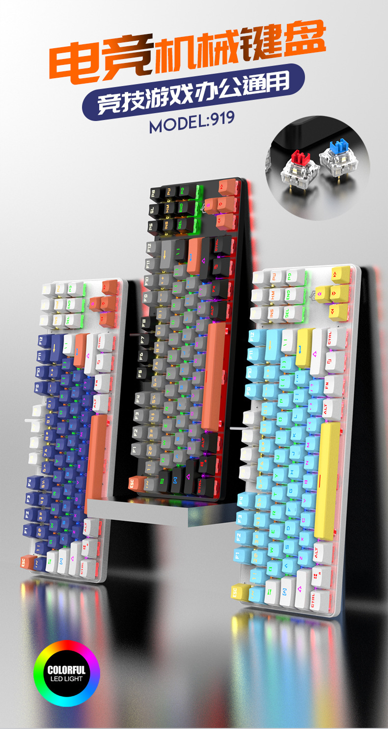 【电竞机械键盘,竞技游戏办公通用~】新款k919有线机械键盘 多拼色混光87键 青轴电竞游戏 办公笔记本键盘-QQ