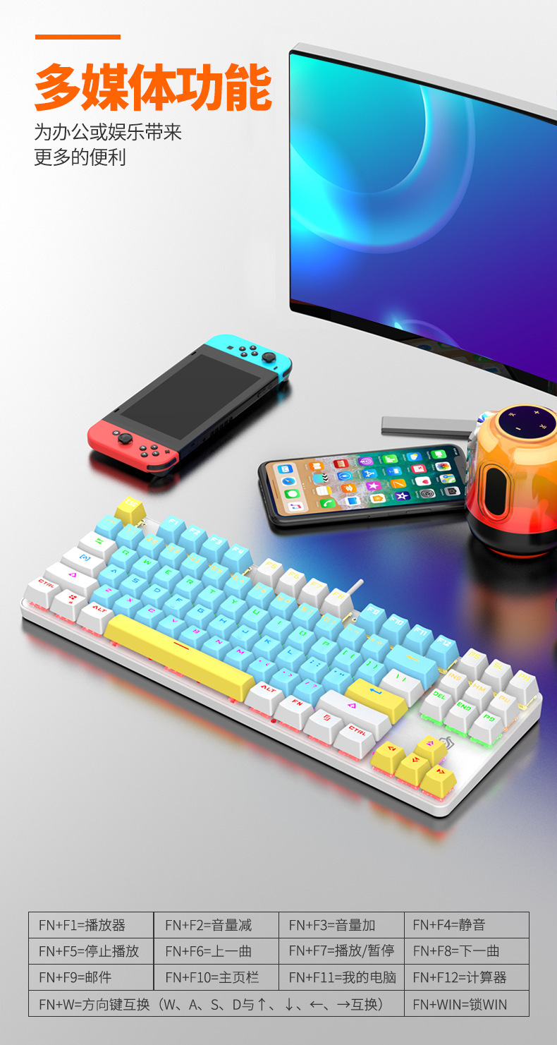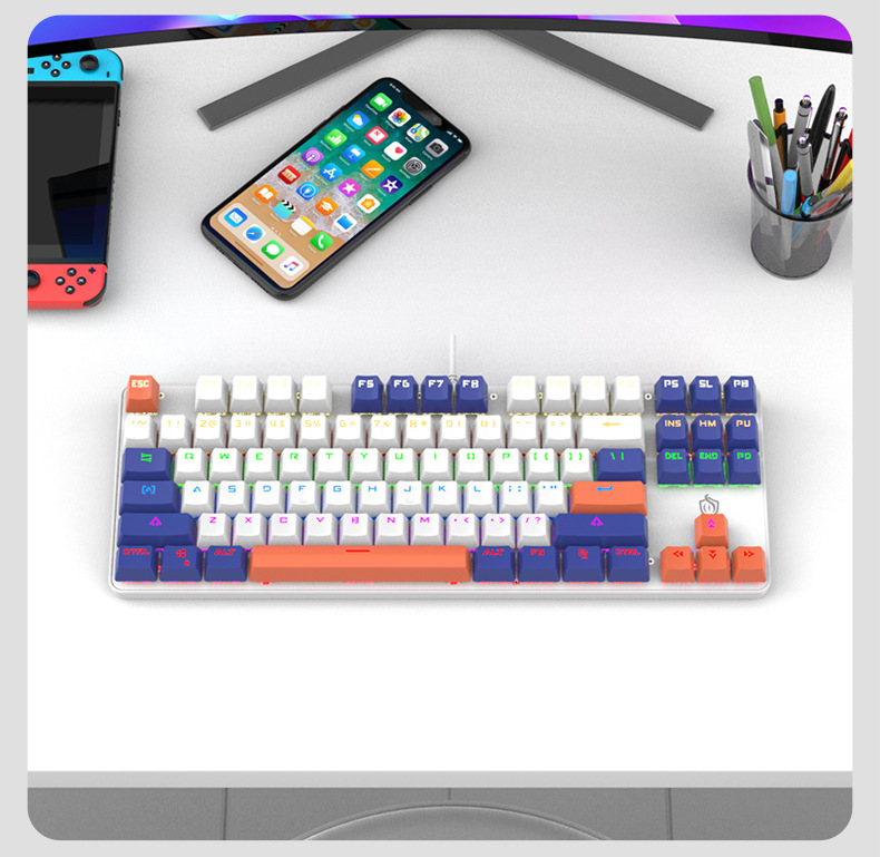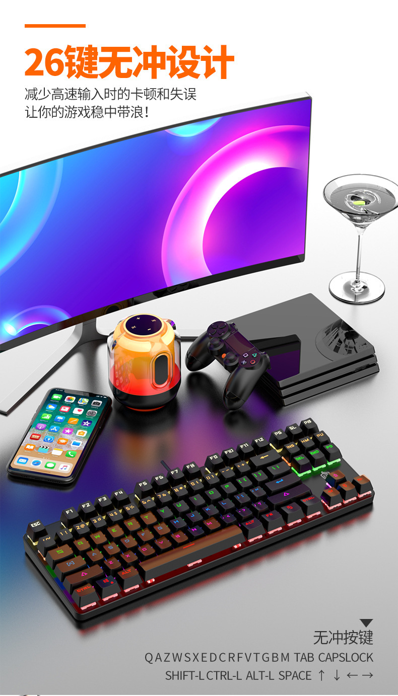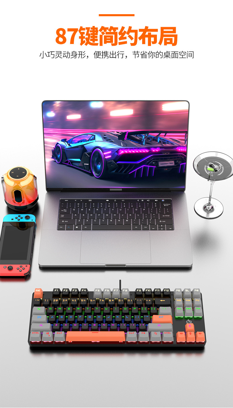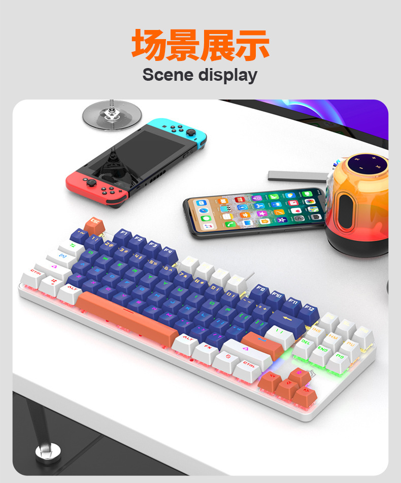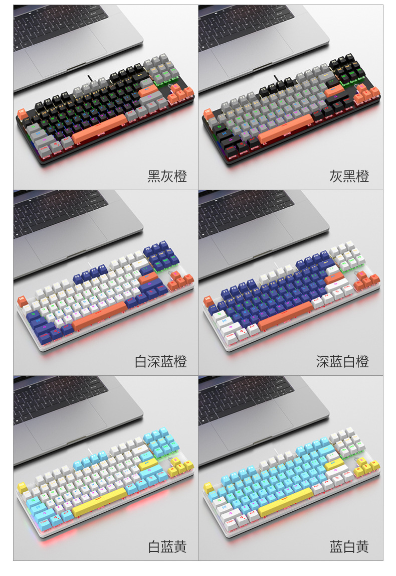 【电竞机械键盘,竞技游戏办公通用~】新款k919有线机械键盘 多拼色混光87键 青轴电竞游戏 办公笔记本键盘-QQ
