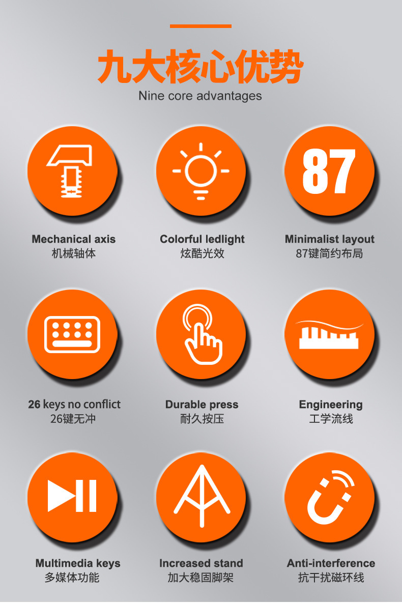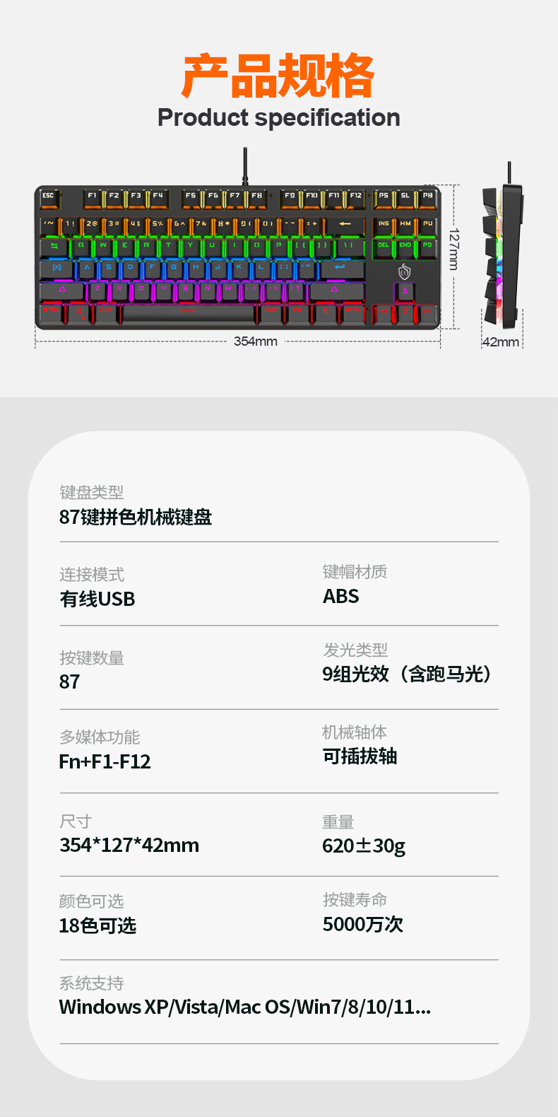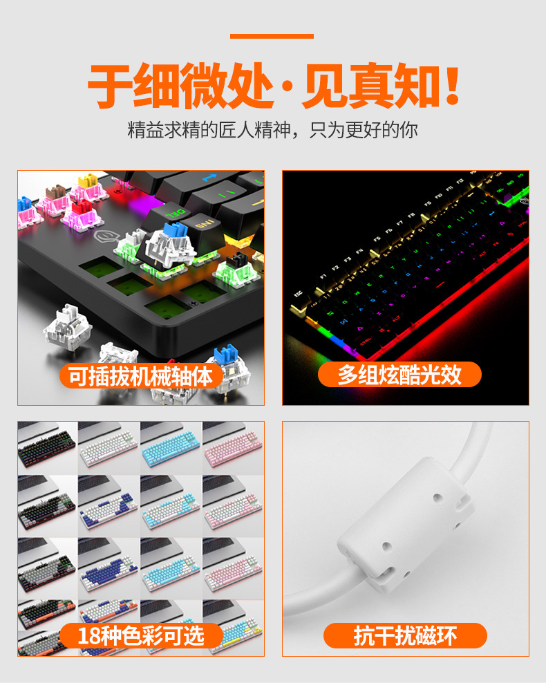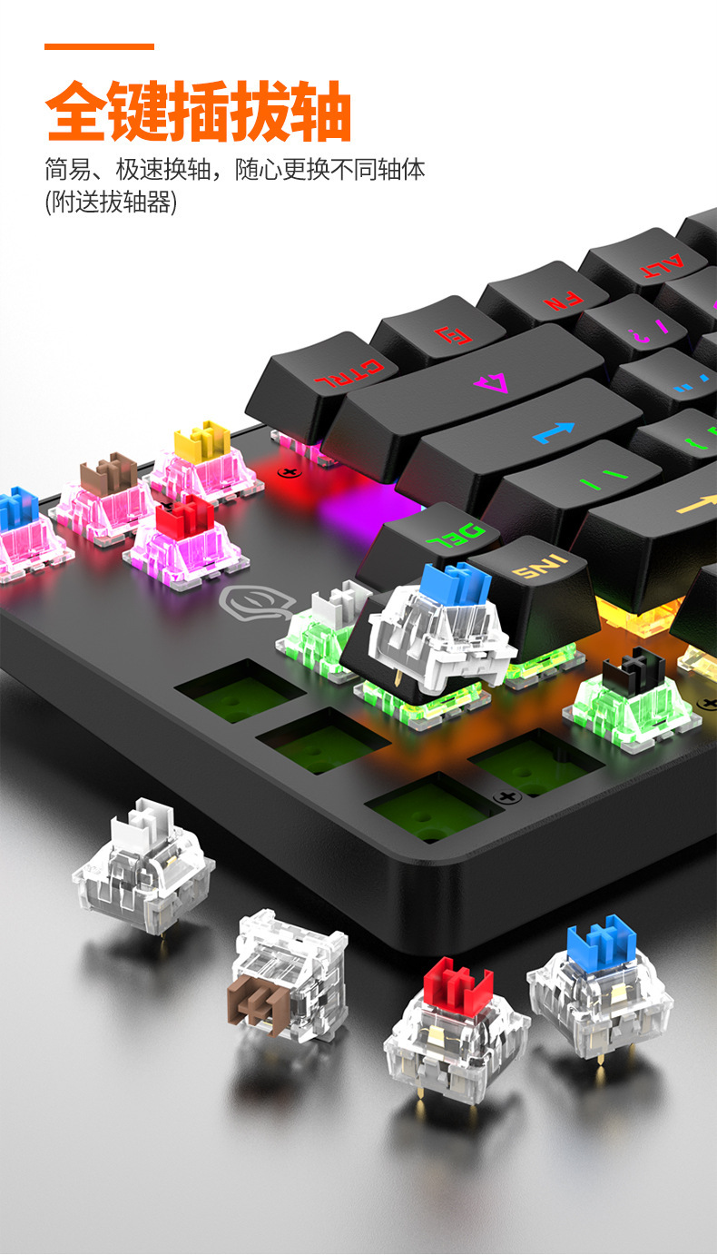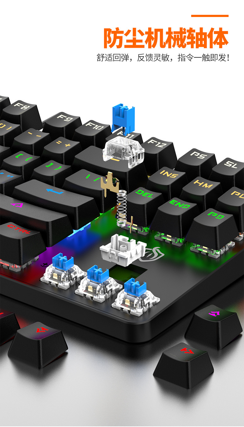 【电竞机械键盘,竞技游戏办公通用~】新款k919有线机械键盘 多拼色混光87键 青轴电竞游戏 办公笔记本键盘-QQ