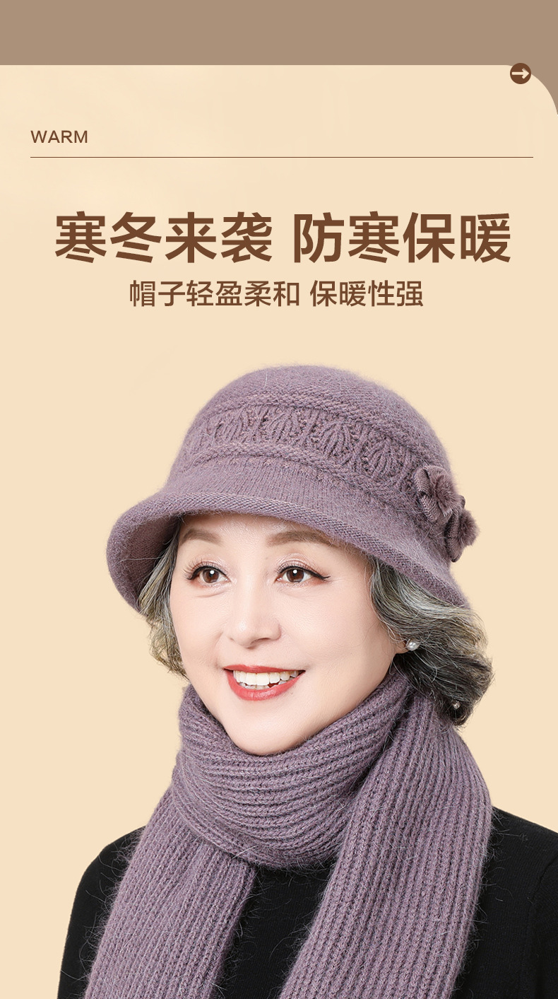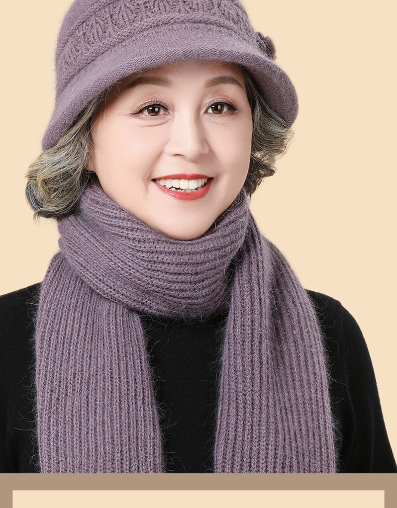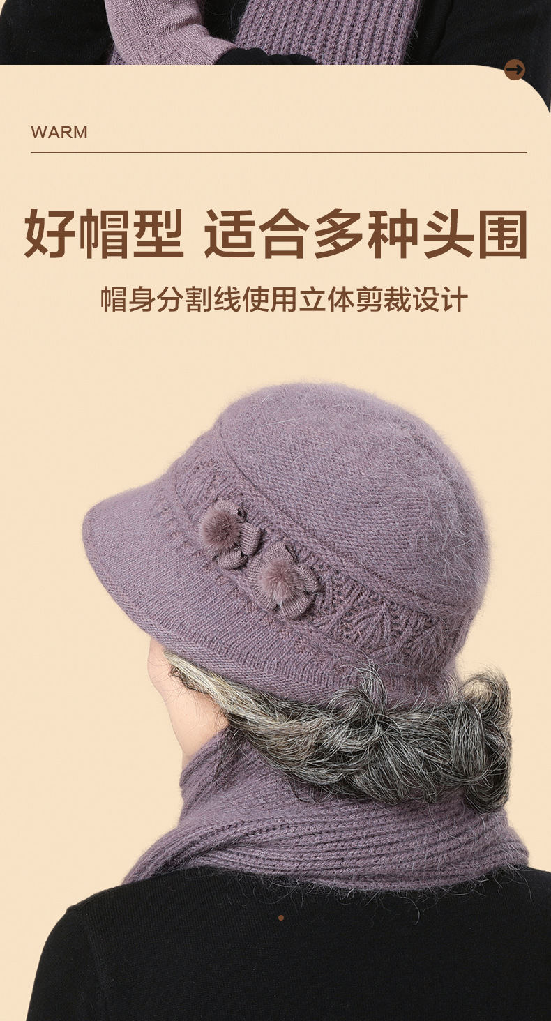 【优质兔毛混纺❗️立体裁剪舒适无感】中老年人奶奶姥姥老人棉帽围巾中年妈妈帽子女冬季加绒保暖毛线帽。jc