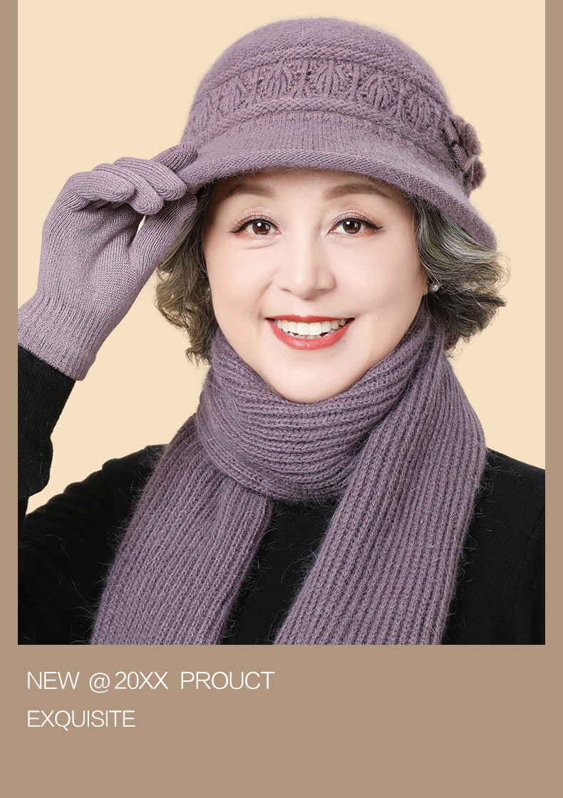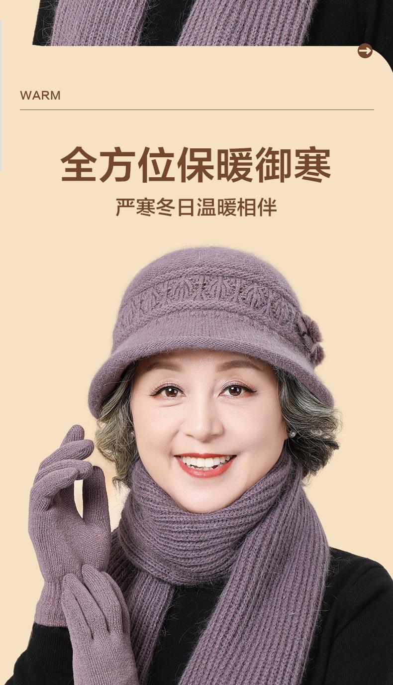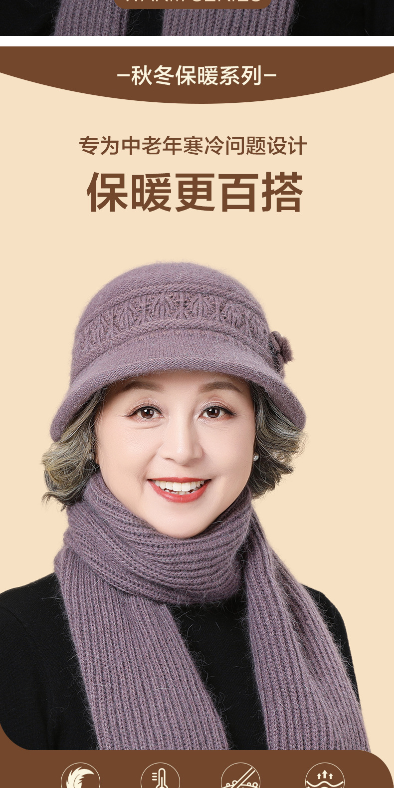 【优质兔毛混纺❗️立体裁剪舒适无感】中老年人奶奶姥姥老人棉帽围巾中年妈妈帽子女冬季加绒保暖毛线帽。jc