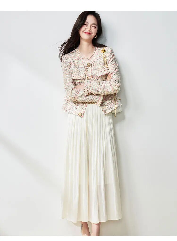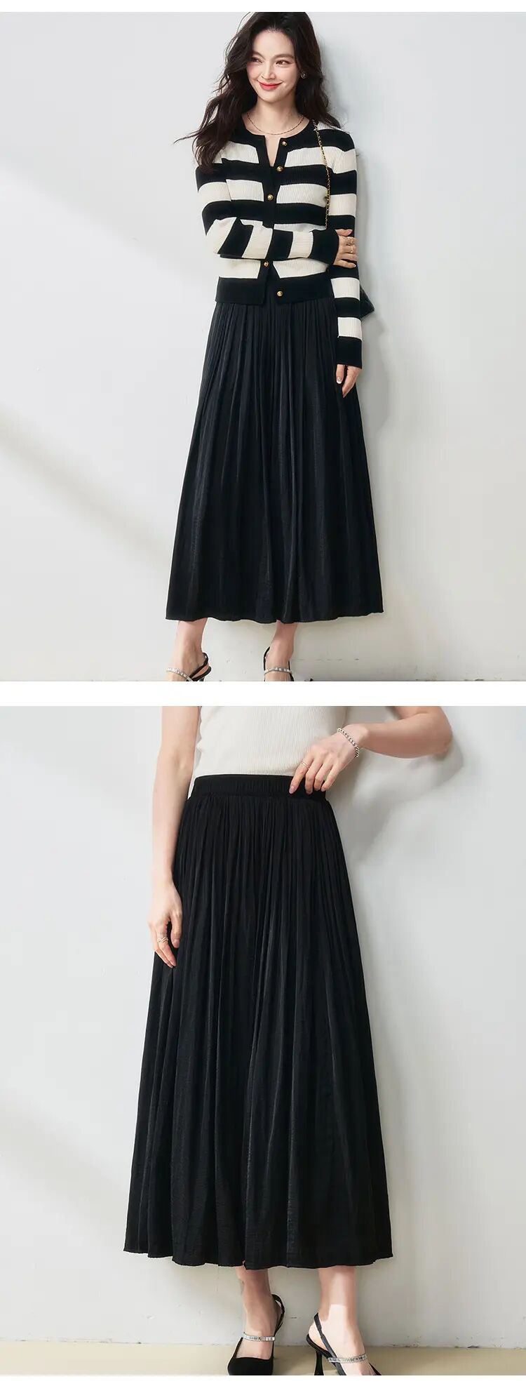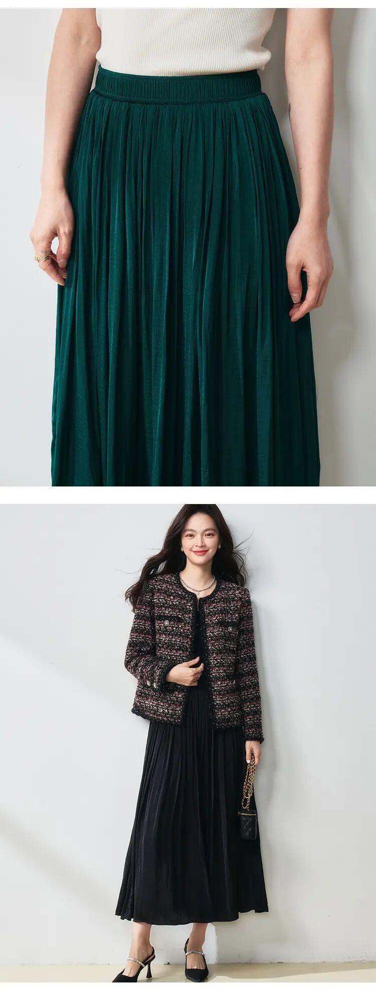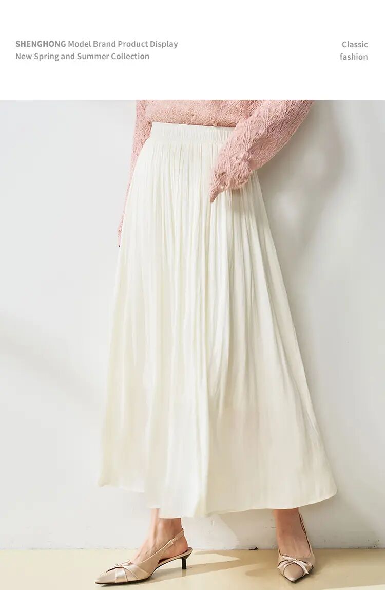 【高货sh】全新升级【铂金会员146/天猫199/差价53】(15210) 洛诗琳25春夏流光半身裙流动珠光感丝质百褶大裙摆A字裙