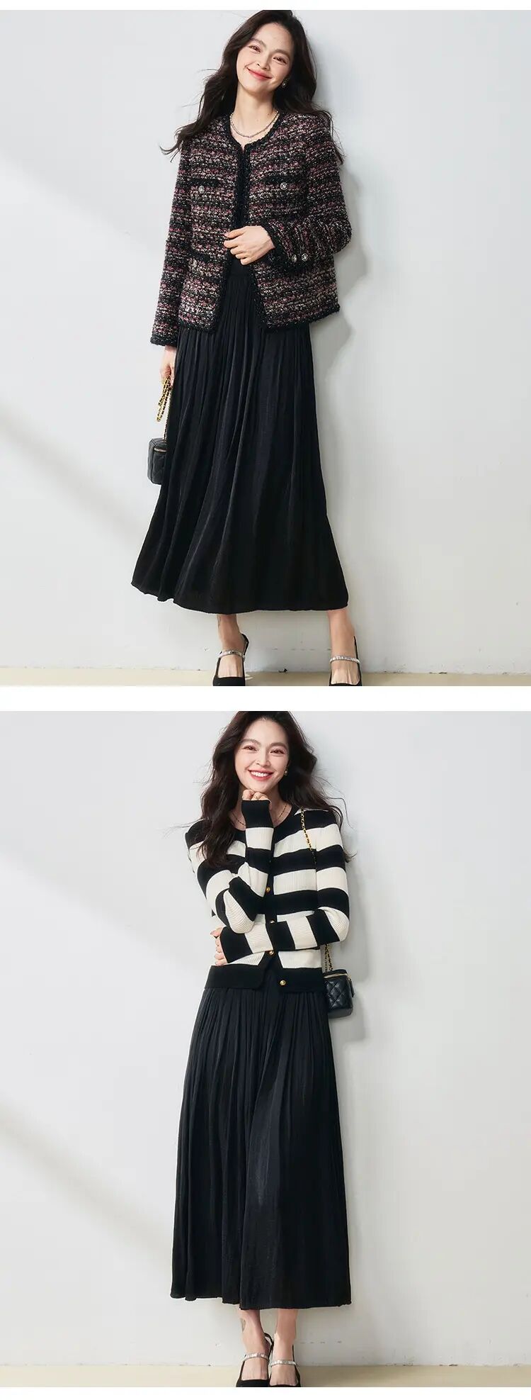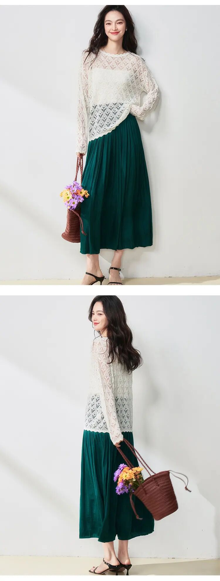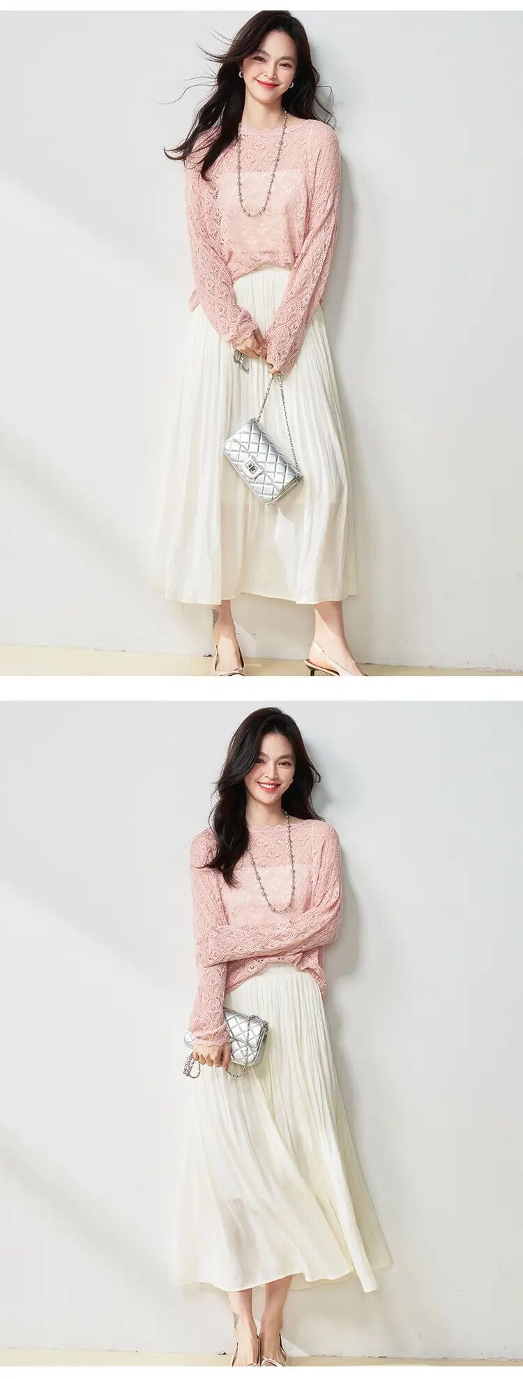 【高货sh】全新升级【铂金会员146/天猫199/差价53】(15210) 洛诗琳25春夏流光半身裙流动珠光感丝质百褶大裙摆A字裙