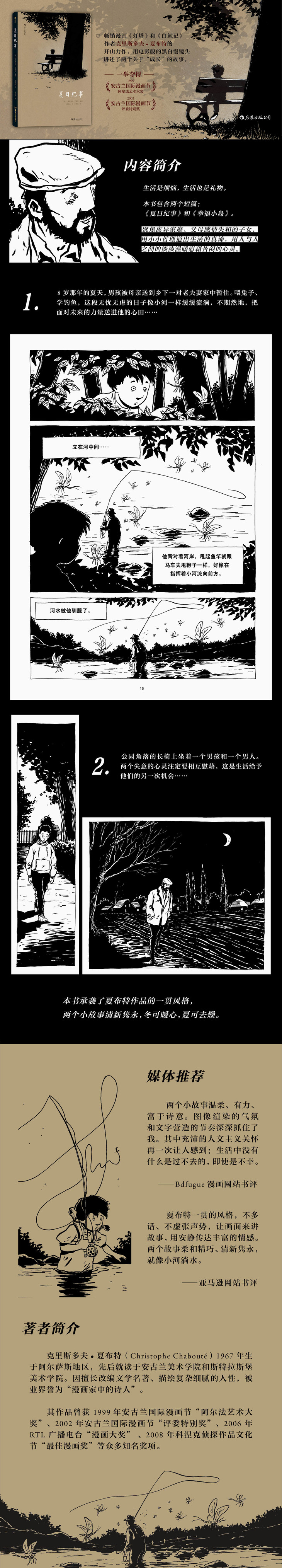 夏日纪事(夏布特继《灯塔》之后又一部敏感而忧伤的图像小说 用黑白两色的慢镜头讲述童年的烦恼、成长的孤独 给浮躁焦虑的现代人带来内心的宁静和抚慰 安古兰国际漫画节“阿尔法艺术大奖”)
