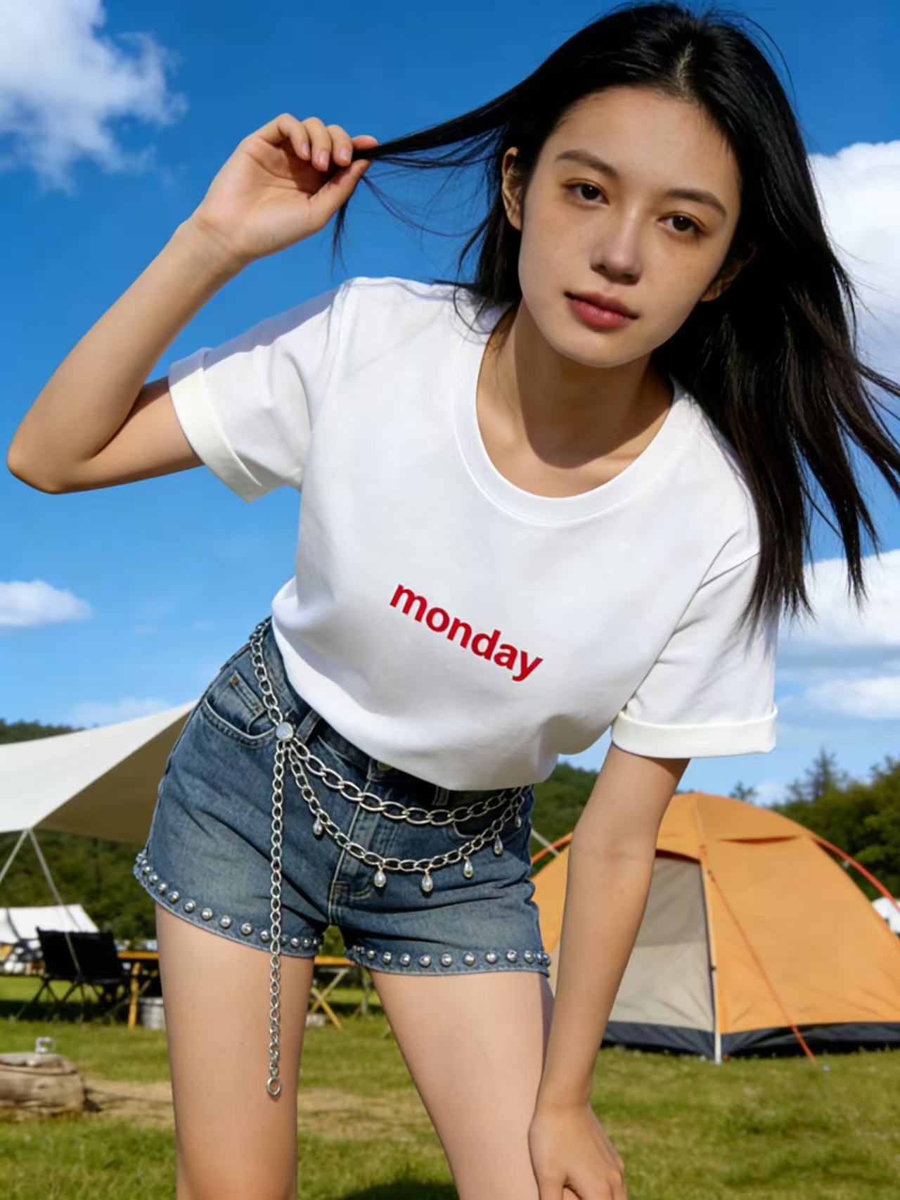 任选2件39.9元!超高性价比【自营】monday红印花字母!7688精梳棉!95%棉圆领短袖T恤上衣-喜出