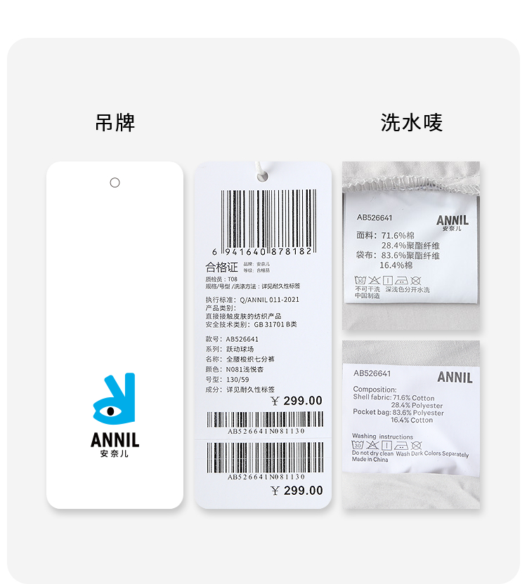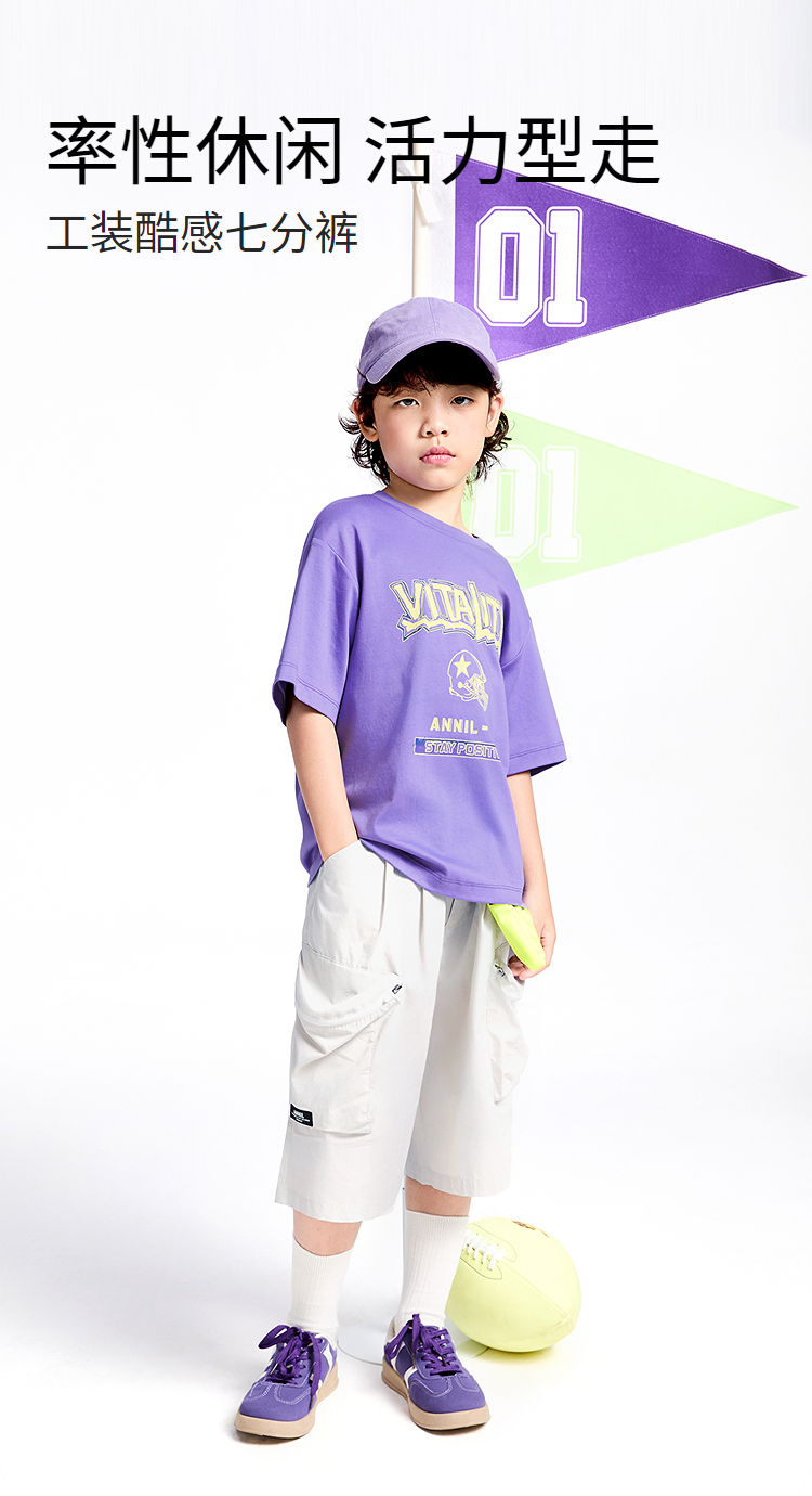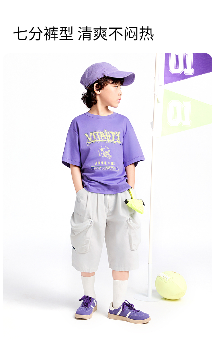 男童全腰梭织七分裤夏季新款安奈儿童装实体店同款AB526641