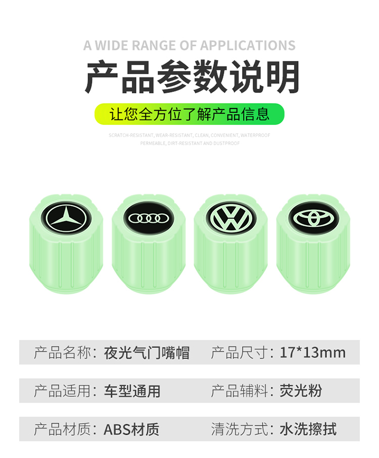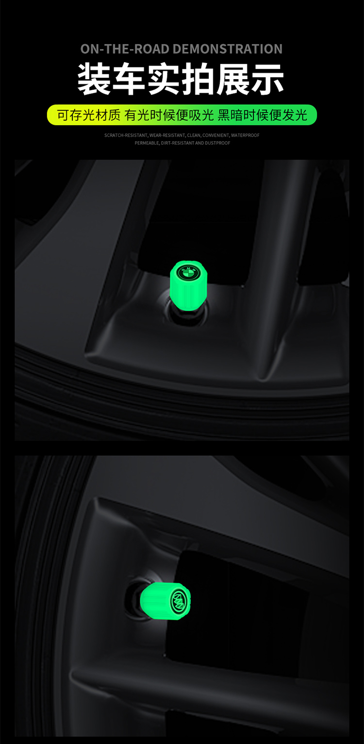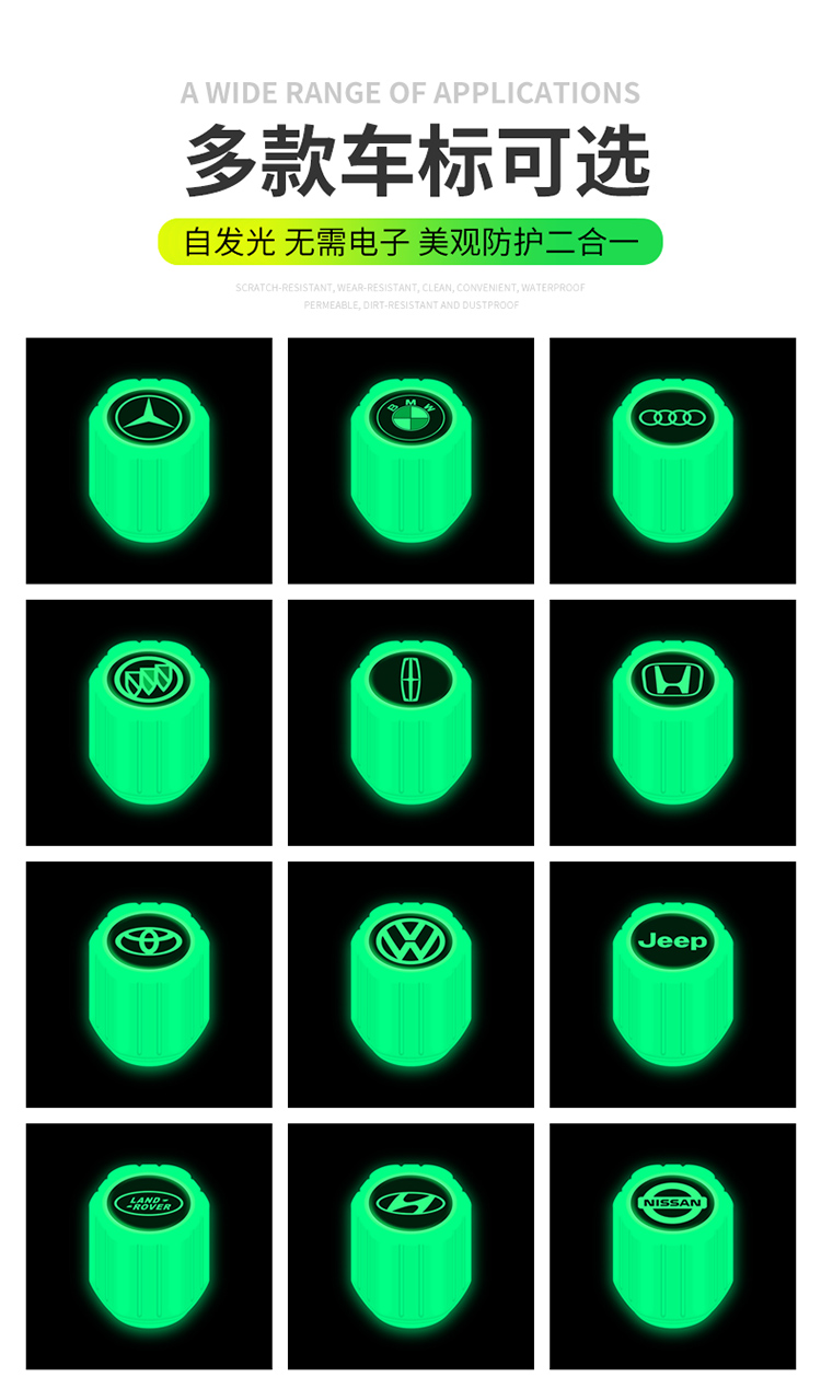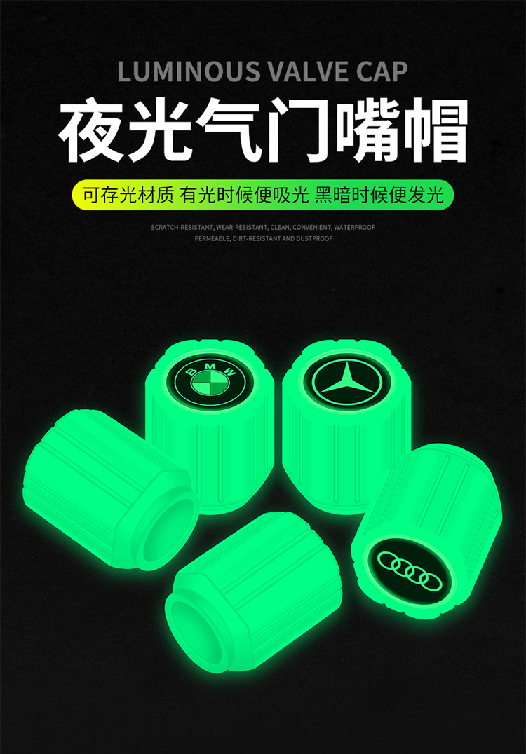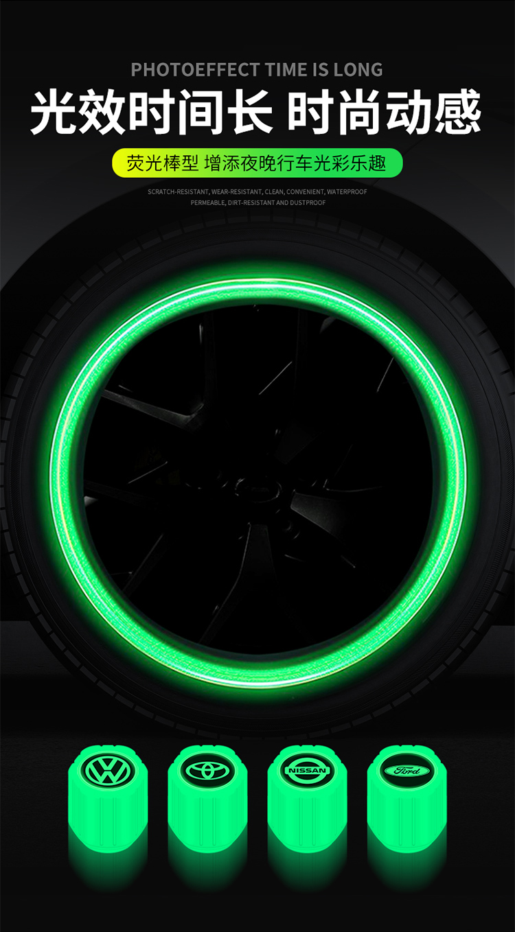 4粒装实价夜光气嘴汽车轮胎气门嘴帽发光电动车摩托车真空胎