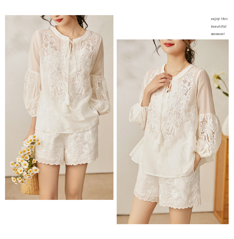 优雅名媛风,轻奢绣花短裤套装重磅刺绣美翻三件套WLZD-2302105