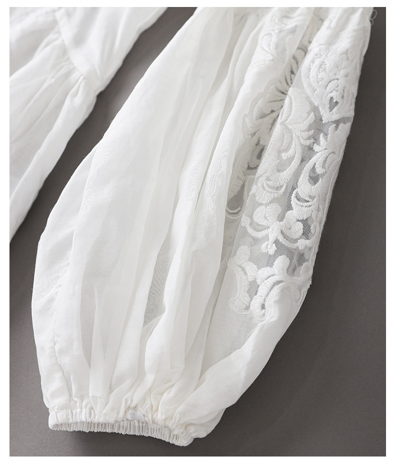 新中式半高领短袖小衫,网纱提花T恤LA43907