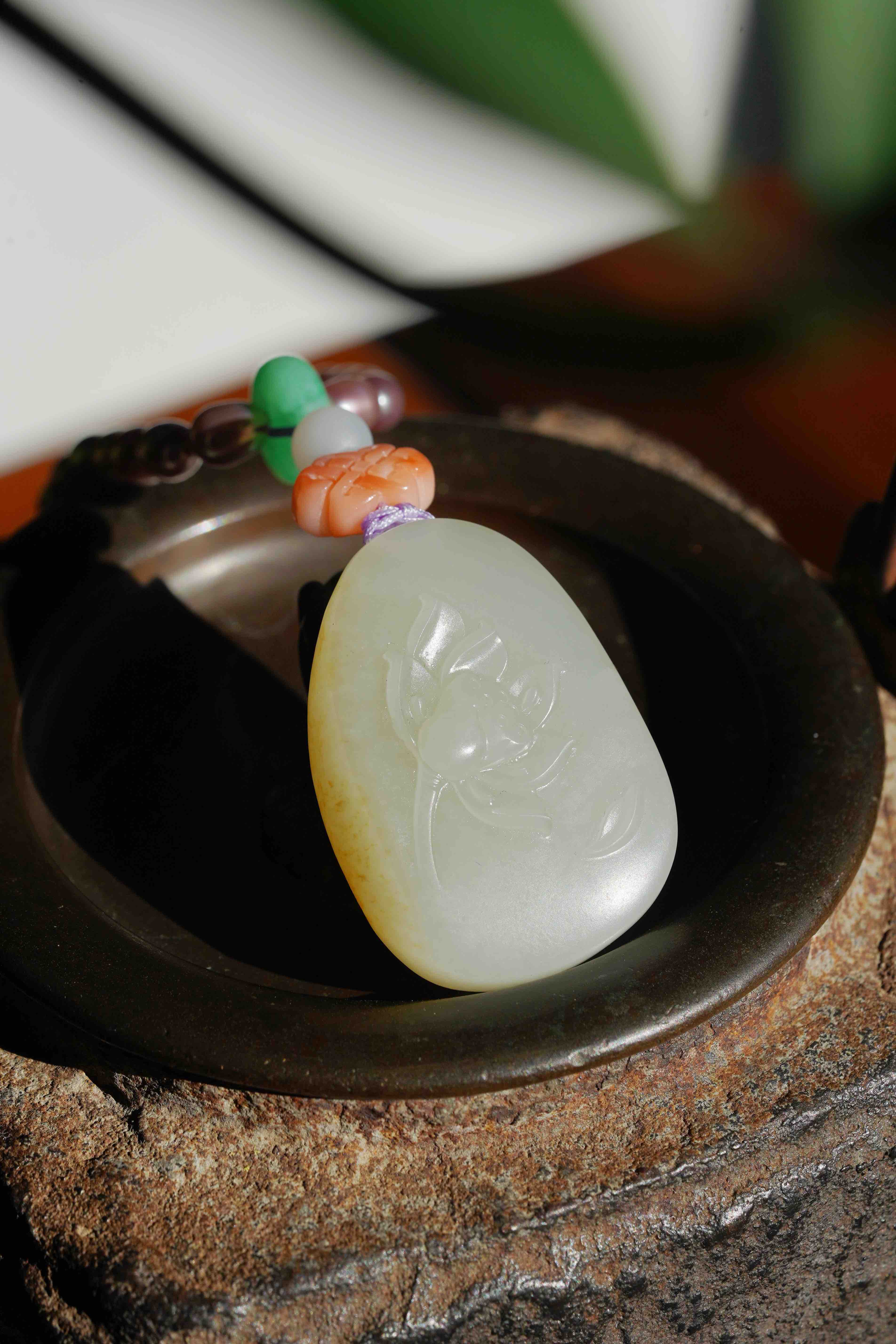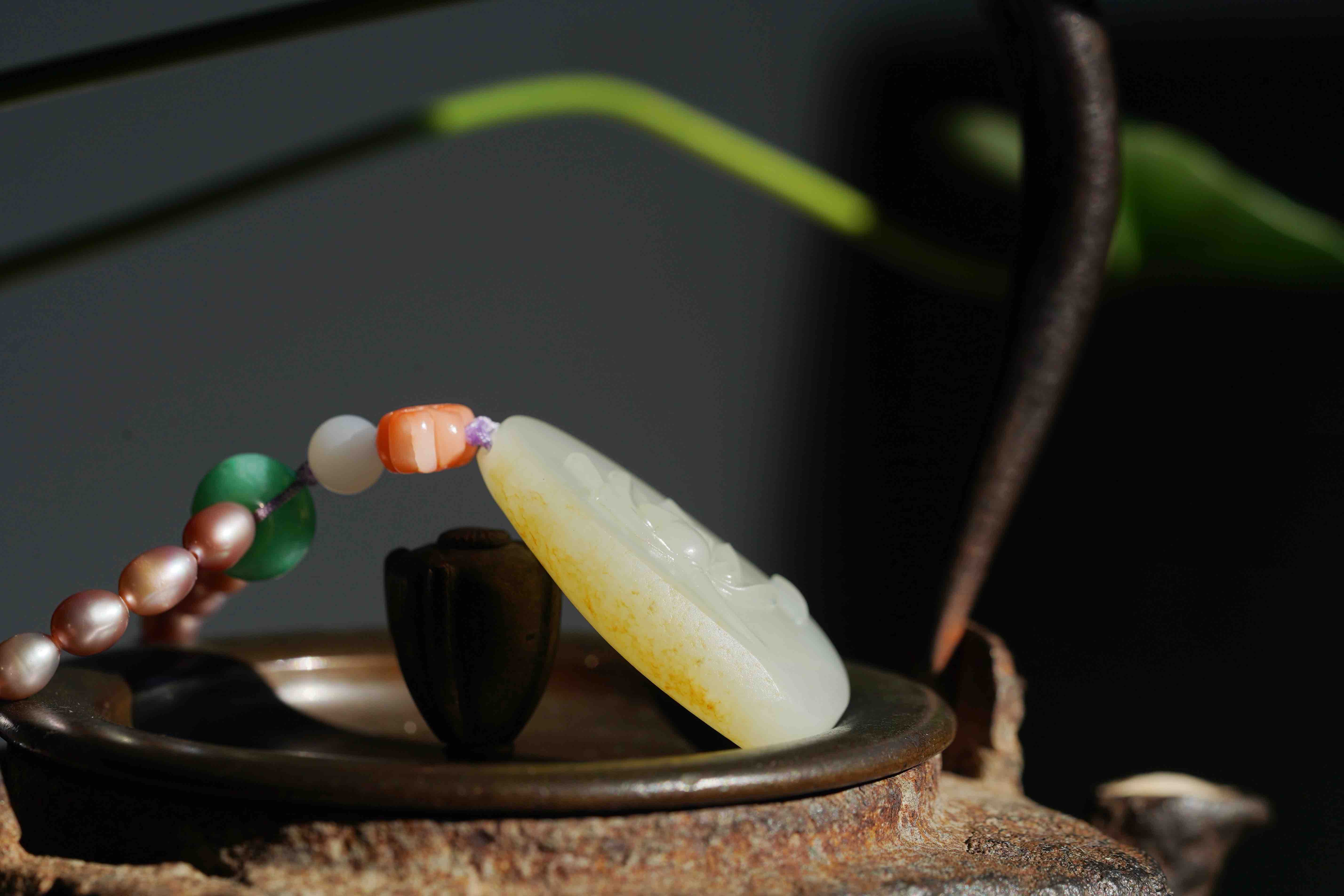 和田玉莲花牌