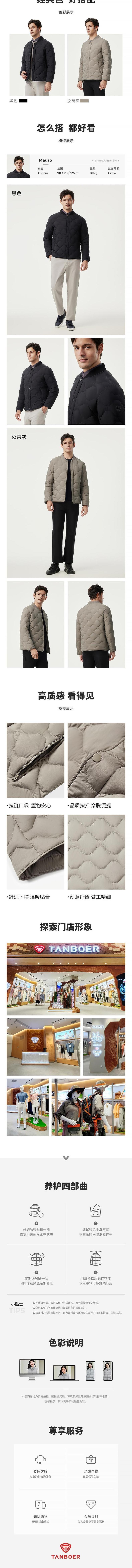 坦博尔 男轻薄短款羽绒服 TAF310119A