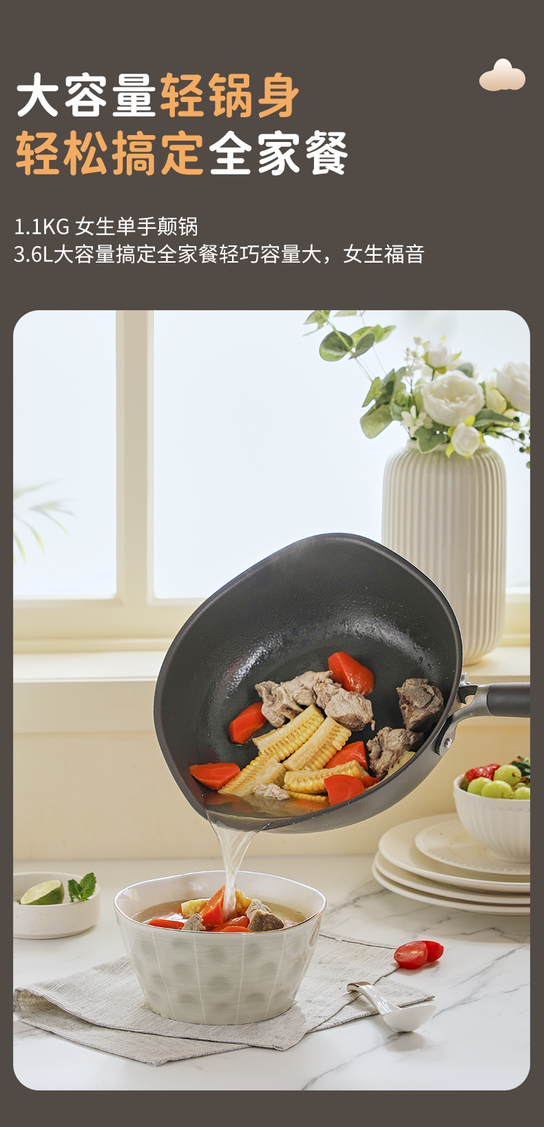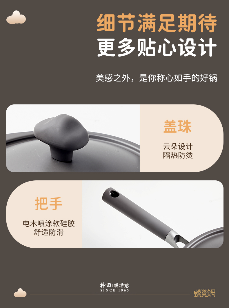 神田(KANDA)铁神云朵款多功能0涂层不粘炒锅32cm云峰白& 富贵红(赠蒸盘+清洁膏/乳)