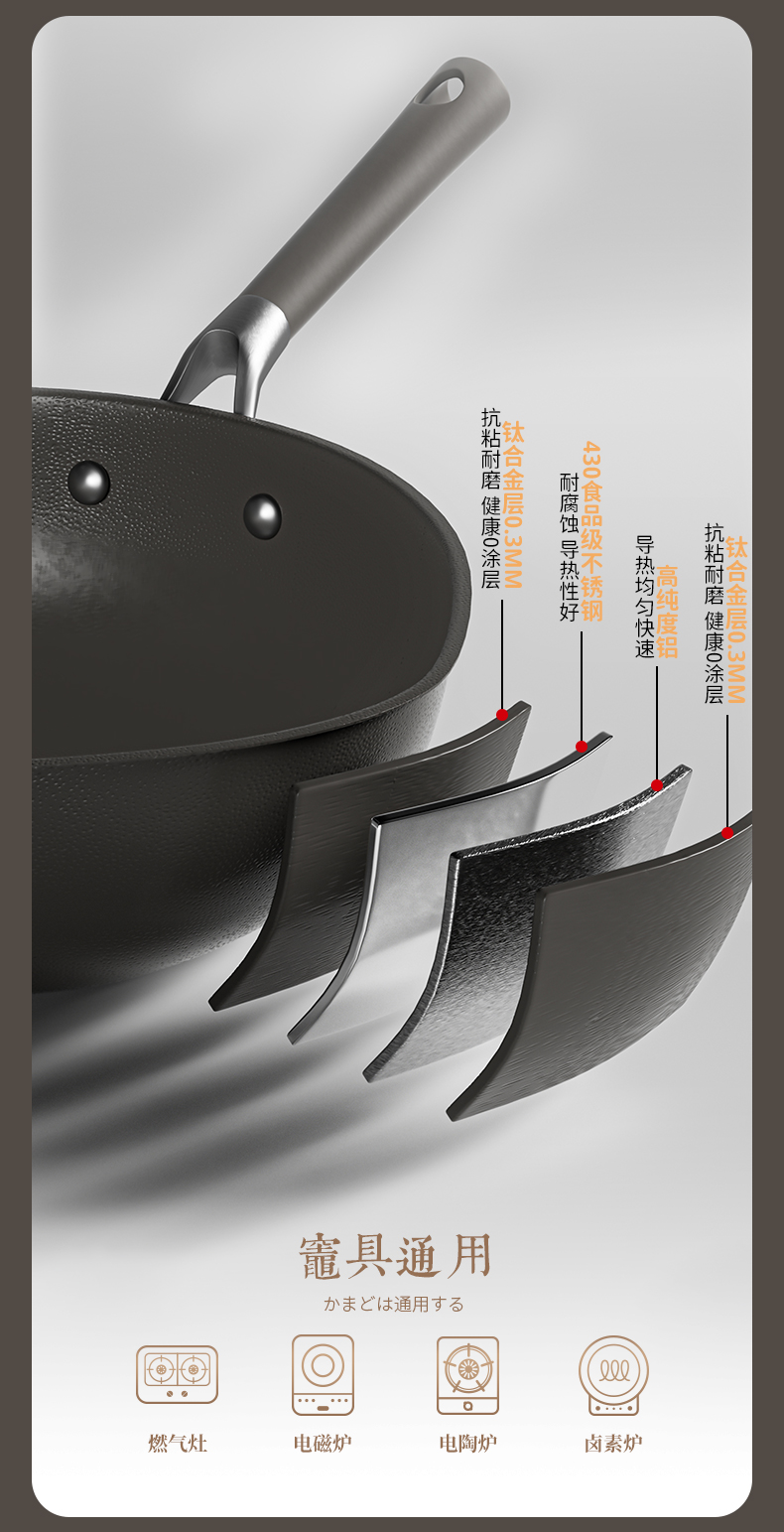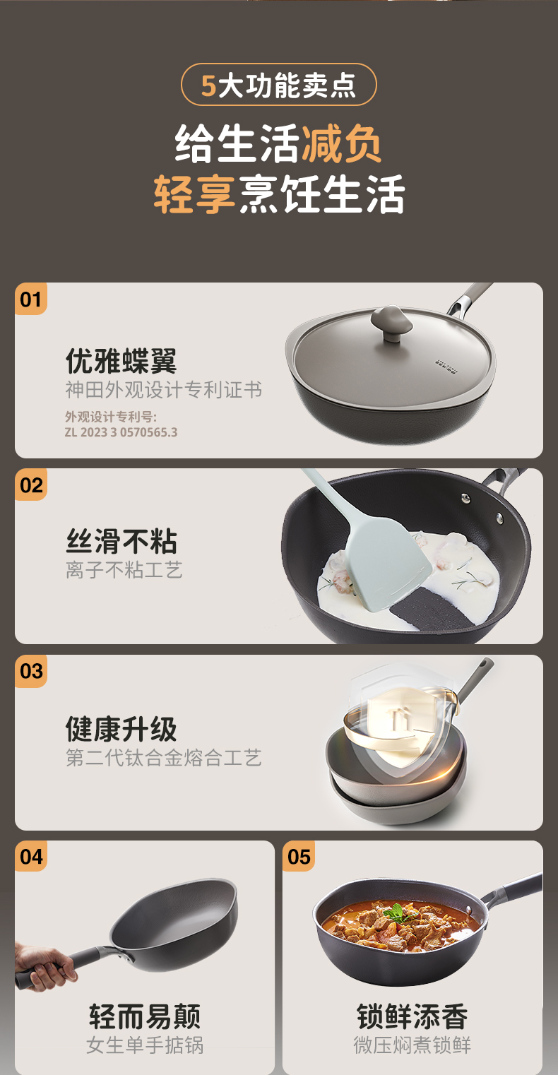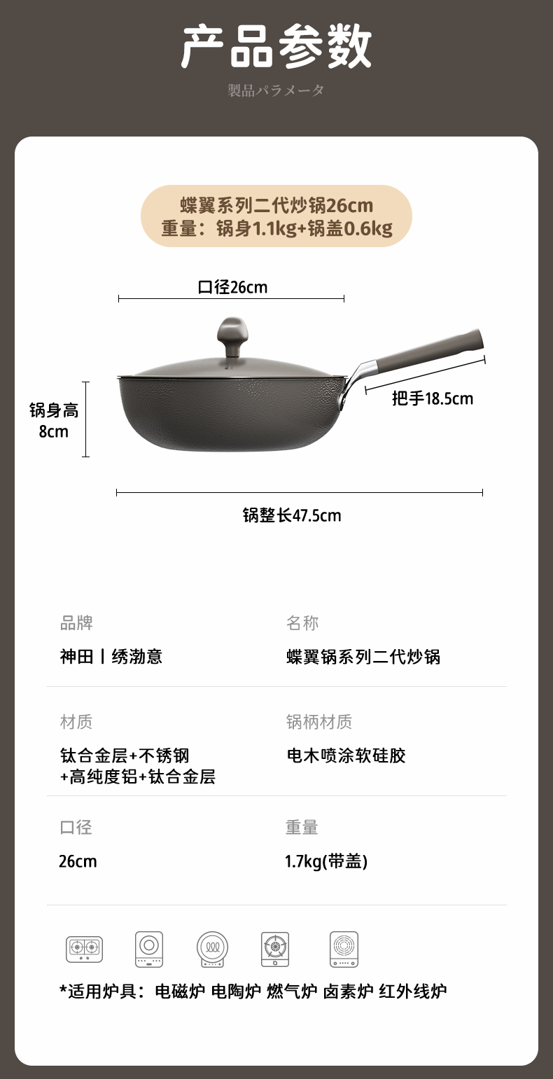 神田(KANDA)臻钛系列0涂层钛合金蝶翼锅二代26cm
