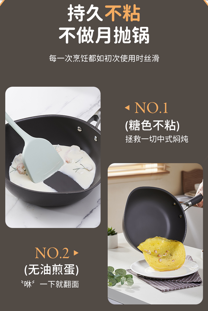 神田 (KANDA)铁神系列三代纤维纹0涂层中式炒锅 30/33cm 可视拱盖