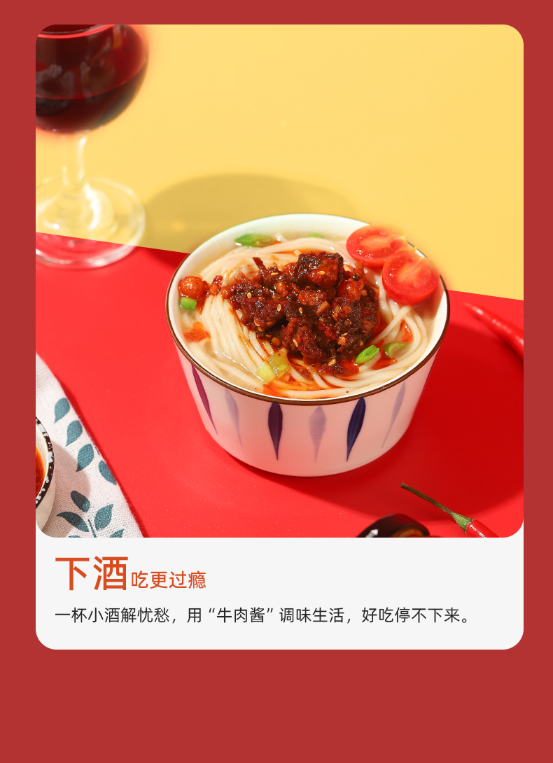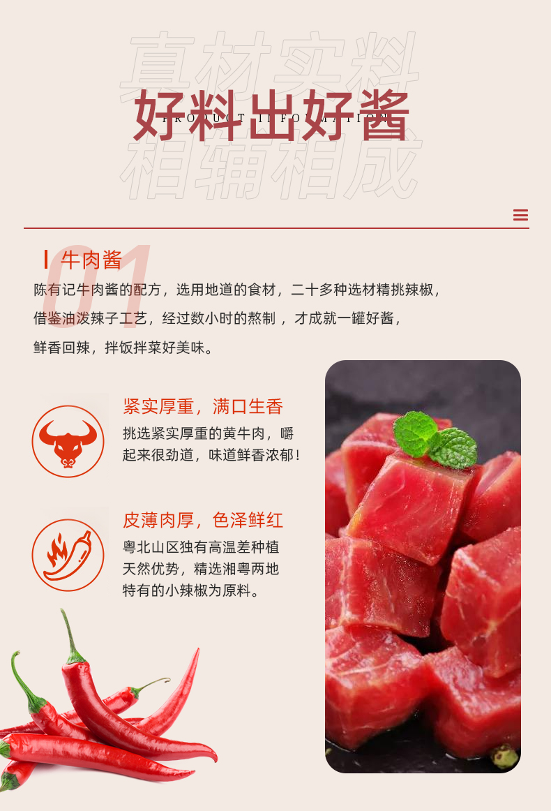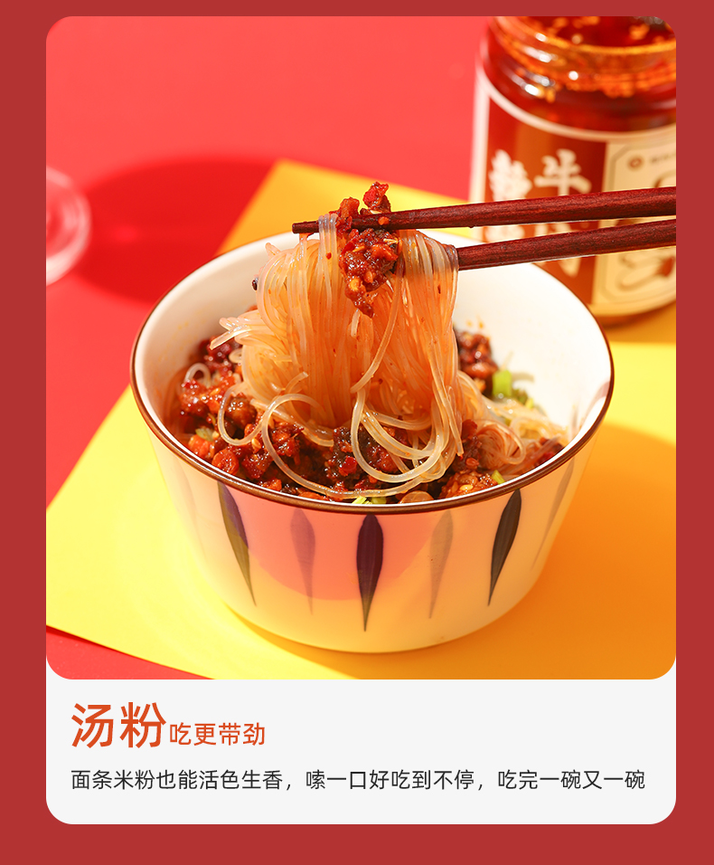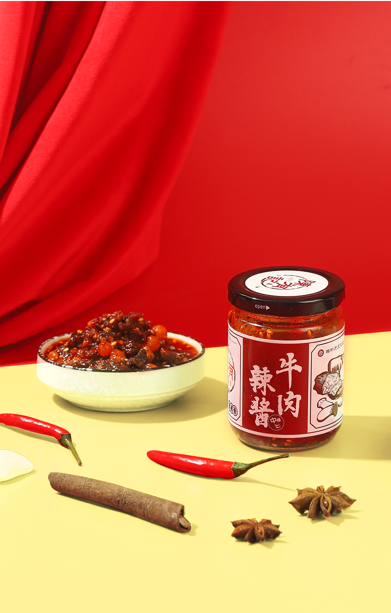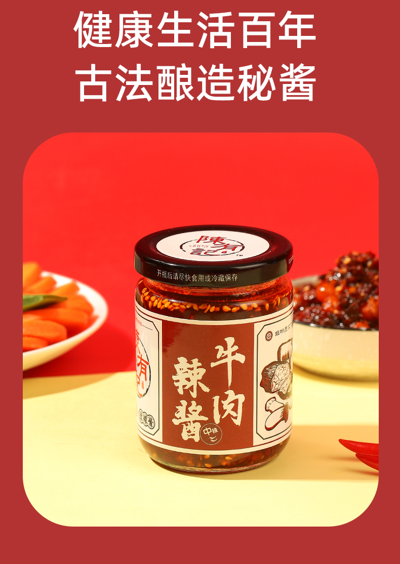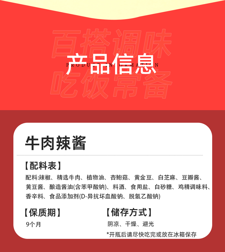 陈有记牛肉辣酱200g/瓶,含50%牛肉,牛肉带有嚼劲,配上杏鲍茹的爽口和豌豆的香脆,拌饭拌面拌粉最适合