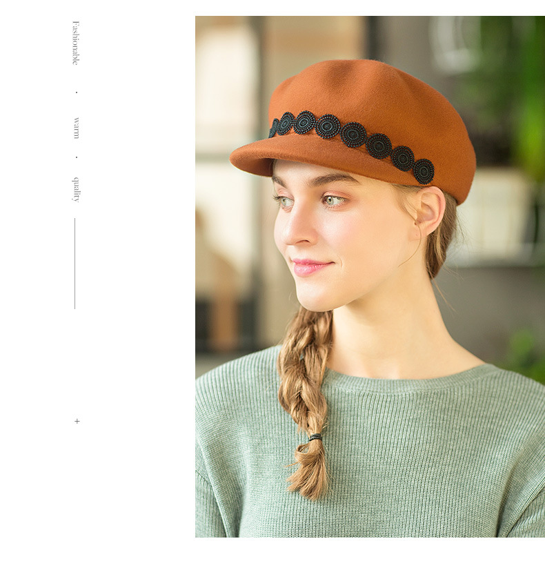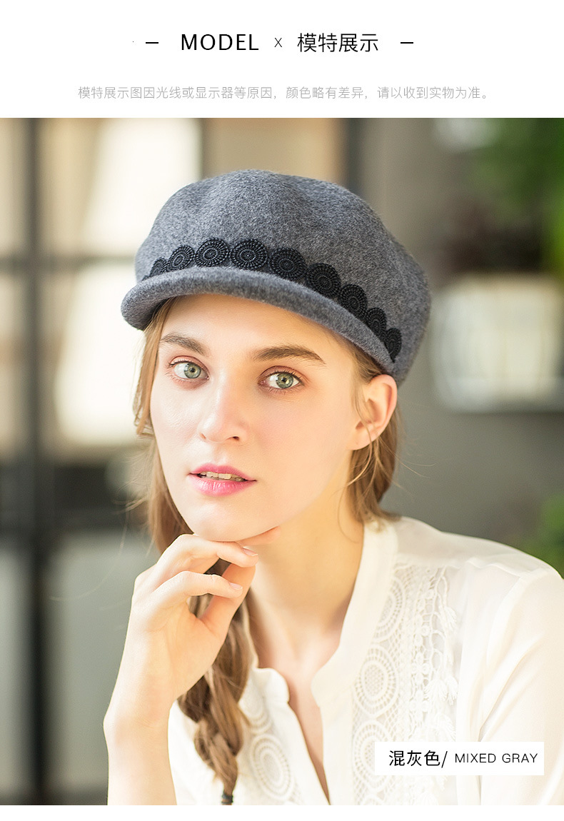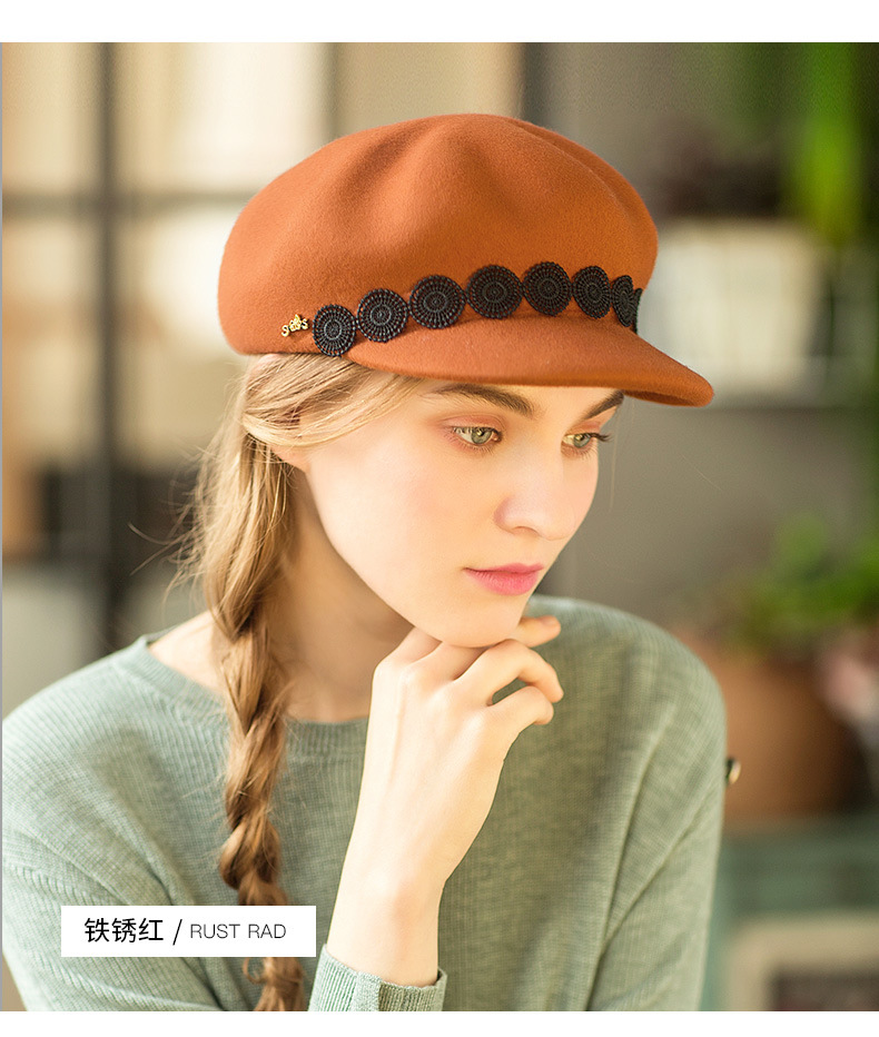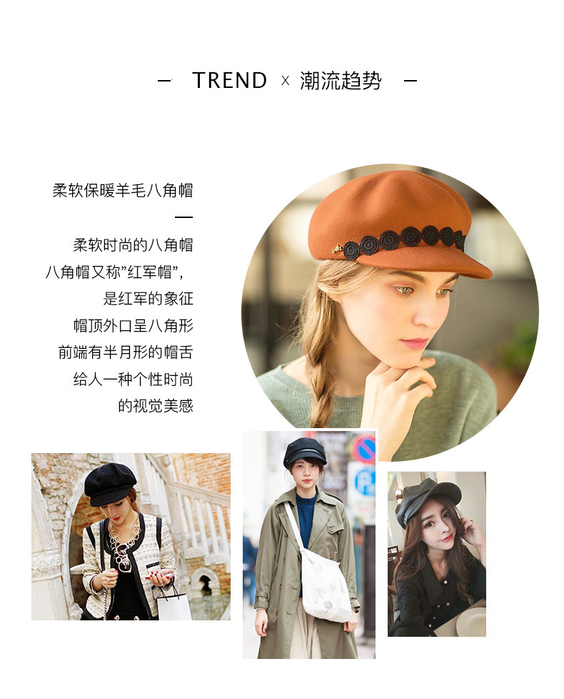 RM-FW058022A八角帽女秋冬英伦贝雷帽时尚毛呢画家帽子鸭舌帽
