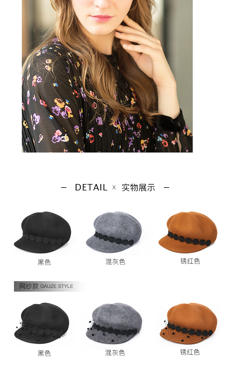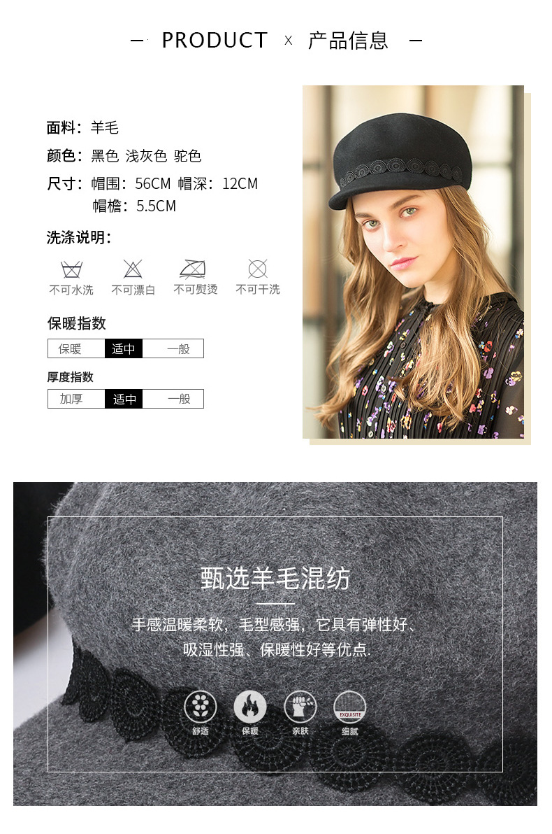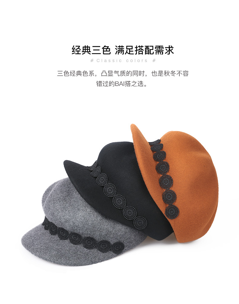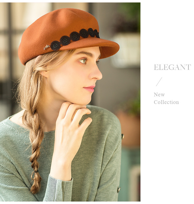 RM-FW058022A八角帽女秋冬英伦贝雷帽时尚毛呢画家帽子鸭舌帽
