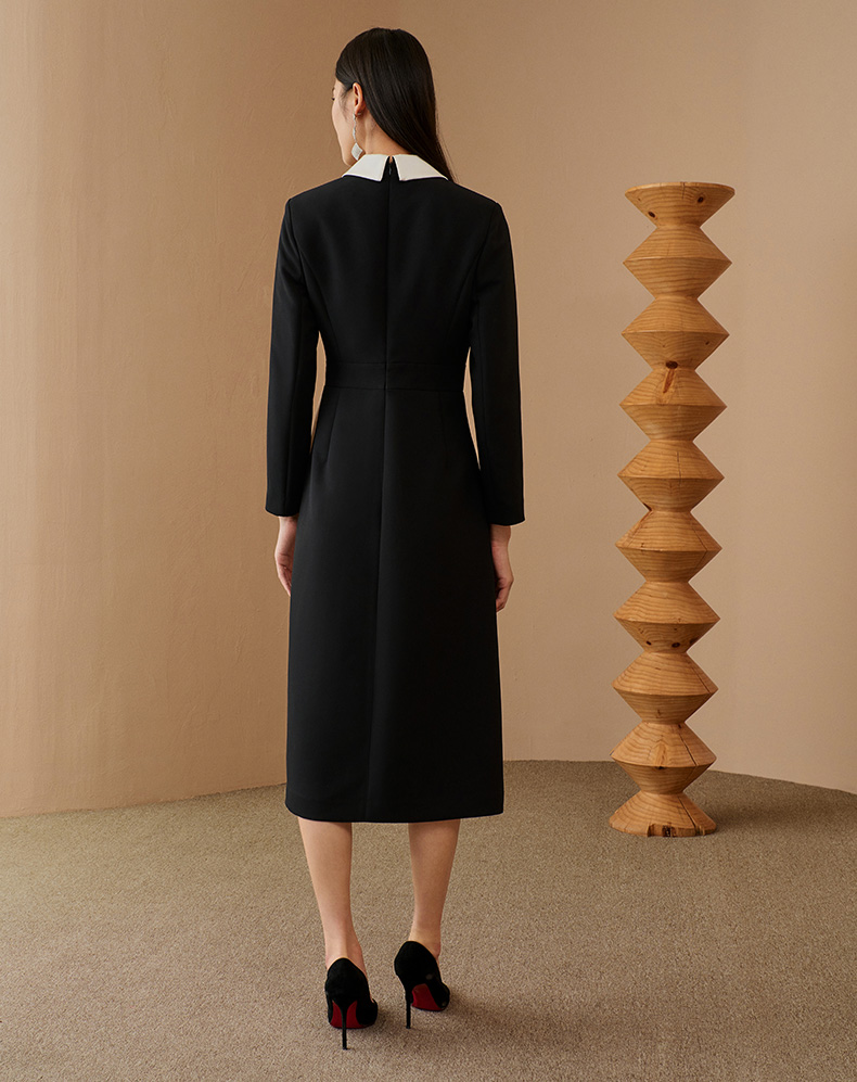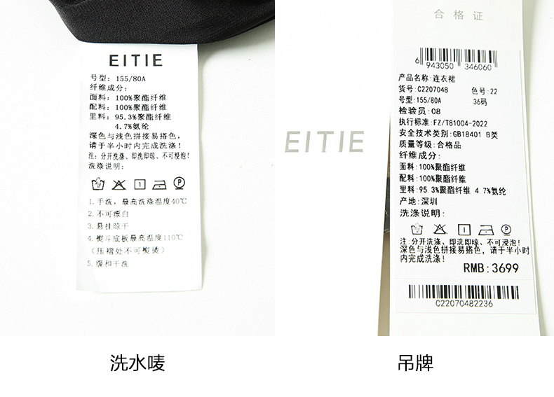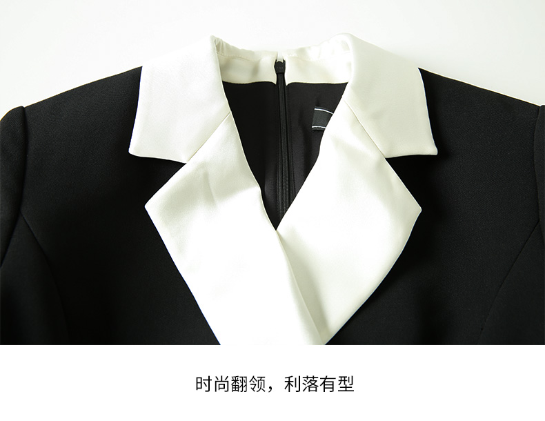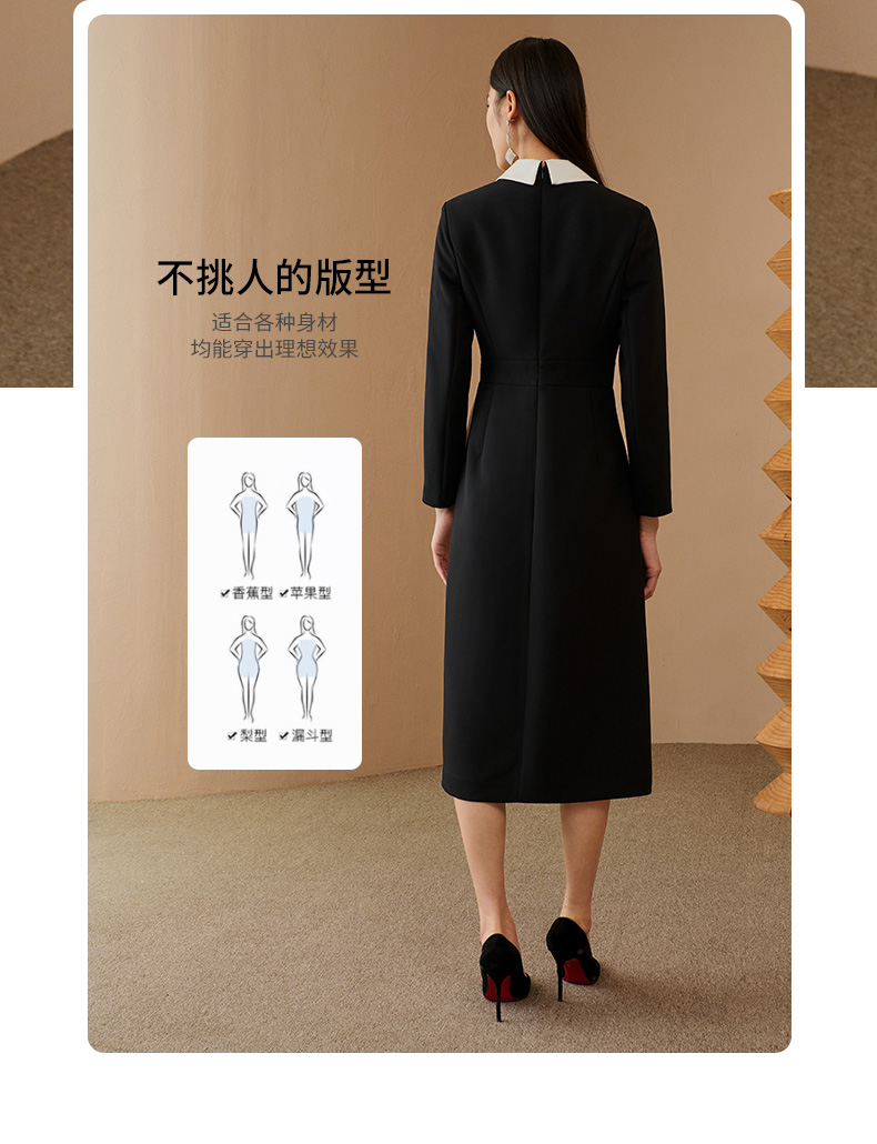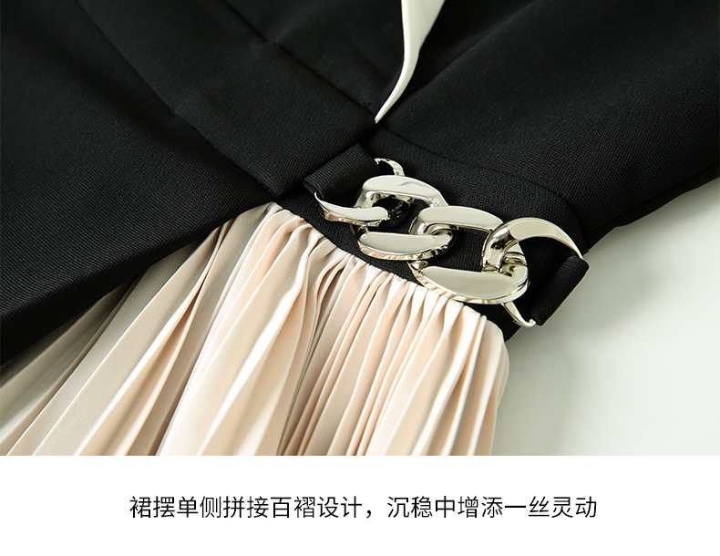 EITIE爱特爱冬新款时尚OL撞色西装领百褶连衣裙收腰显瘦优雅C2207048