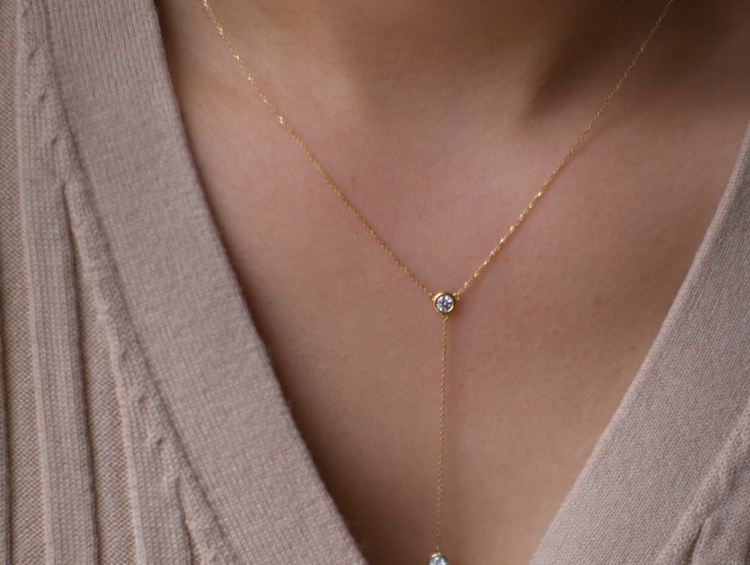 LUCINE鹿鸣珠宝 | 钻石Y型链毛衣链18k黄金长链