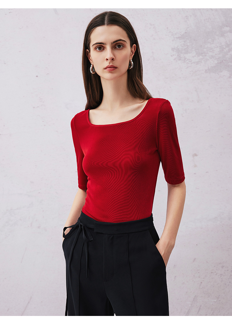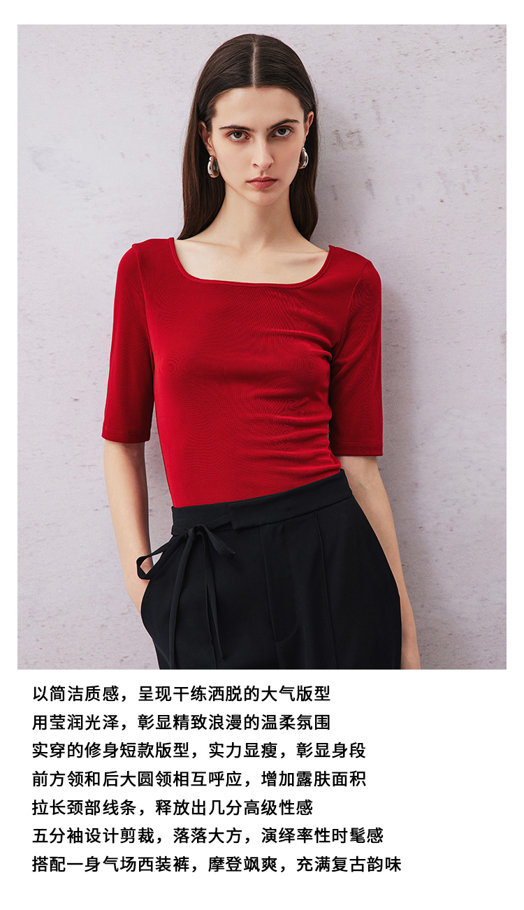 VIMAGE纬漫纪春季新款时尚显瘦方领小上衣V2113704