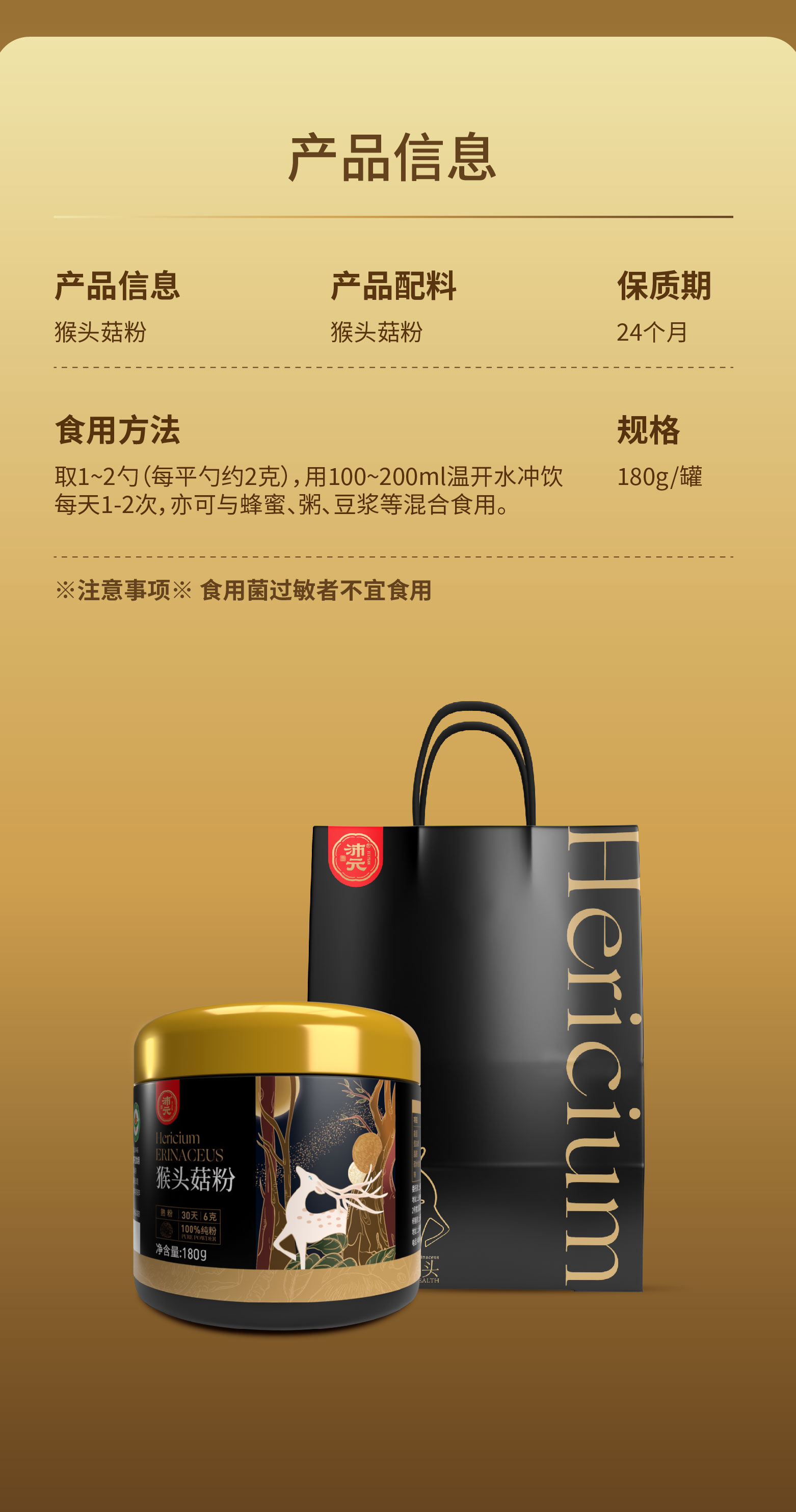 沛元超微破壁炒制纯猴头菇粉搭早餐食品营养蛋白质粉多糖菌片烘焙干货无糖饼干猴头菇胃养粉 1罐180克