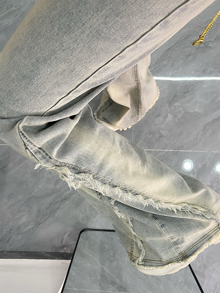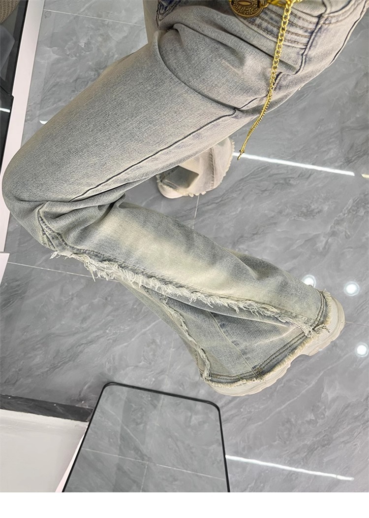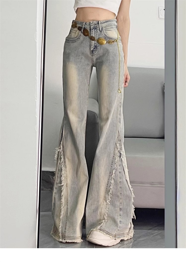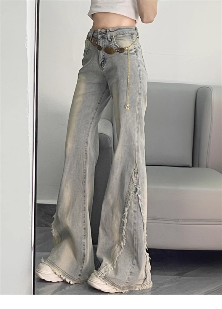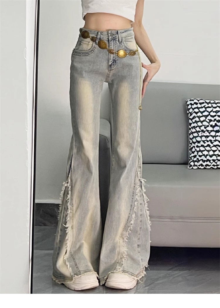 【立体裁剪显瘦、收腰贴合腰线】大码女装毛边设计感水洗做旧牛仔裤女胖mm高街辣妹女裤学生喇叭裤.TA