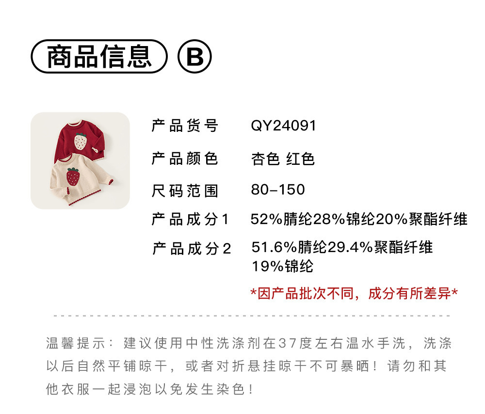 【新年女童毛衣集合】秋冬草莓卡通针织毛衣 儿童女孩洋气软糯上衣