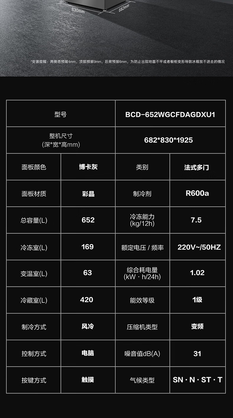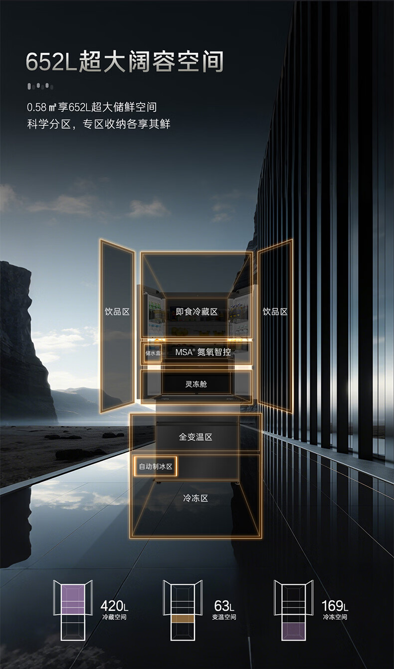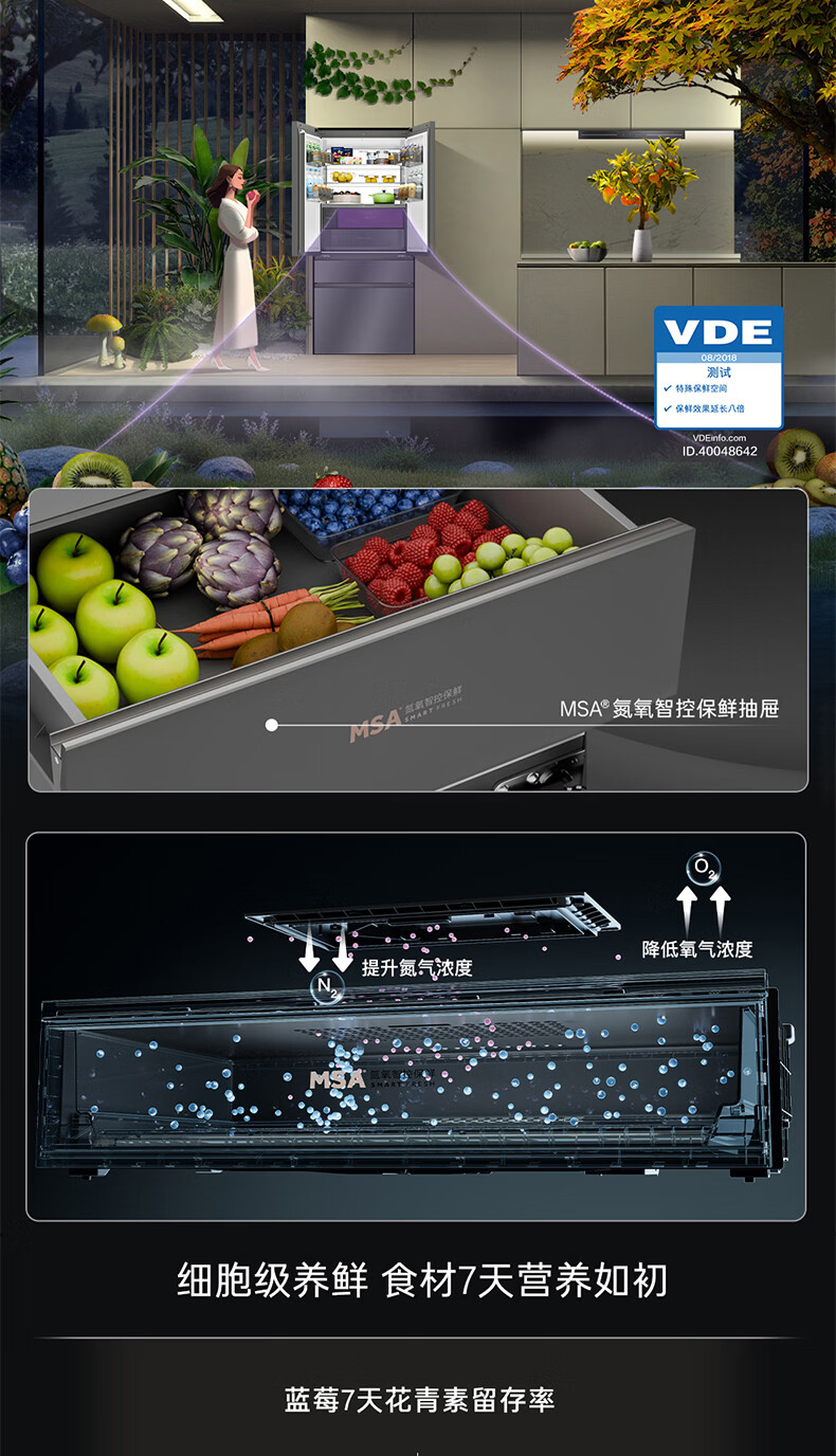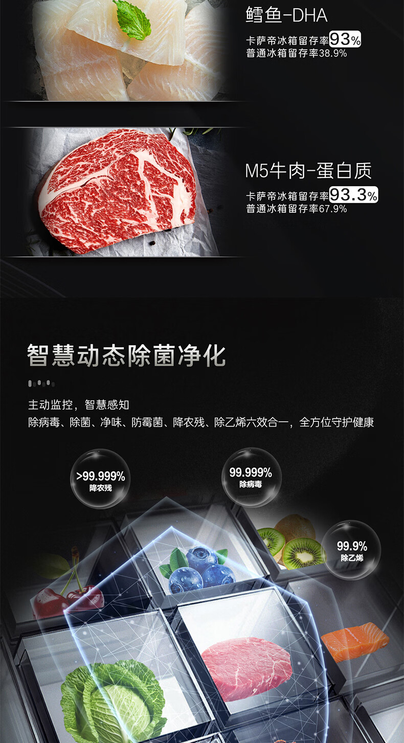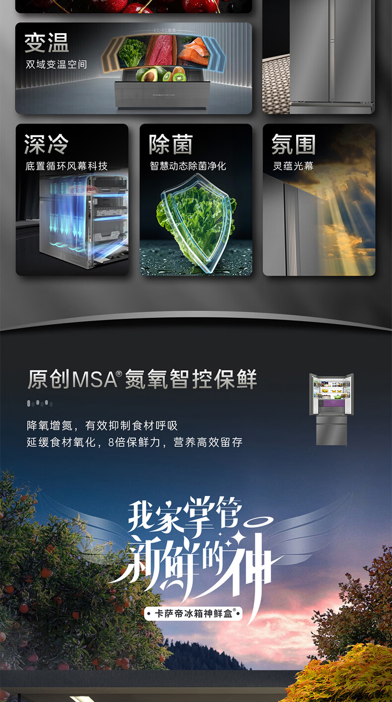 Casarte卡萨帝652升超大容量冰箱 天成系列 法式对开多门冰箱 MSA氮氧智控保鲜 智慧动态除菌 灵冻舱BCD-652WGCFDAGDXU1