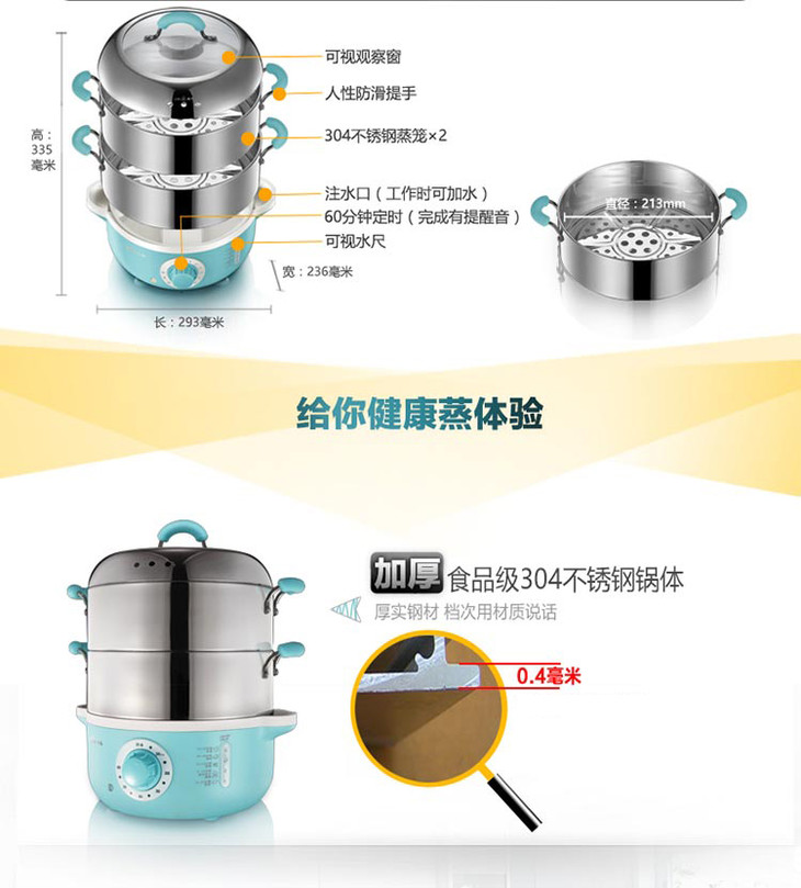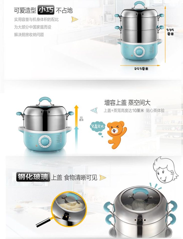 小熊(Bear) 电蒸锅 家用双层大容量多功能蒸锅304不锈钢蒸笼 DZG-240GA