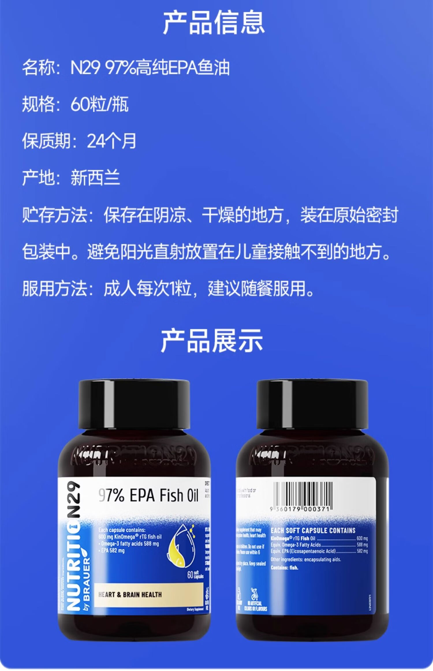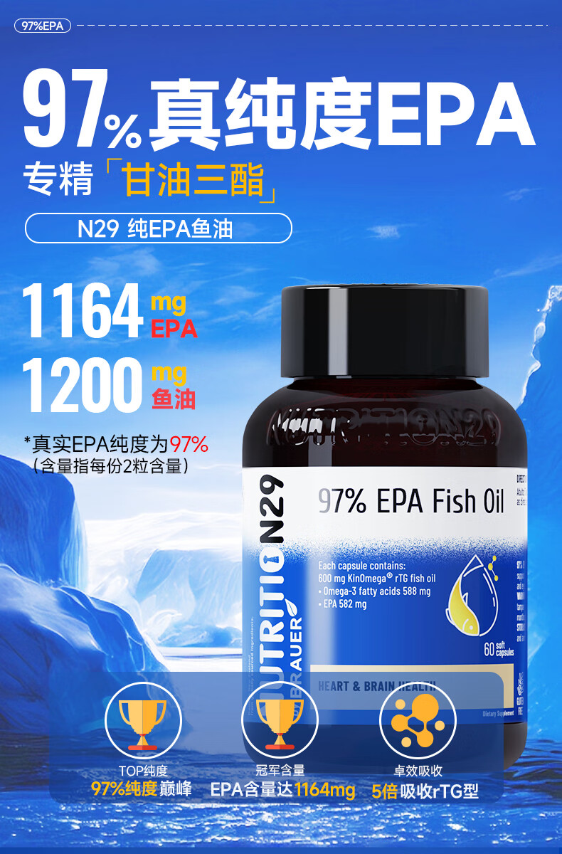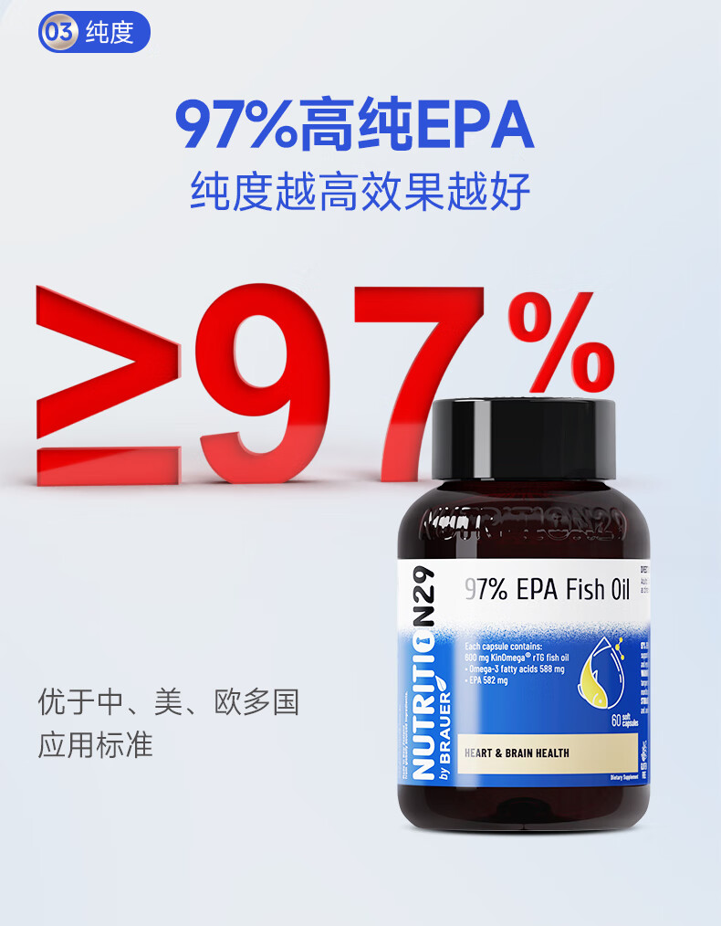 【原装进口】Nutrition29纽西臣97%高纯度深海EPA鱼油预防血脂异常软胶囊60粒