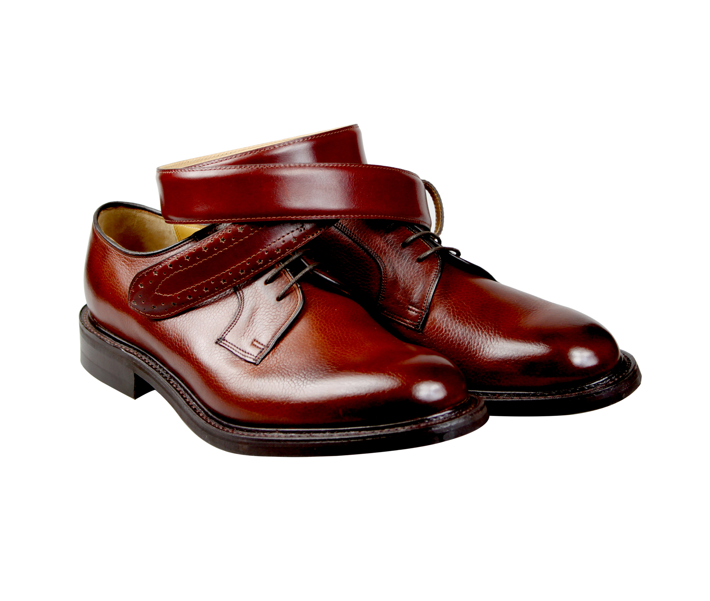 英国原产高品质手工制作好运皮带-酒红色雕花小牛皮ARL03