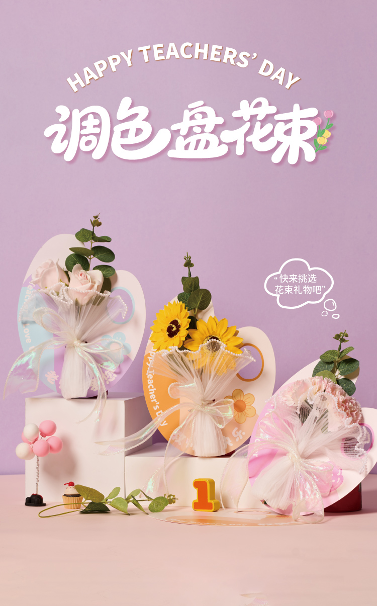 2025教师节礼物手工diy调色盘花束儿童制作材料包幼儿园送老师