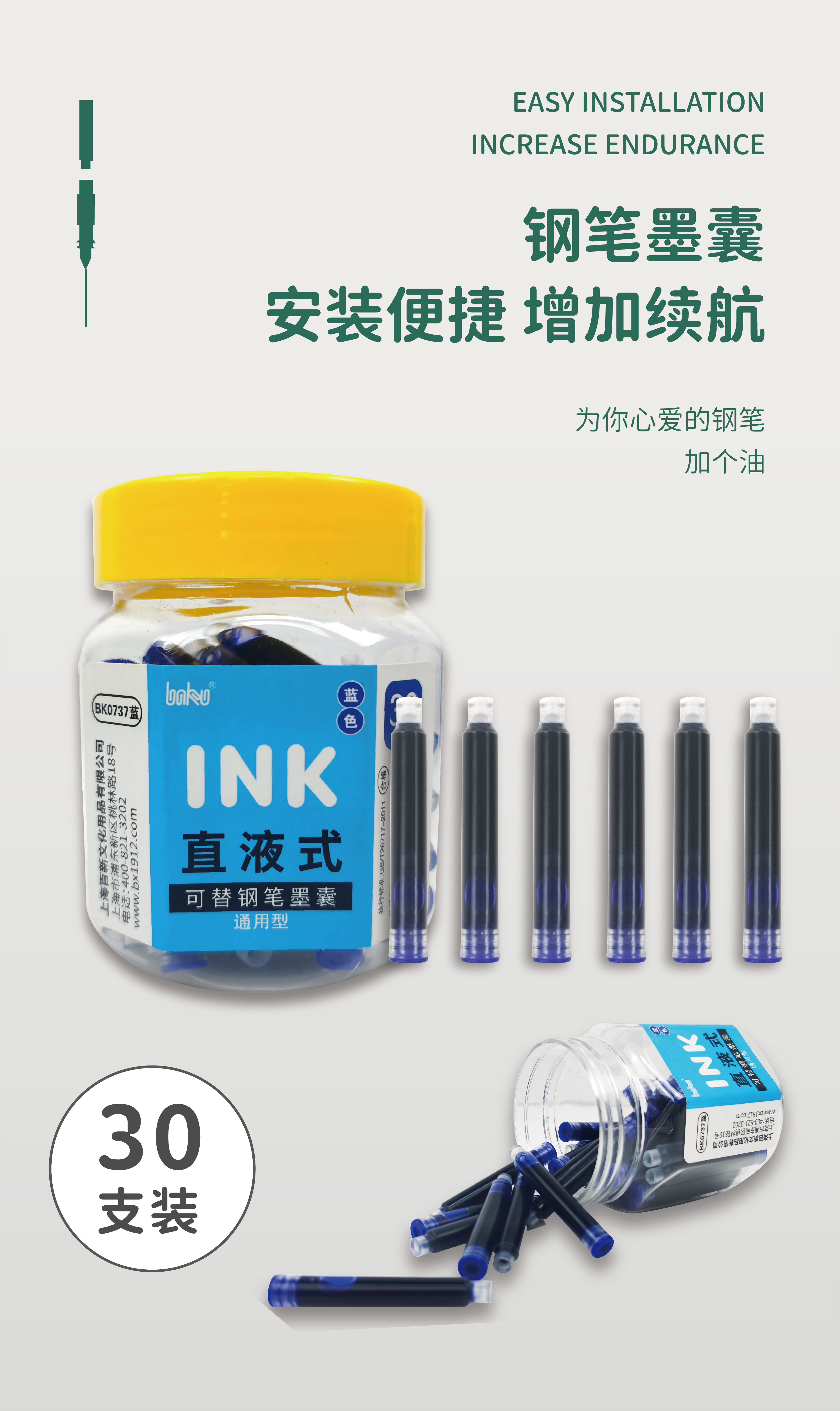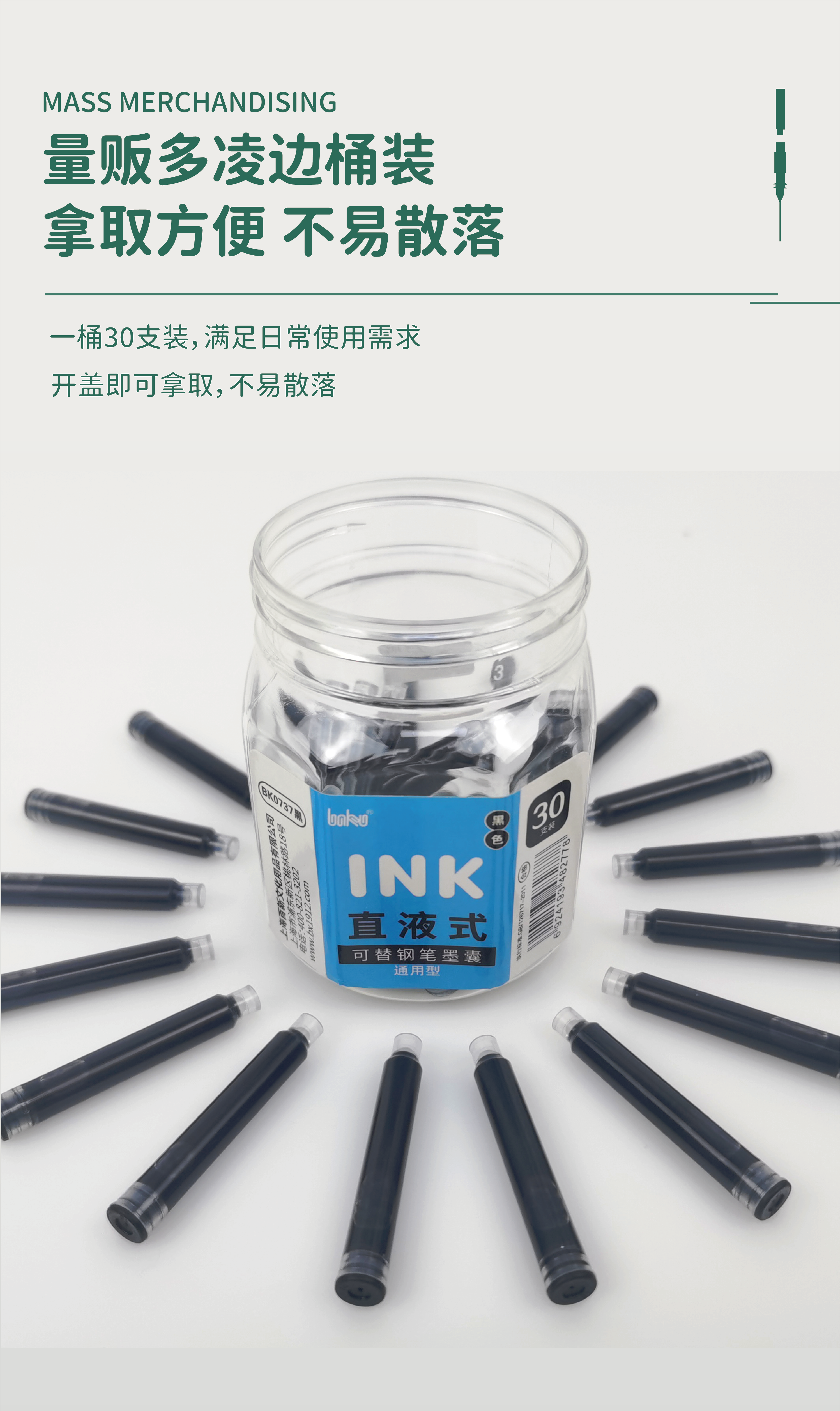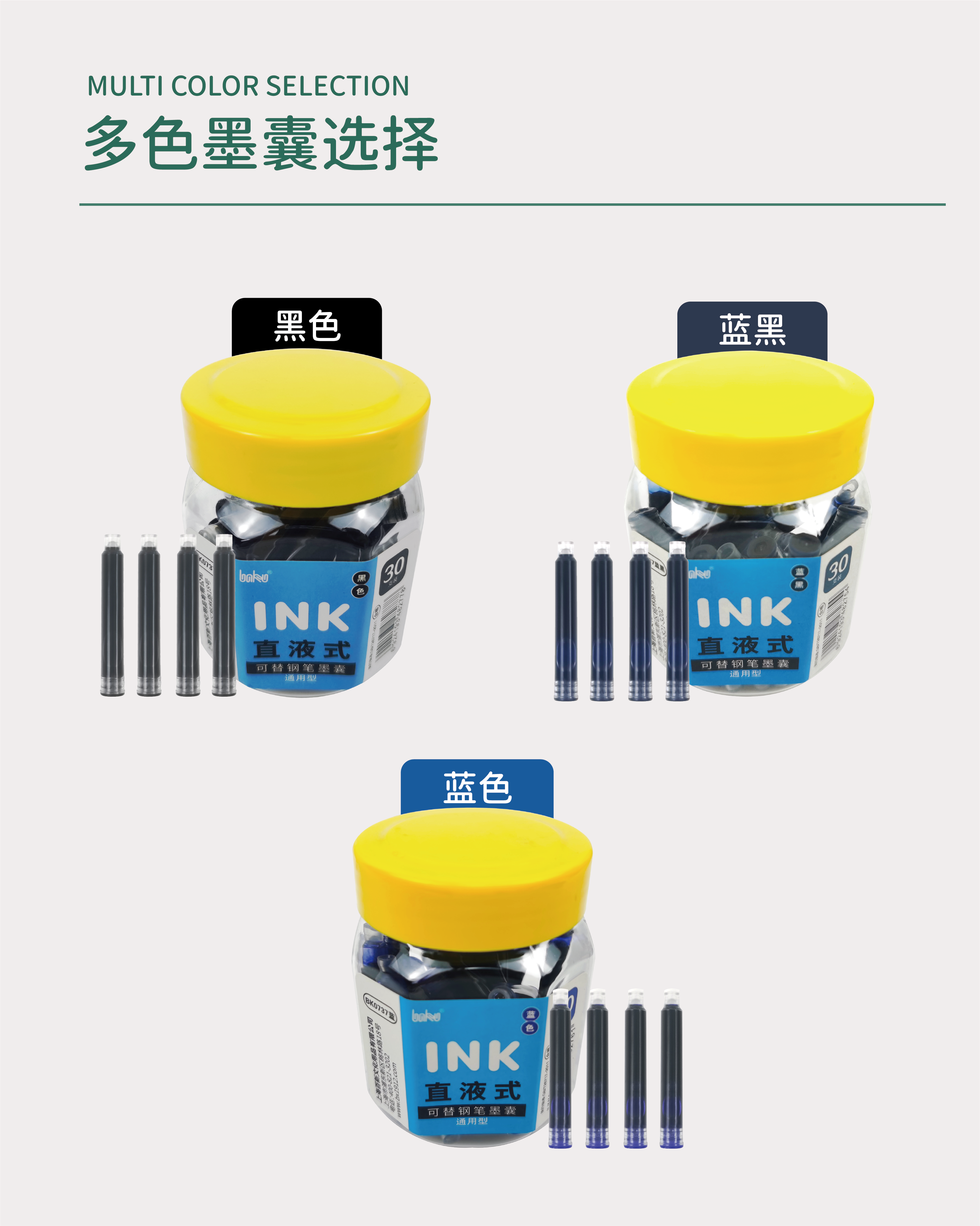 博酷30支瓶装墨胆墨囊钢笔使用黑色/蓝色/蓝黑色
