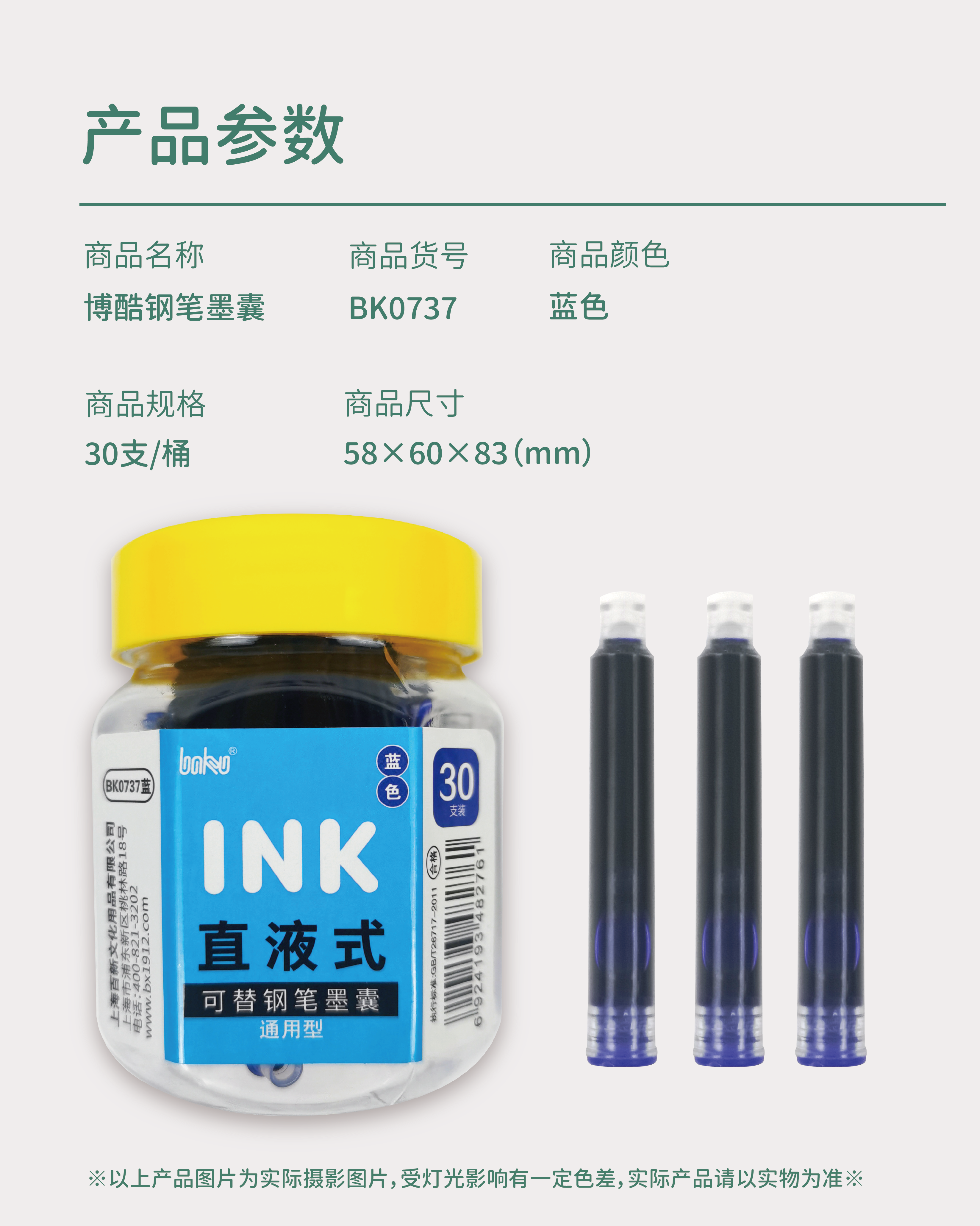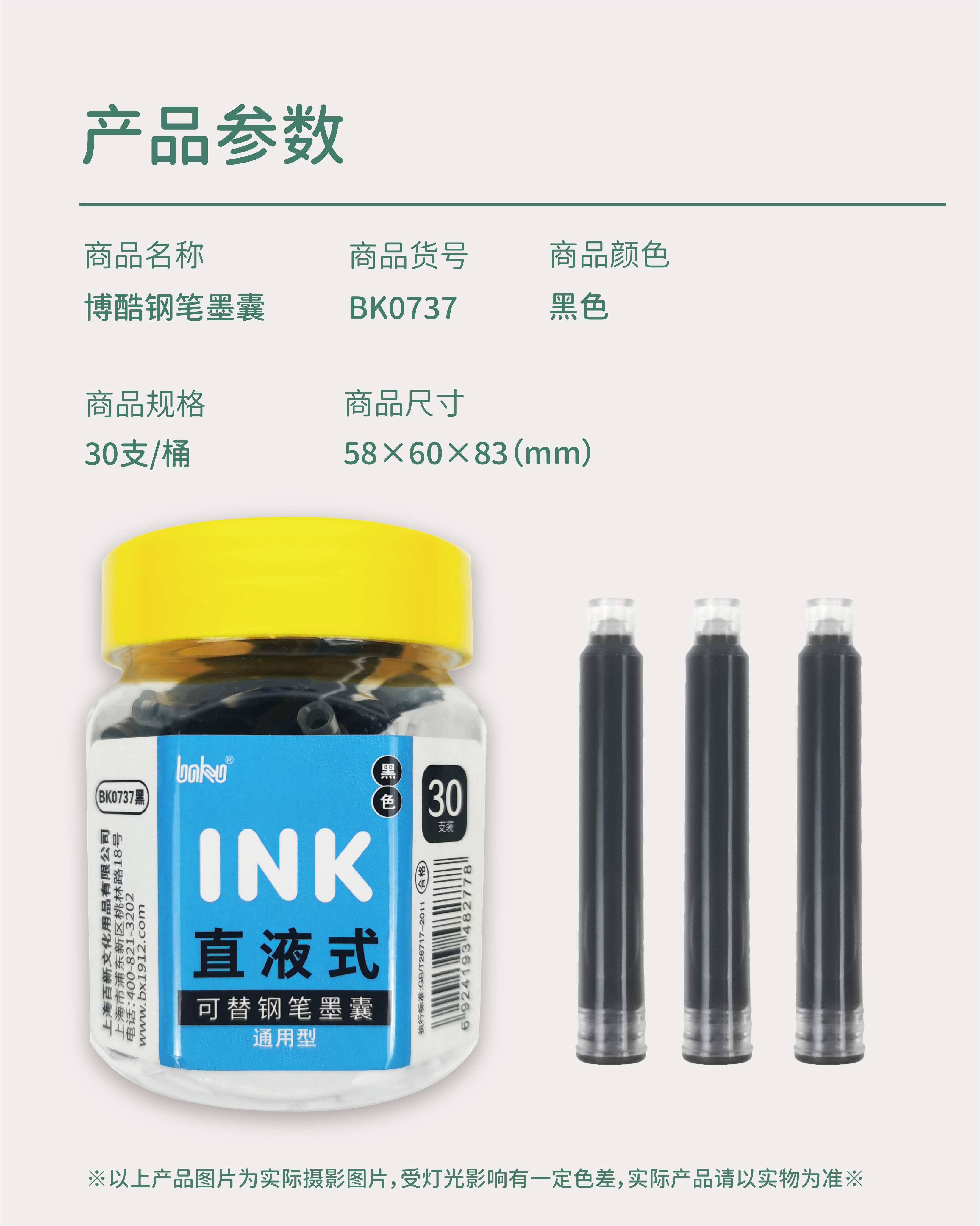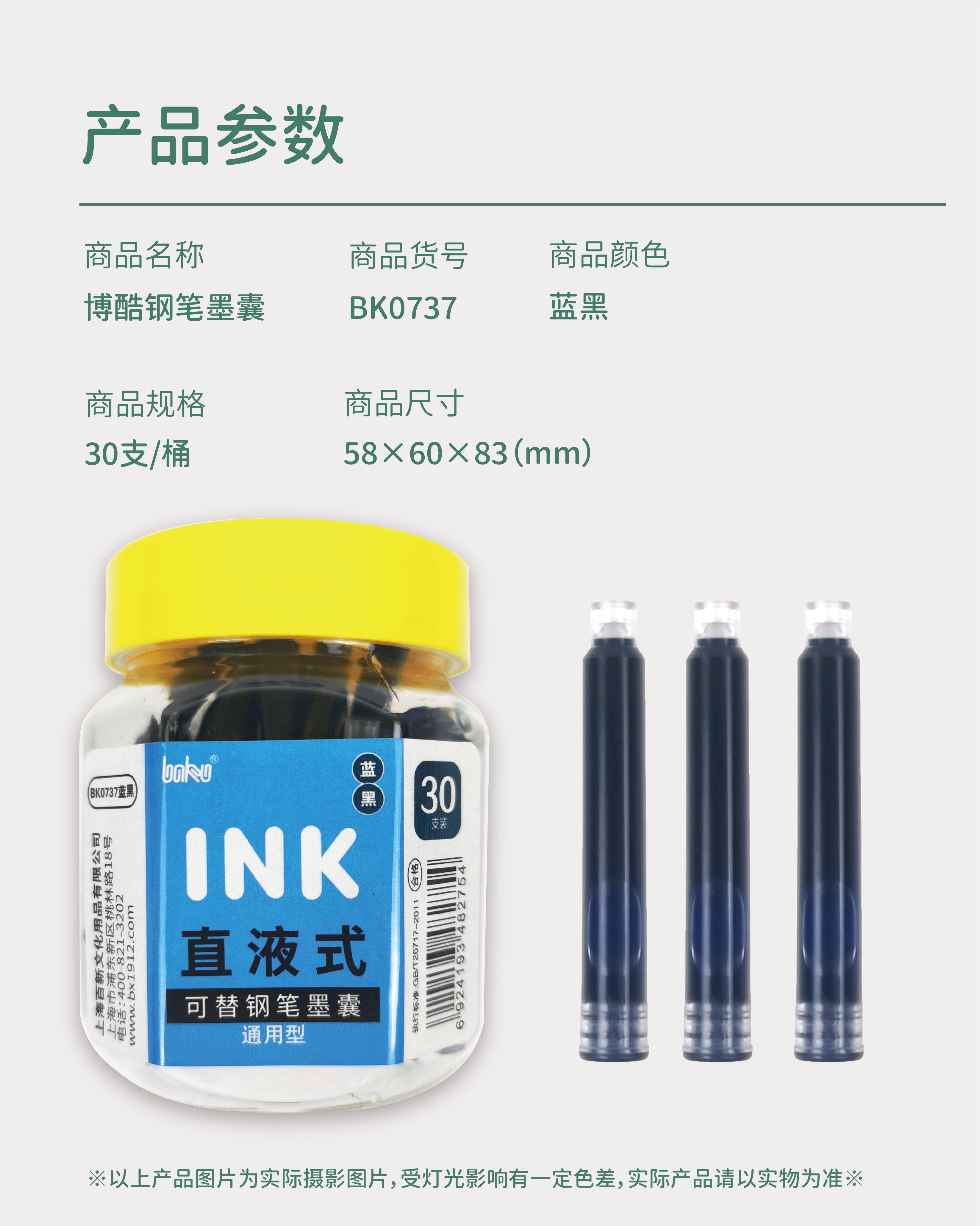 博酷30支瓶装墨胆墨囊钢笔使用黑色/蓝色/蓝黑色