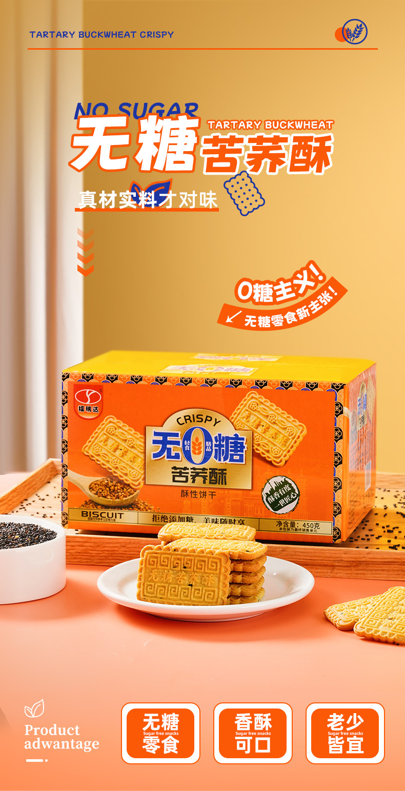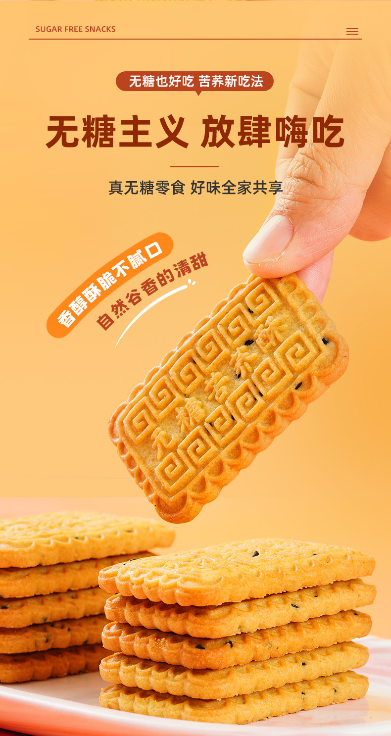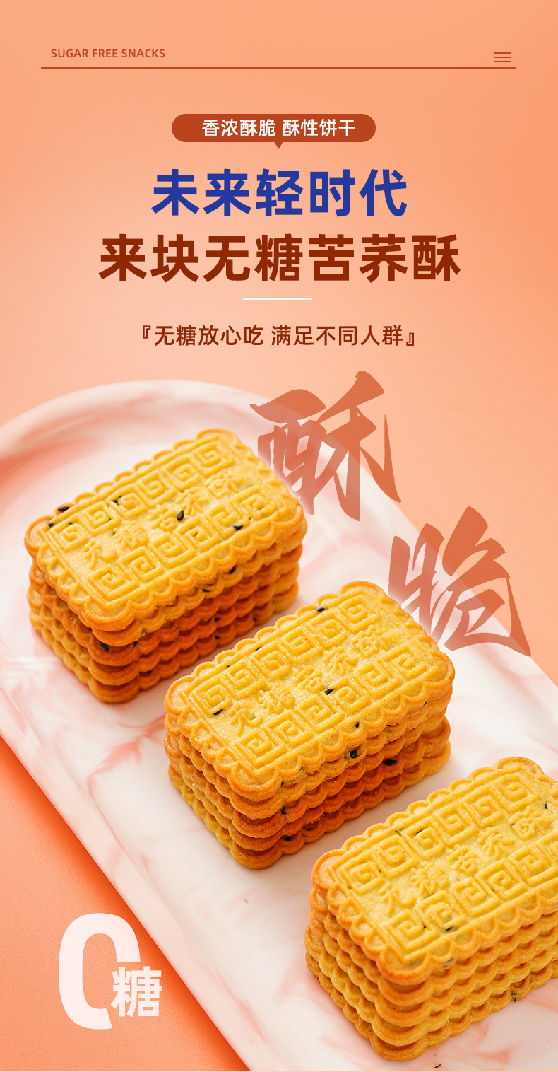 【0糖主义❗无糖苦荞酥饼干】甄选品质原料制作,特别添加苦荞粉,不单独添加蔗糖美味健康无负担,粗粮饼干零食小吃,网红休闲食品袋装中老年人下午茶L