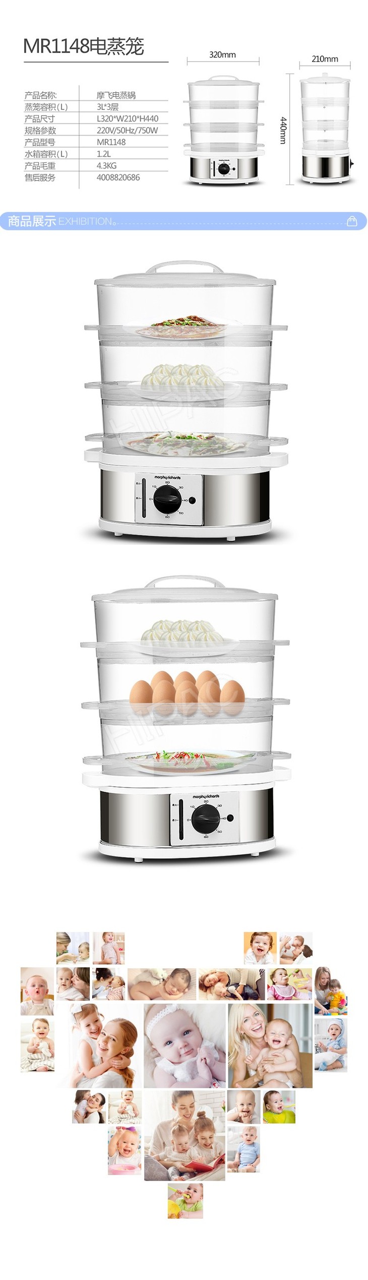 【一般贸易】英国摩飞MR1148 电蒸笼 9L