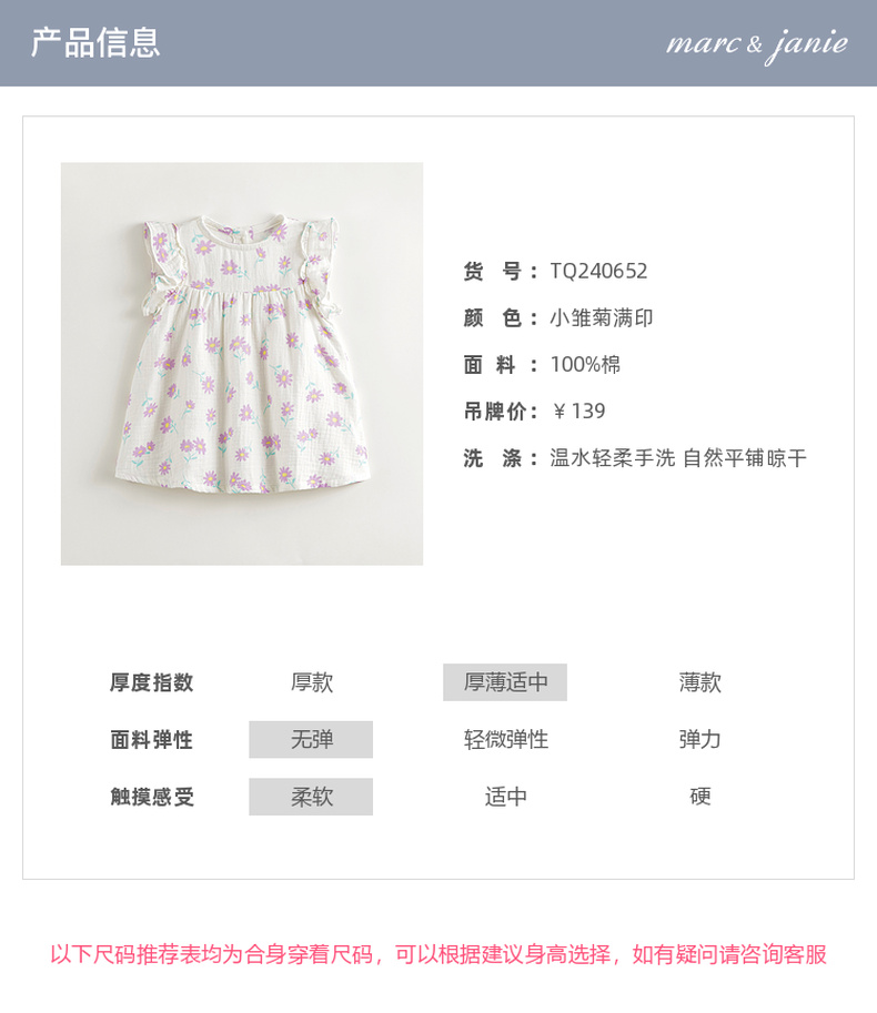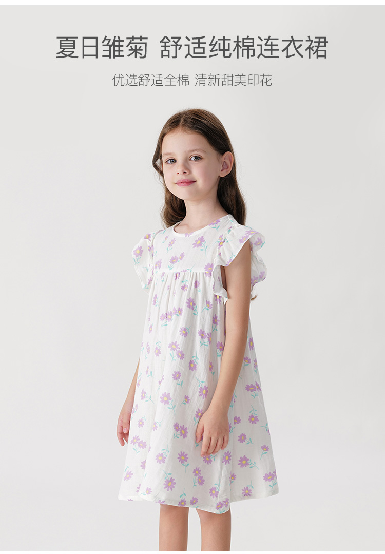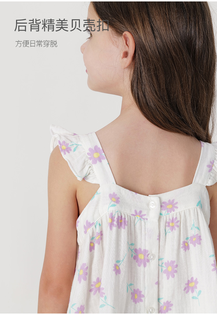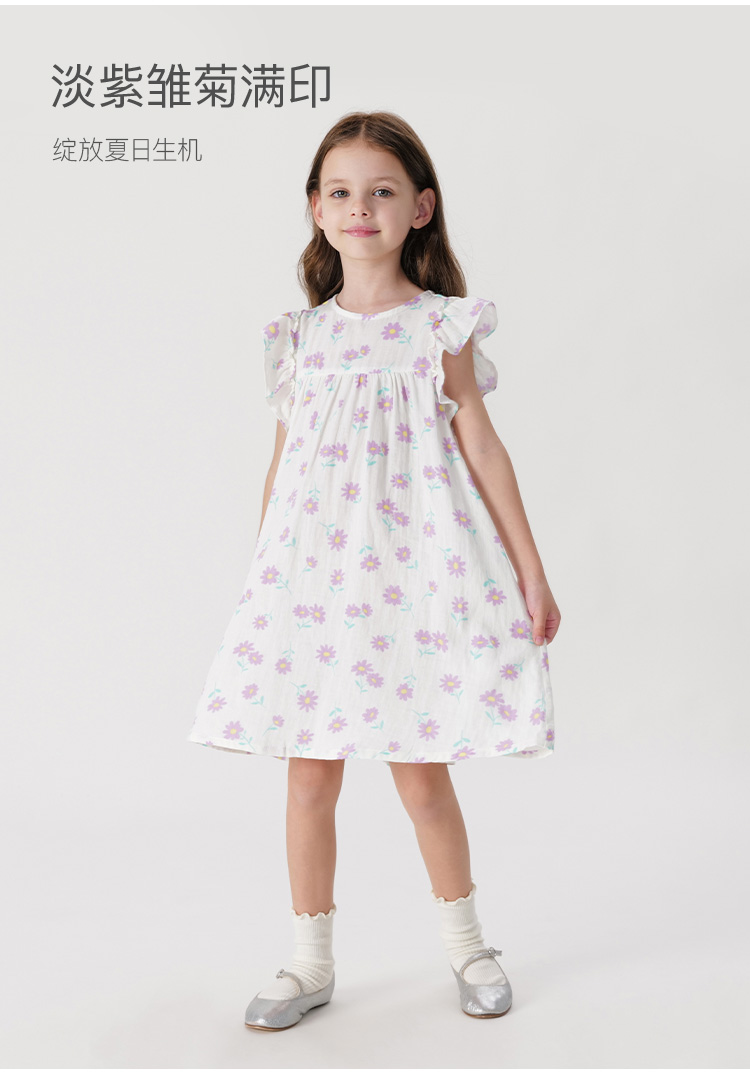 马克珍妮女童雏菊满印小飞袖连衣裙背心裙儿童裙子夏装新款240652