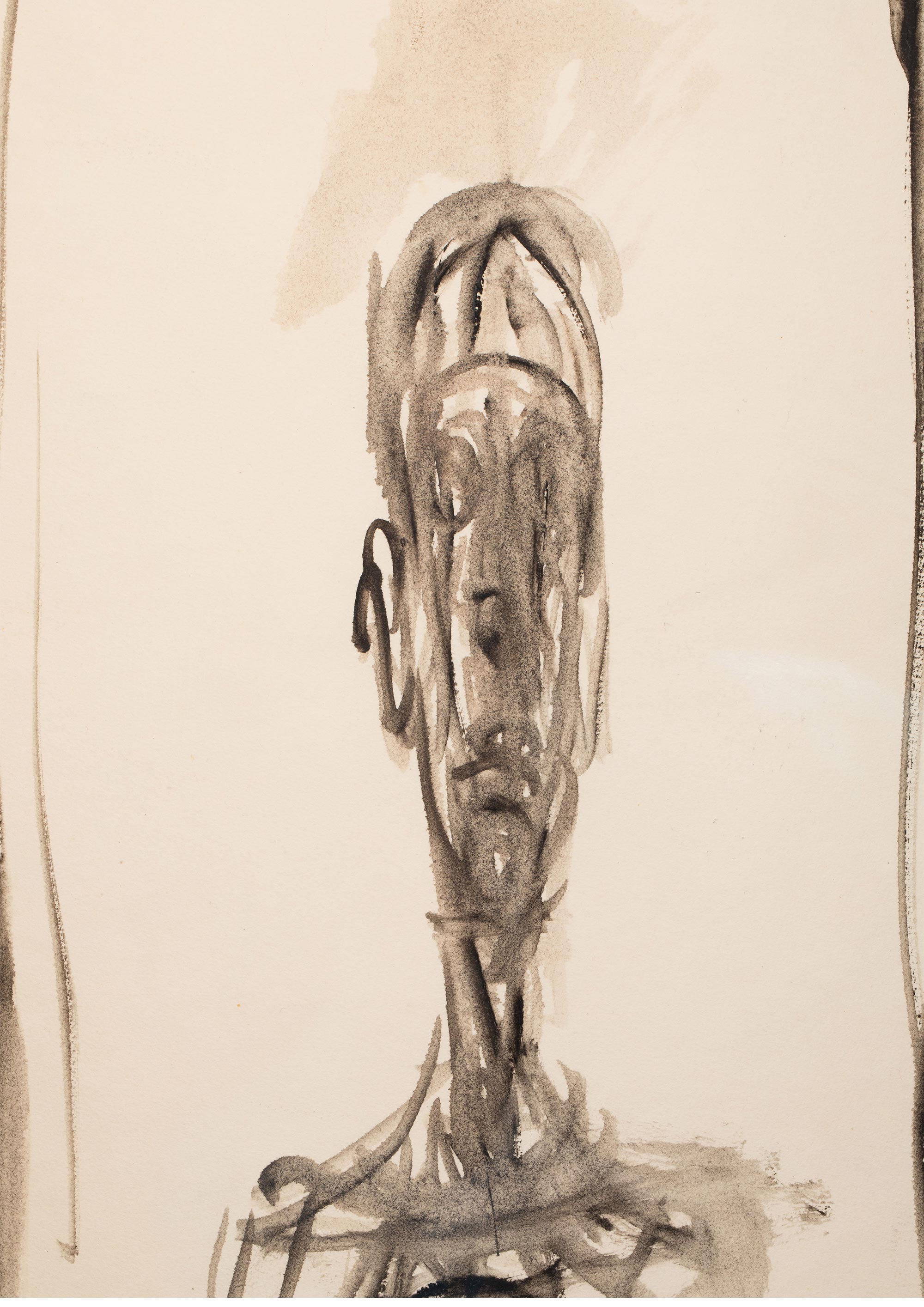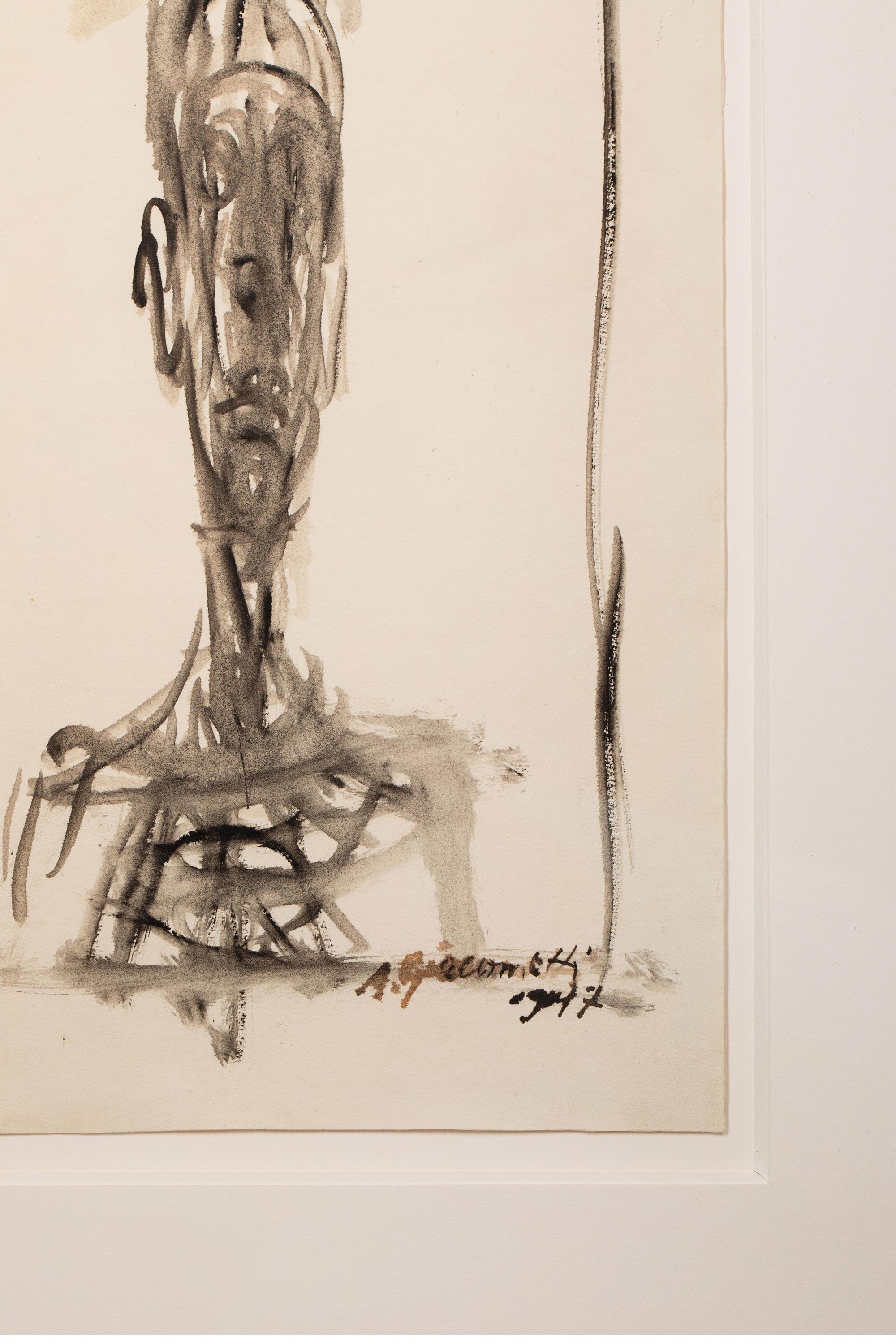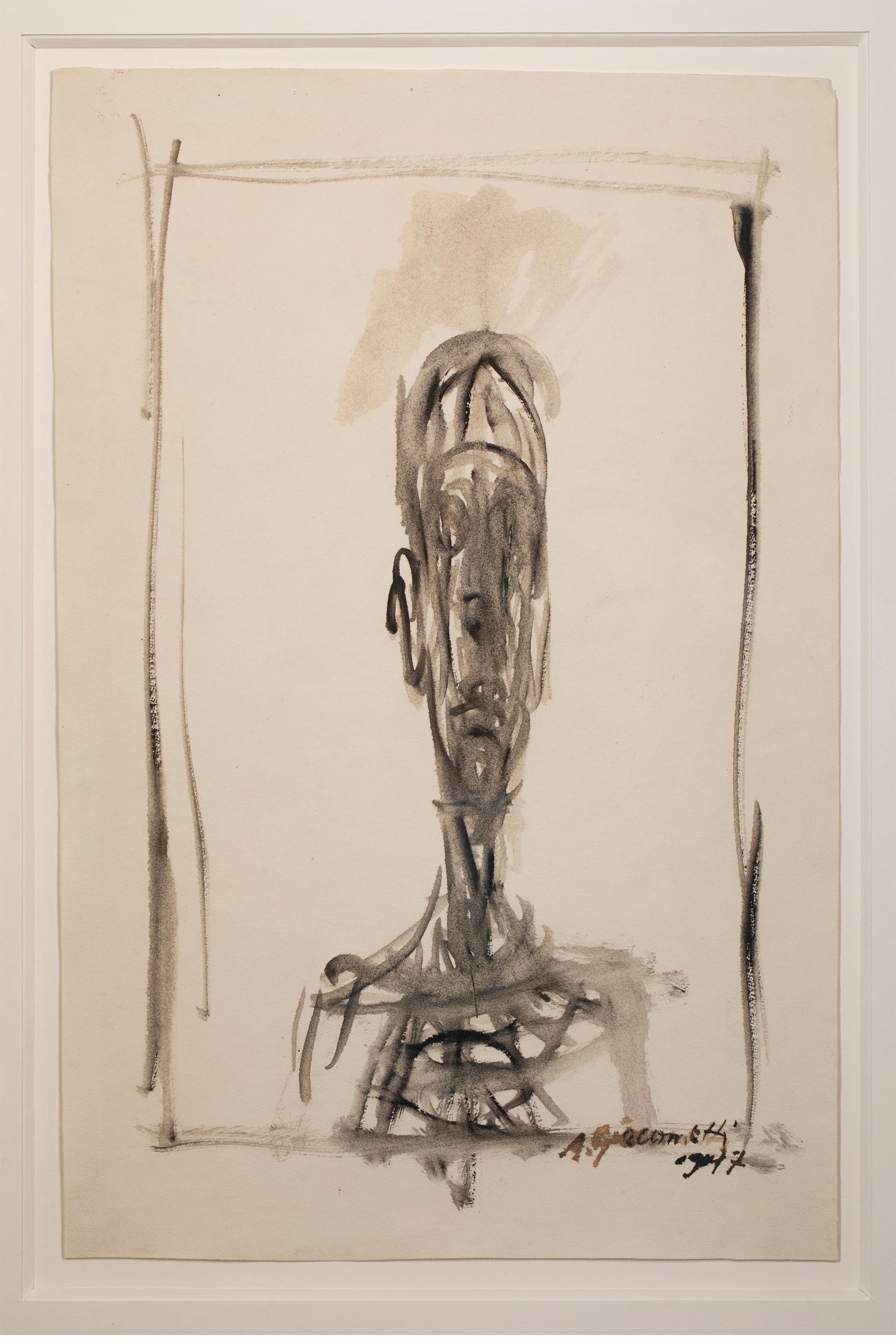 1947年瑞士艺术大师阿尔贝托·贾科梅蒂签名创作水粉纸本半身像作品《Portrait de Diego 迭戈肖像》