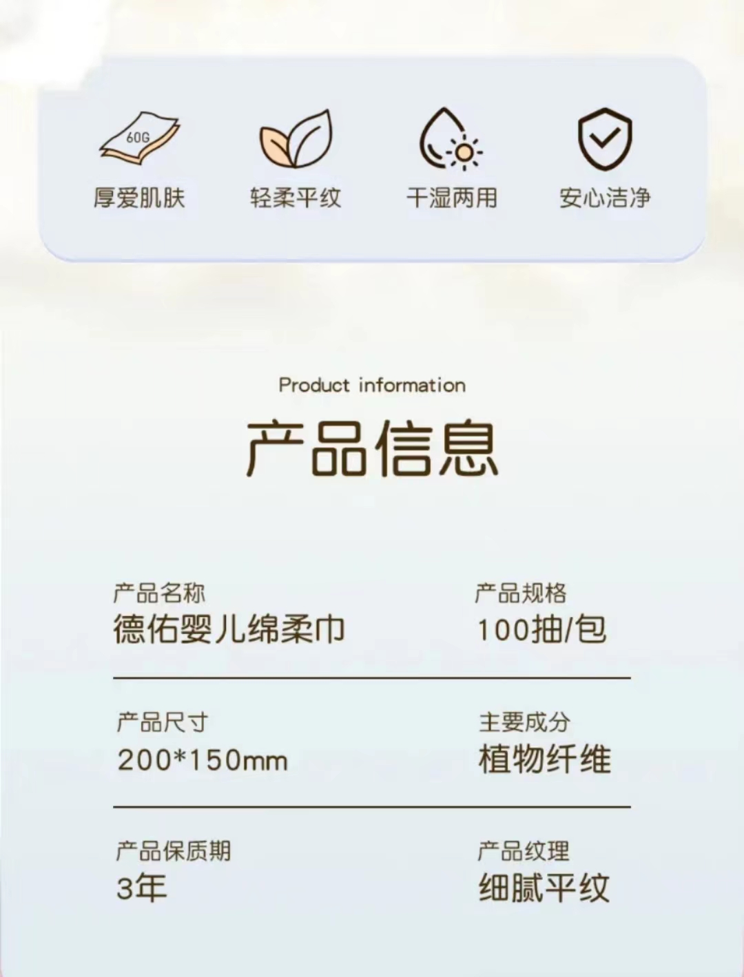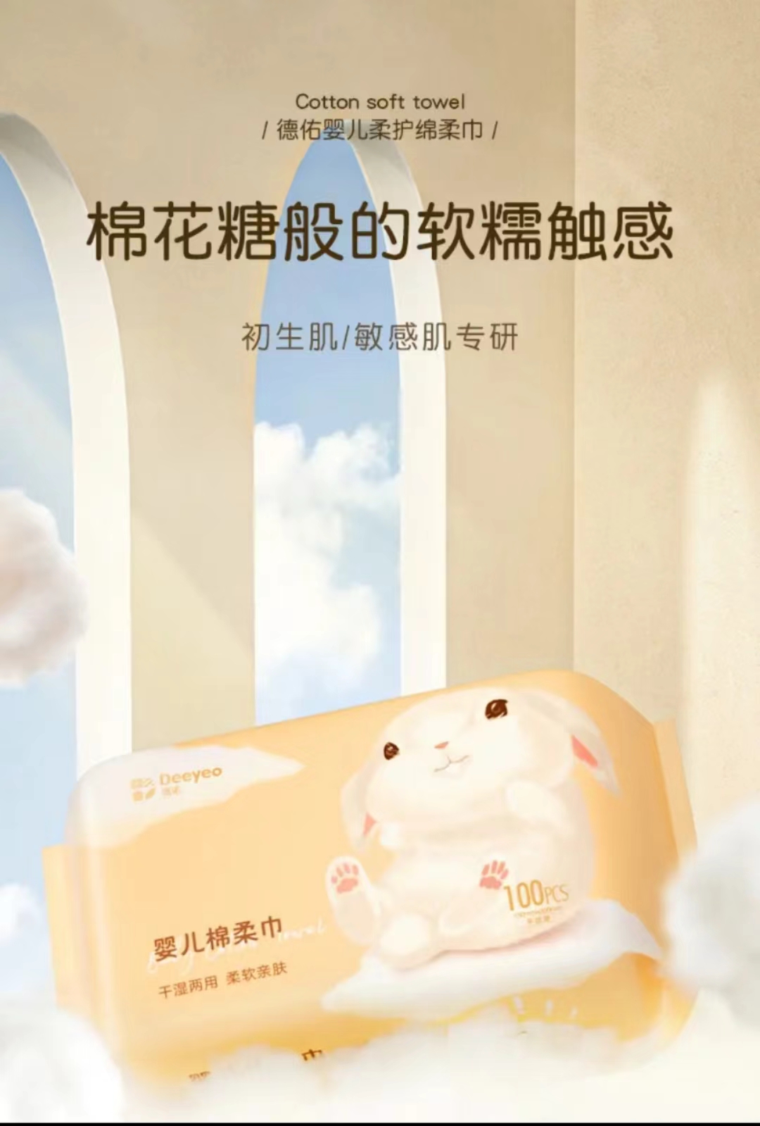 德祐棉柔巾新生儿宝宝手口专用洗脸干湿两用巾80抽非湿巾