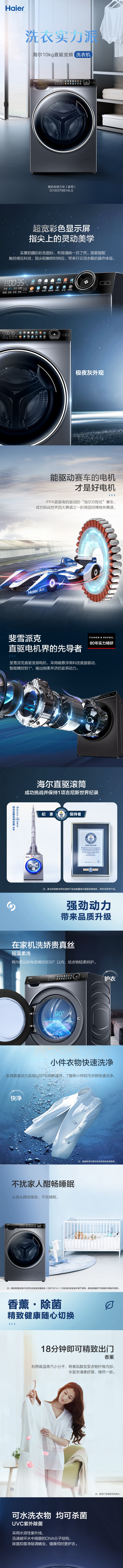 海尔(Haier)(252013)直驱变频大桶径洗衣机10公斤378滚筒洗衣机双喷淋紫外线除菌大桶径超薄家用全自动家用洗衣机 不带烘干+超薄大桶径+变频G100378B14LS