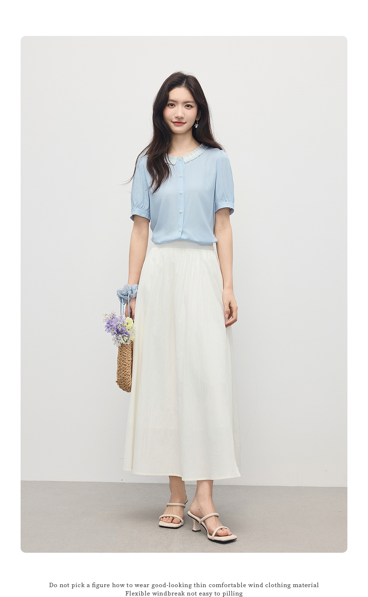【专属特价】熙世界法式压褶花边领衬衫女士短袖2025夏日新款高级感泡泡袖上衣