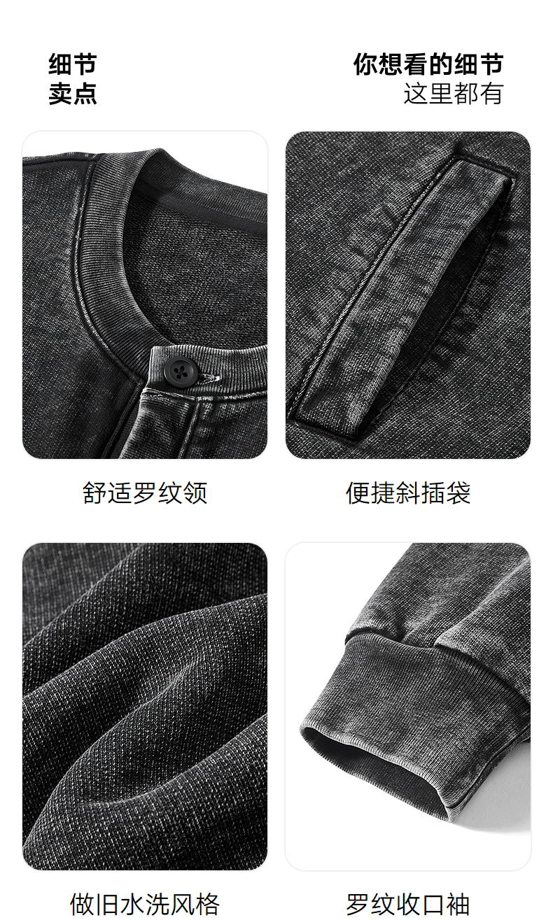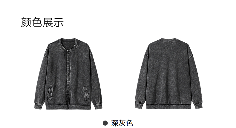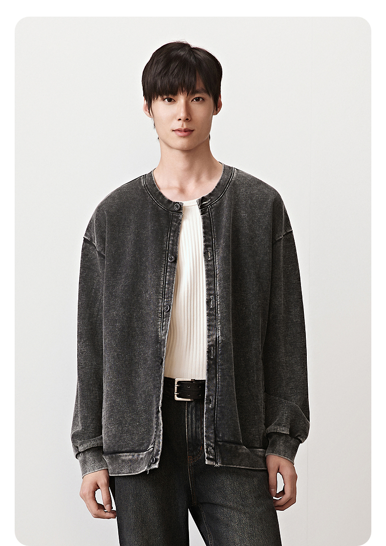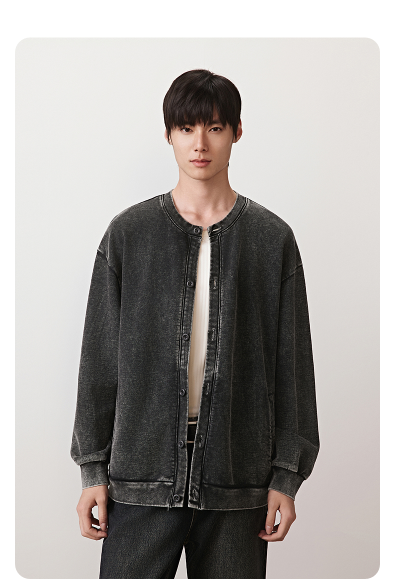 GXG男装 开襟卫衣做旧水洗棒球领卫衣外套长袖上衣 2025秋季新品