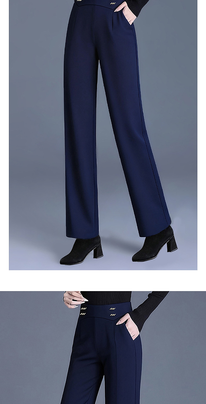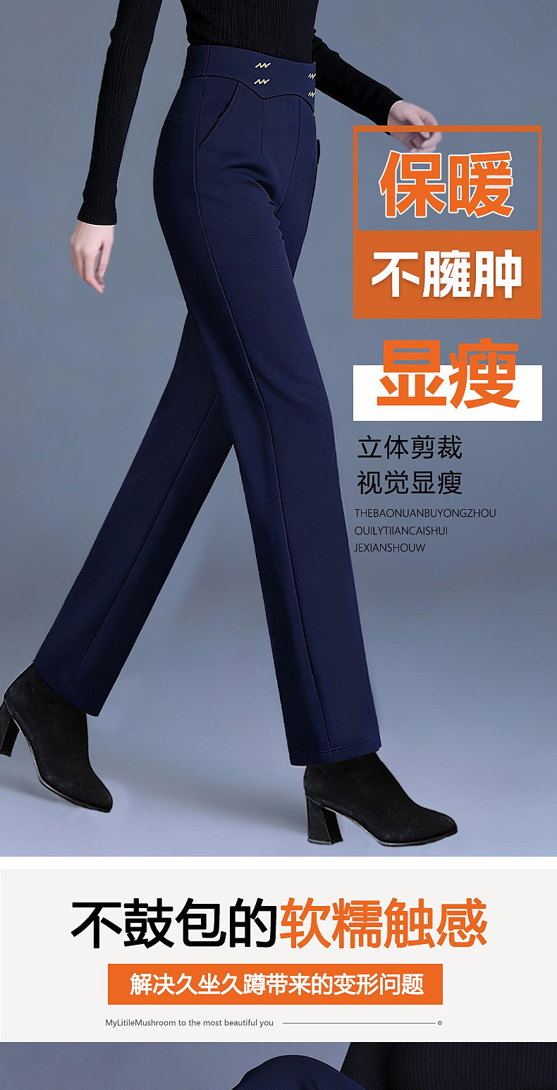新款窄版直筒阔腿裤女秋冬季大码休闲裤中年妈妈加绒加厚裤子外穿