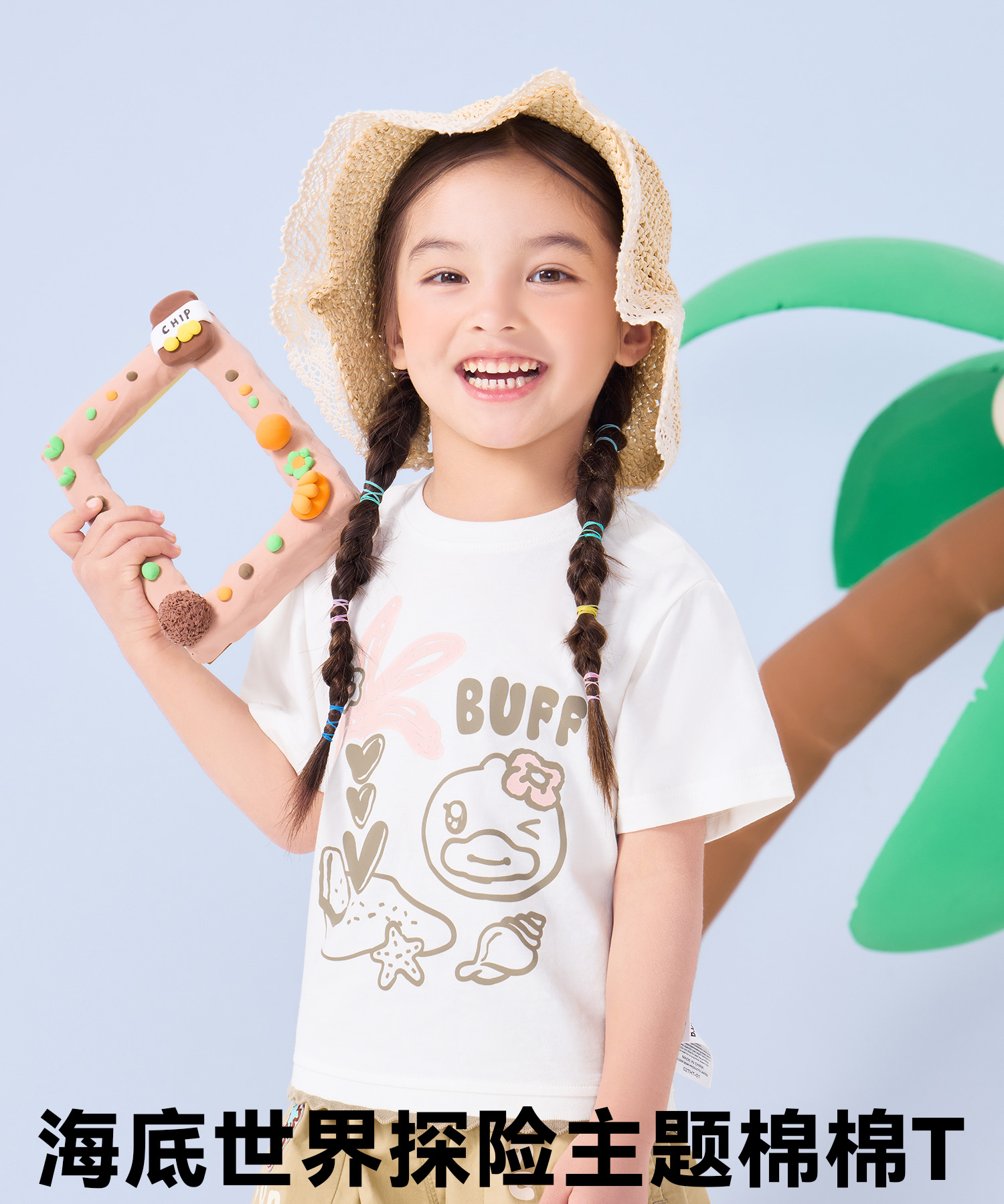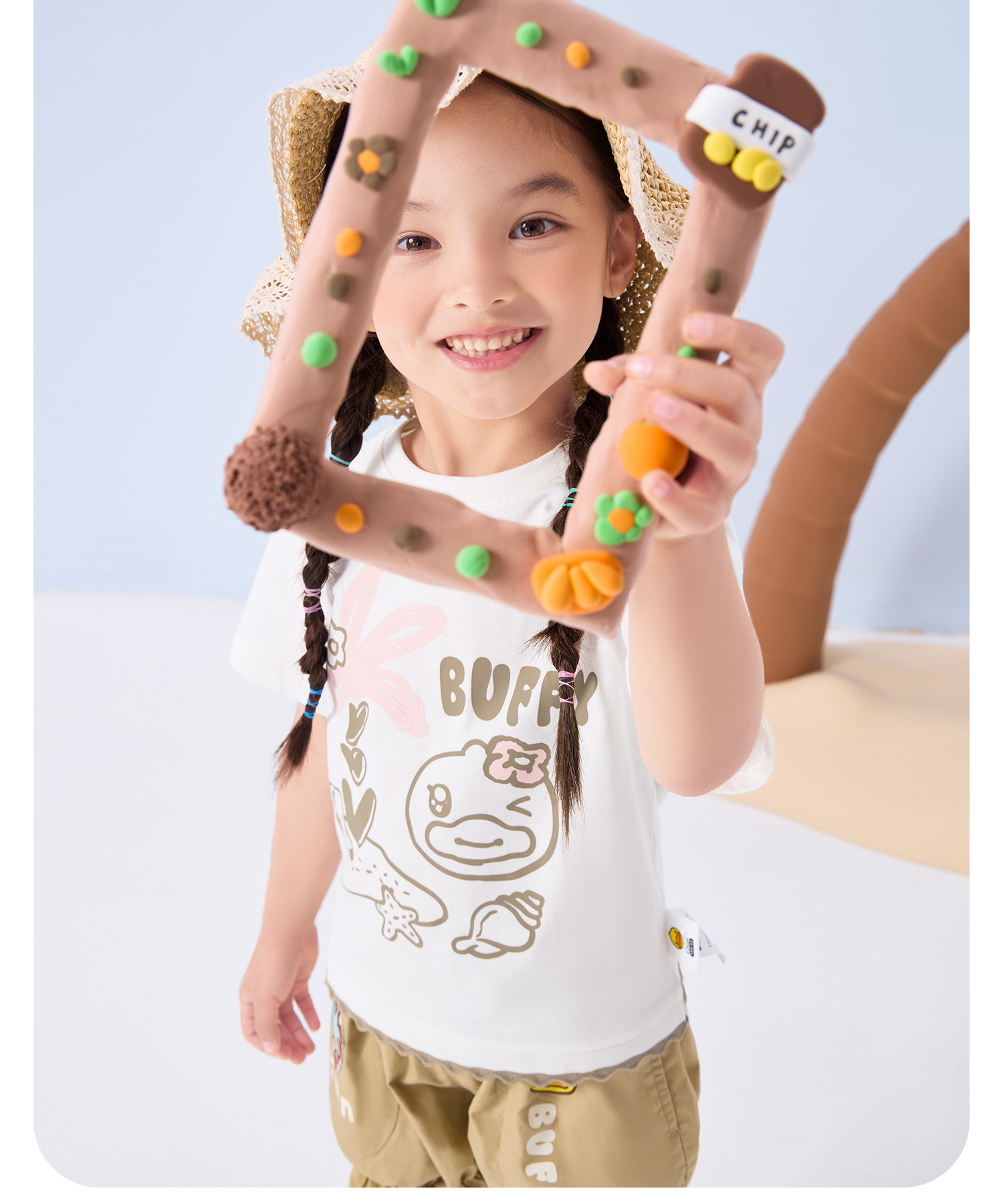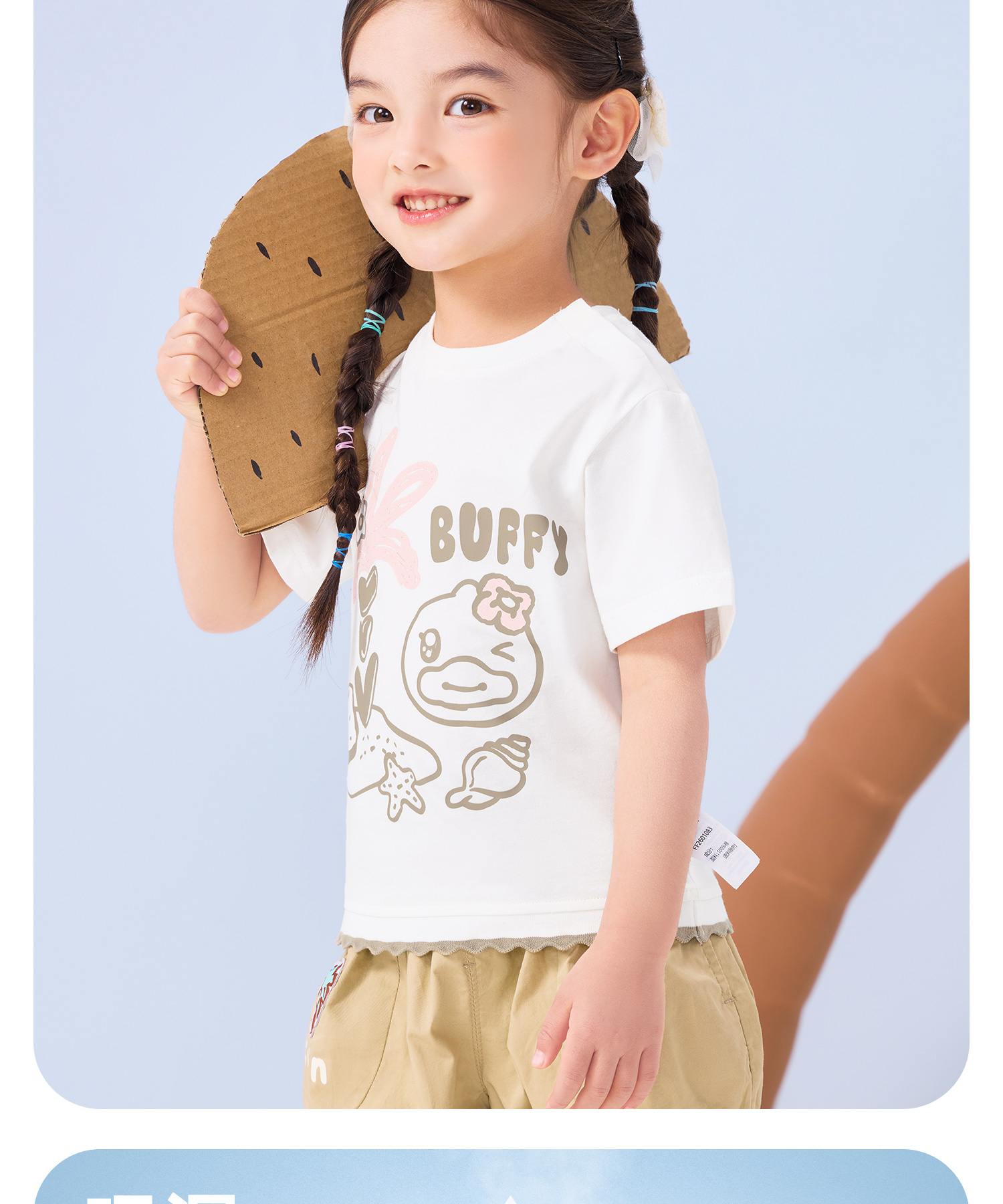 bduck小黄鸭童装夏季女童短袖t恤儿童纯棉宝宝上衣夏季半袖t90-130 FF2601083