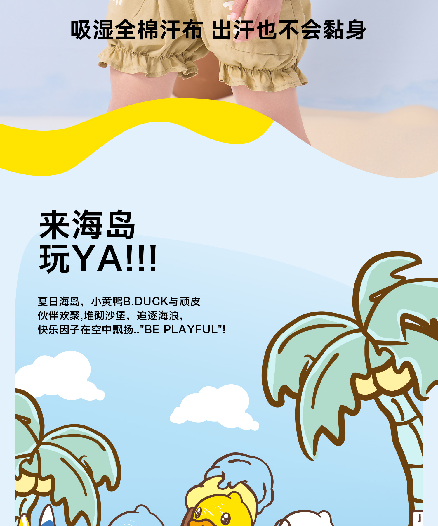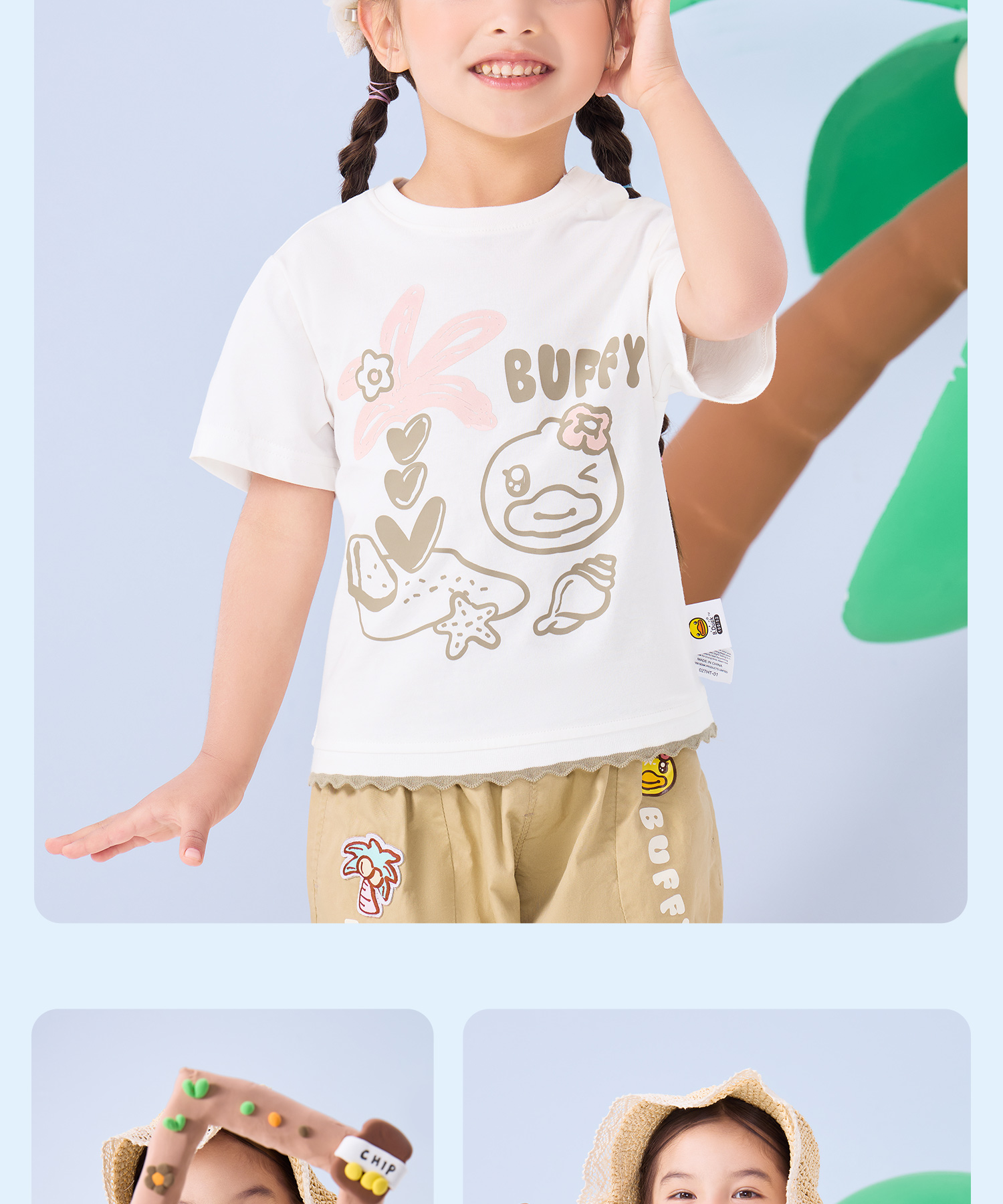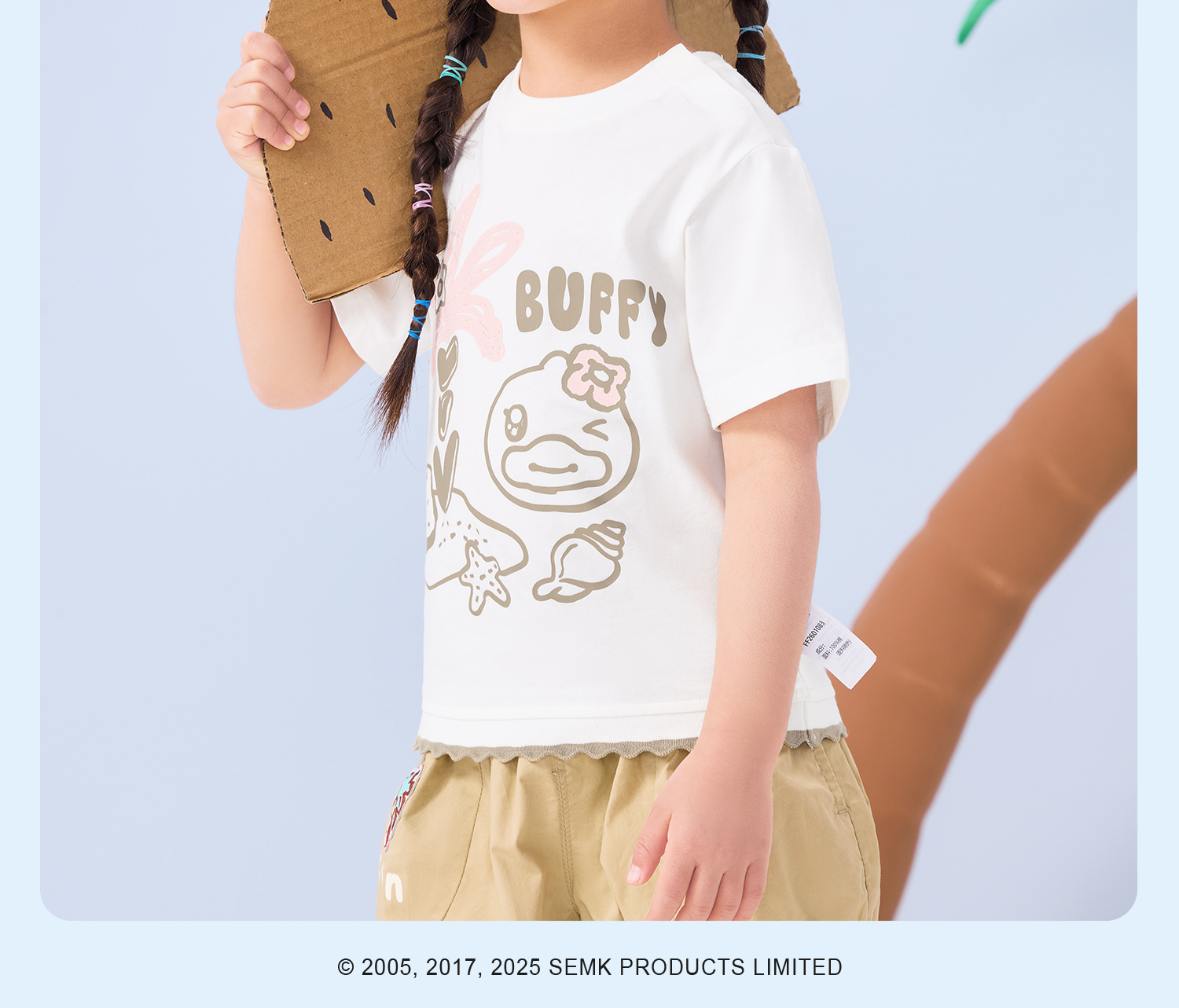 bduck小黄鸭童装夏季女童短袖t恤儿童纯棉宝宝上衣夏季半袖t90-130 FF2601083