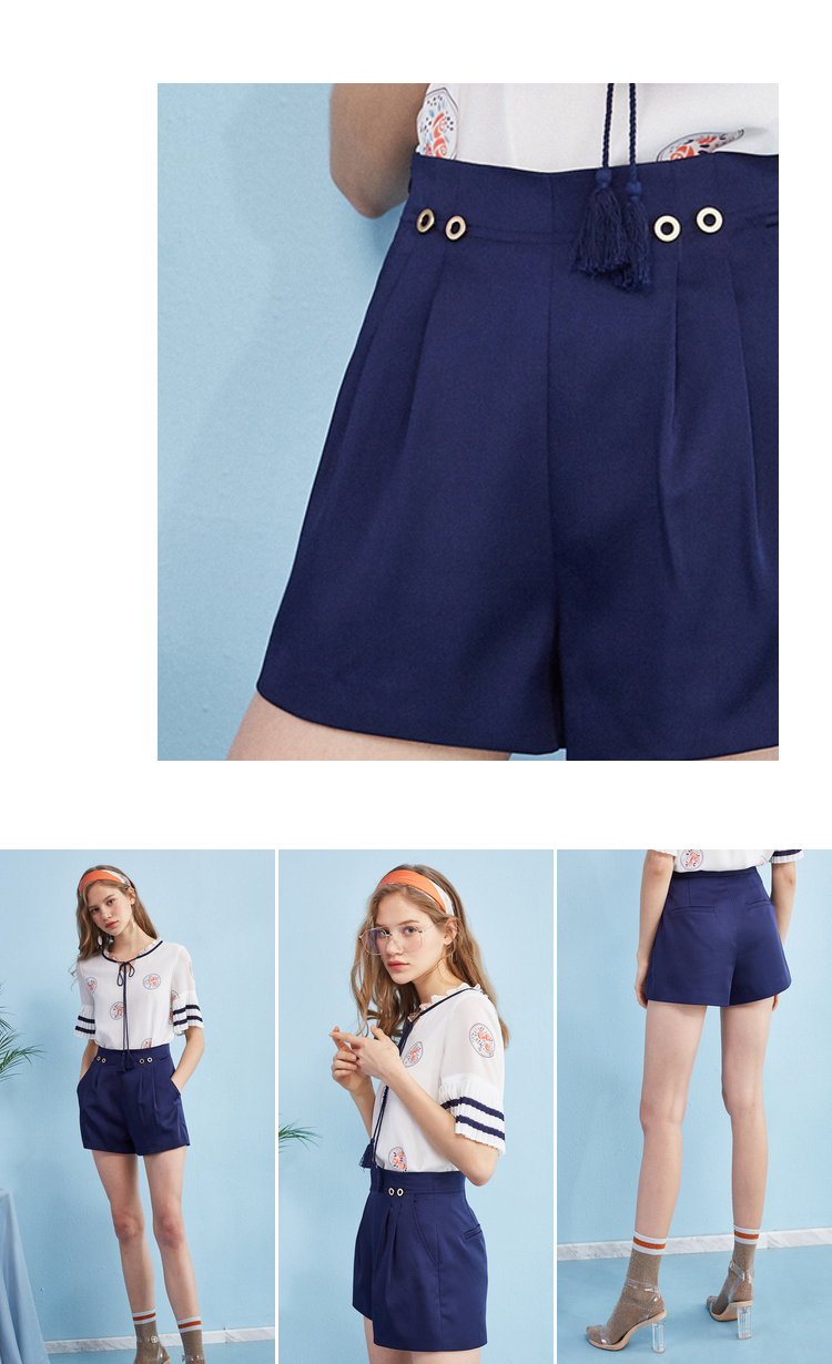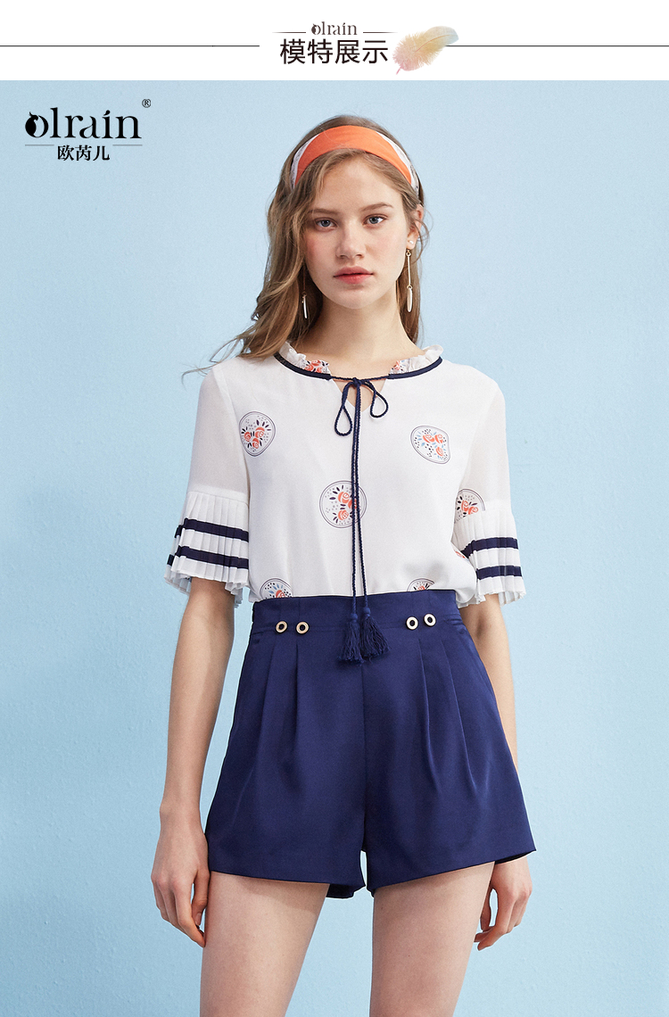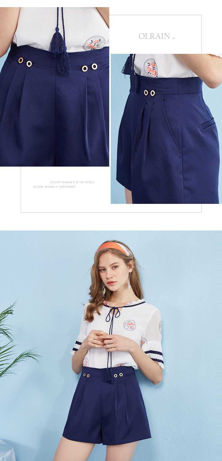 欧芮儿2018新款女装百搭收腰显瘦直筒休闲裤女短裤子&
