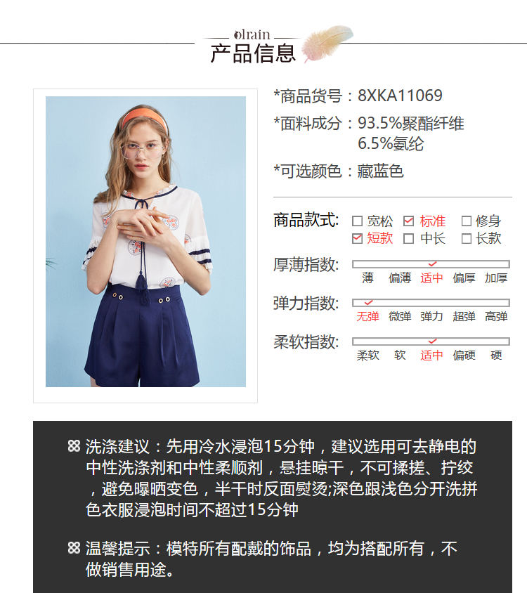 “精致”是欧芮儿olrain品牌文化的核心,欧芮儿认为,精致的女人,不但要外在动人,更要内在迷人,内外兼修,有魅力、有气质、有内涵,自信而不自傲,优雅而不矫揉,自有万种风情而不轻浮,更不故作矜持。